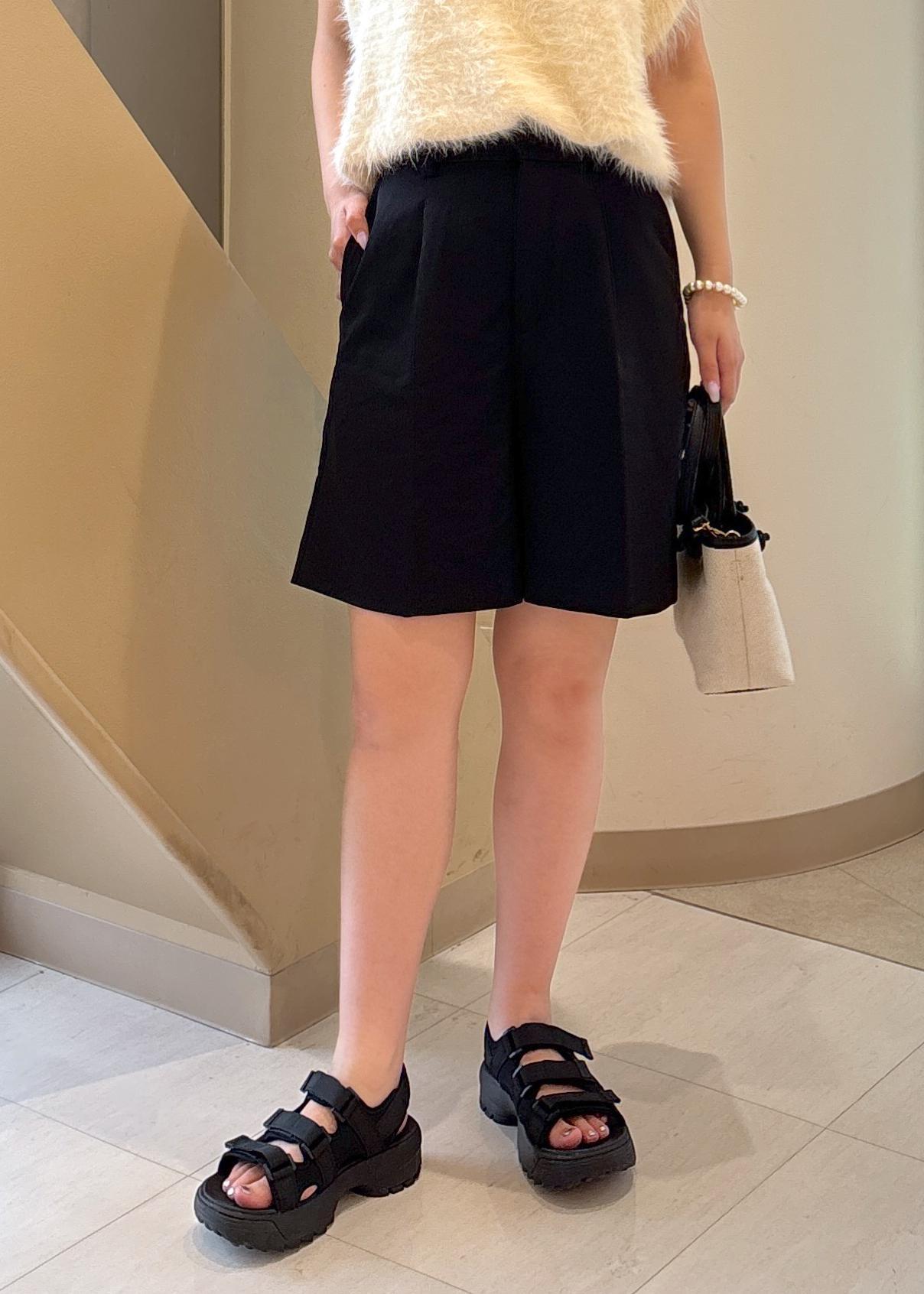 膝上丈のハーフパンツです。ワンタック入りで少し裾にかけてワイドなシルエットなので脚の形を拾わずに着用できました。