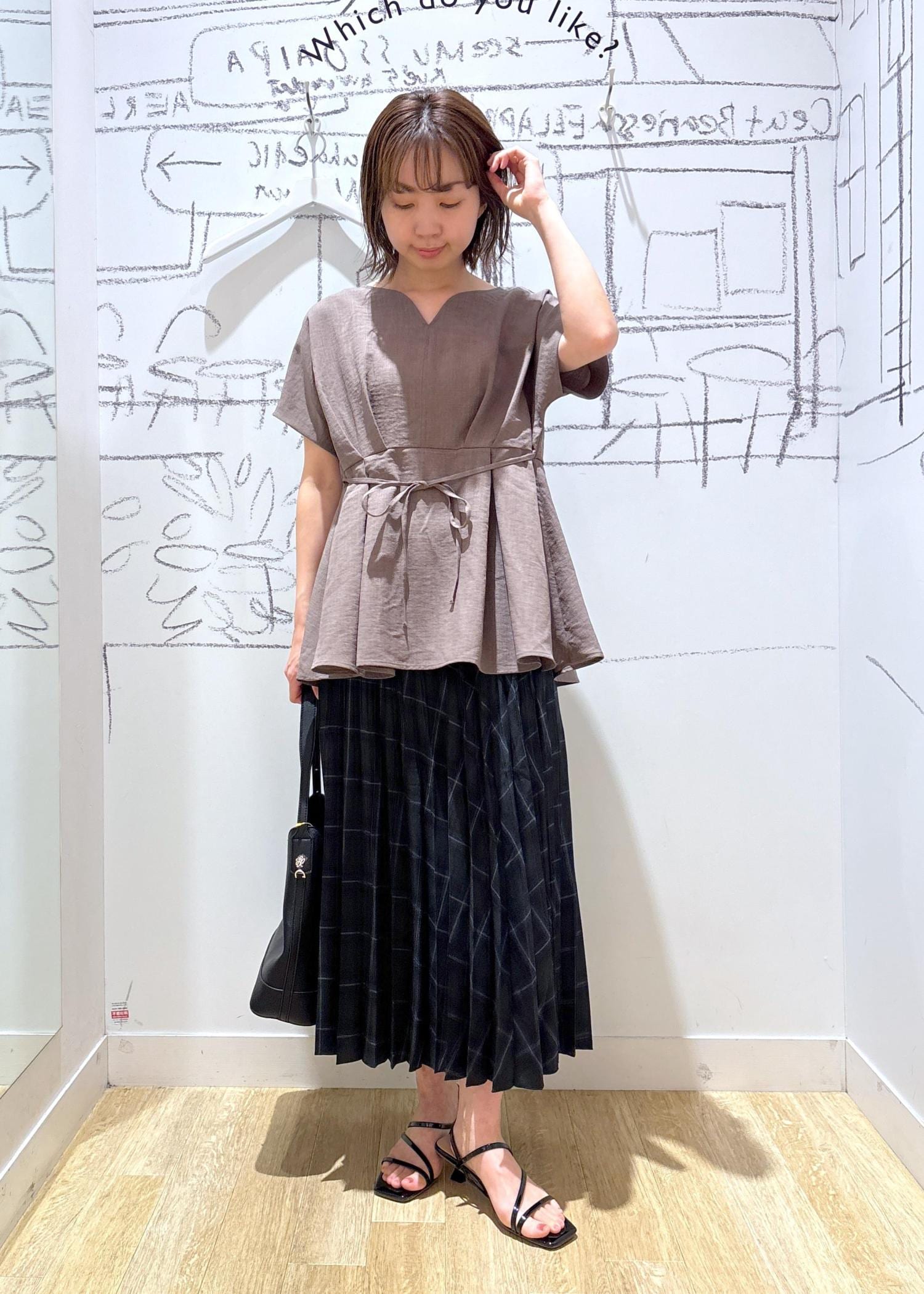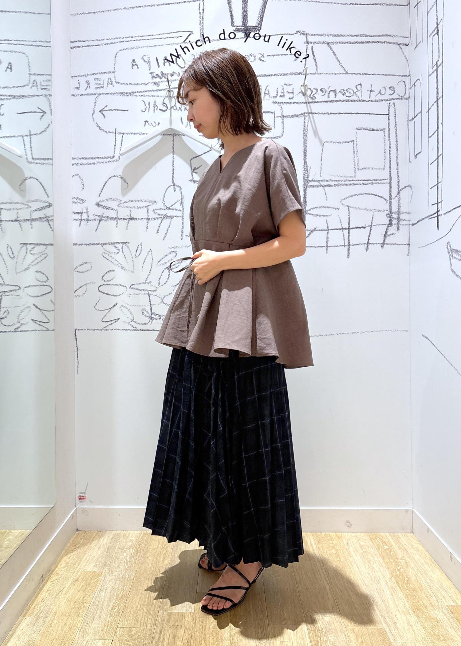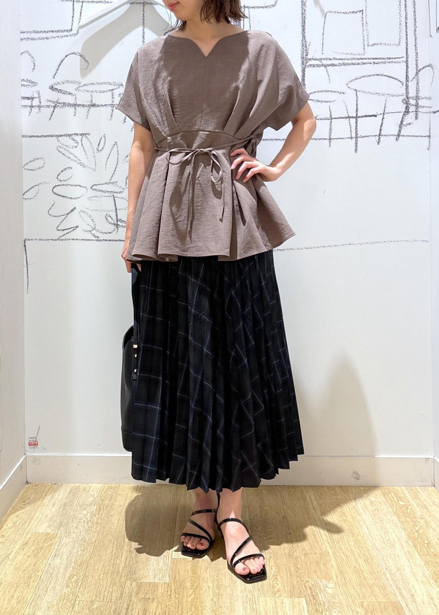 ハイウエストの切り替えですっきりとスタイルアップしてみえます。