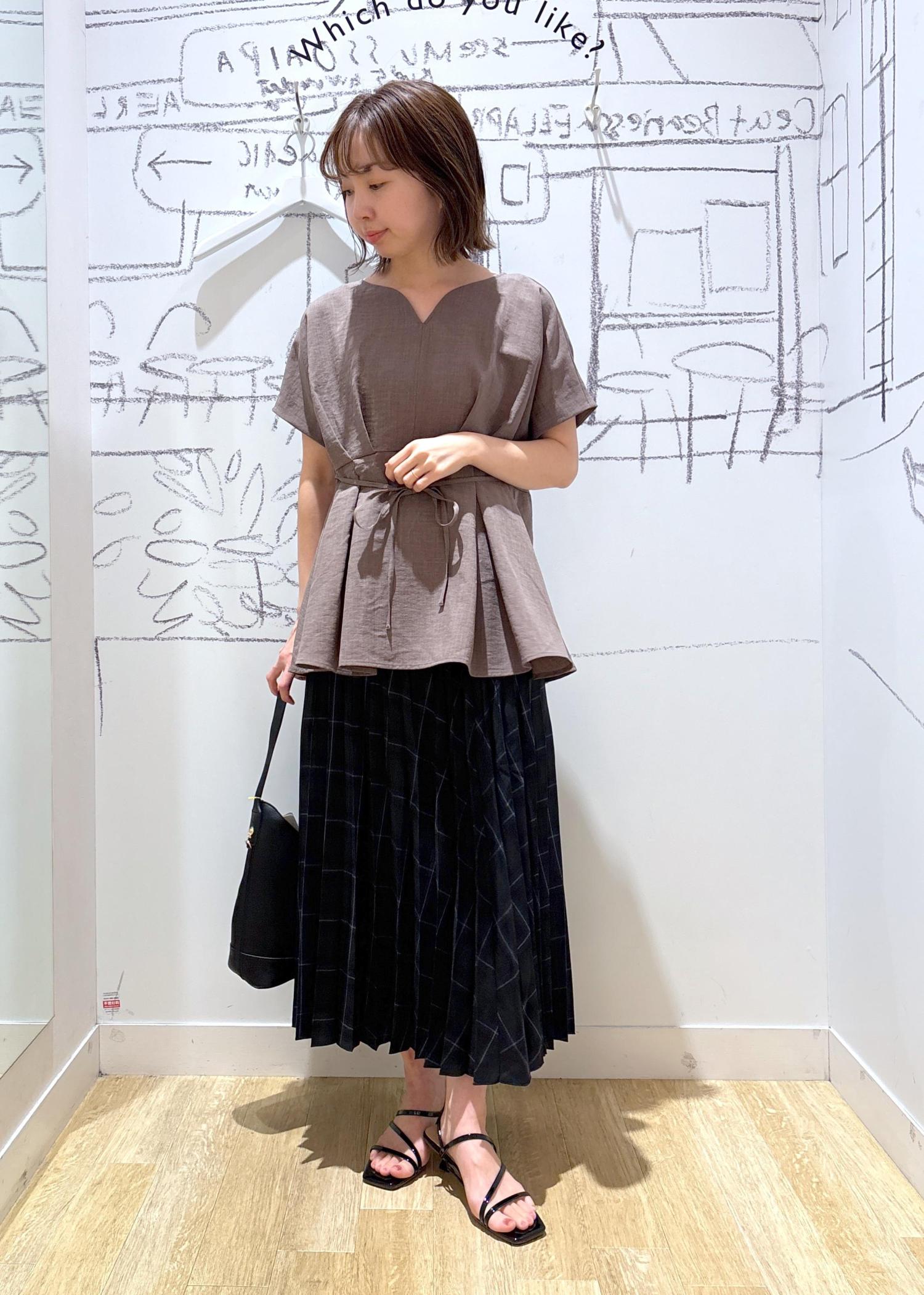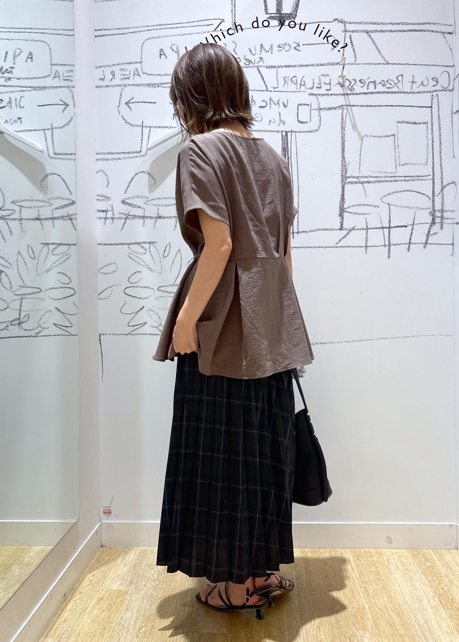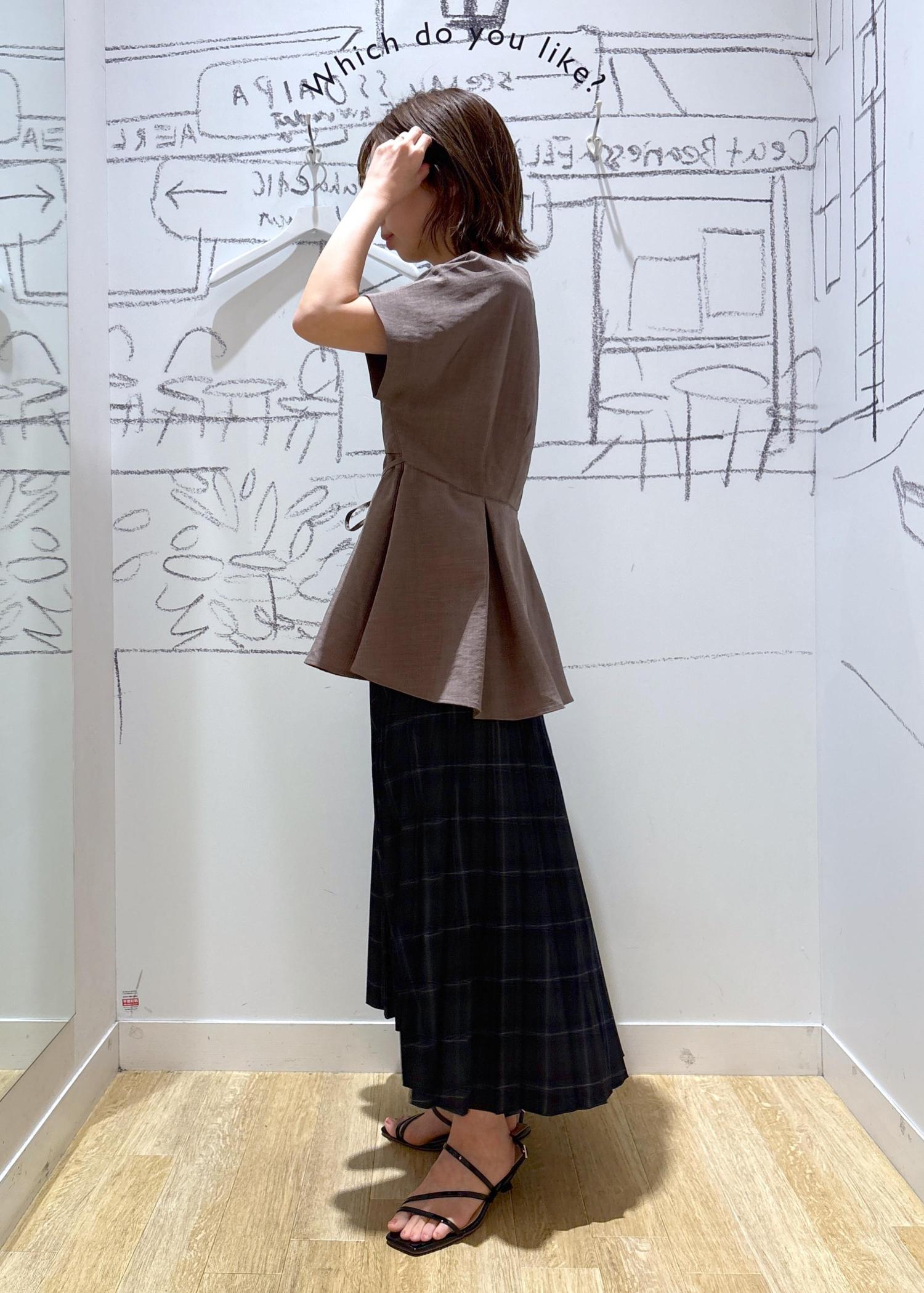 ハイウエストの切り替えですっきりとスタイルアップしてみえます。