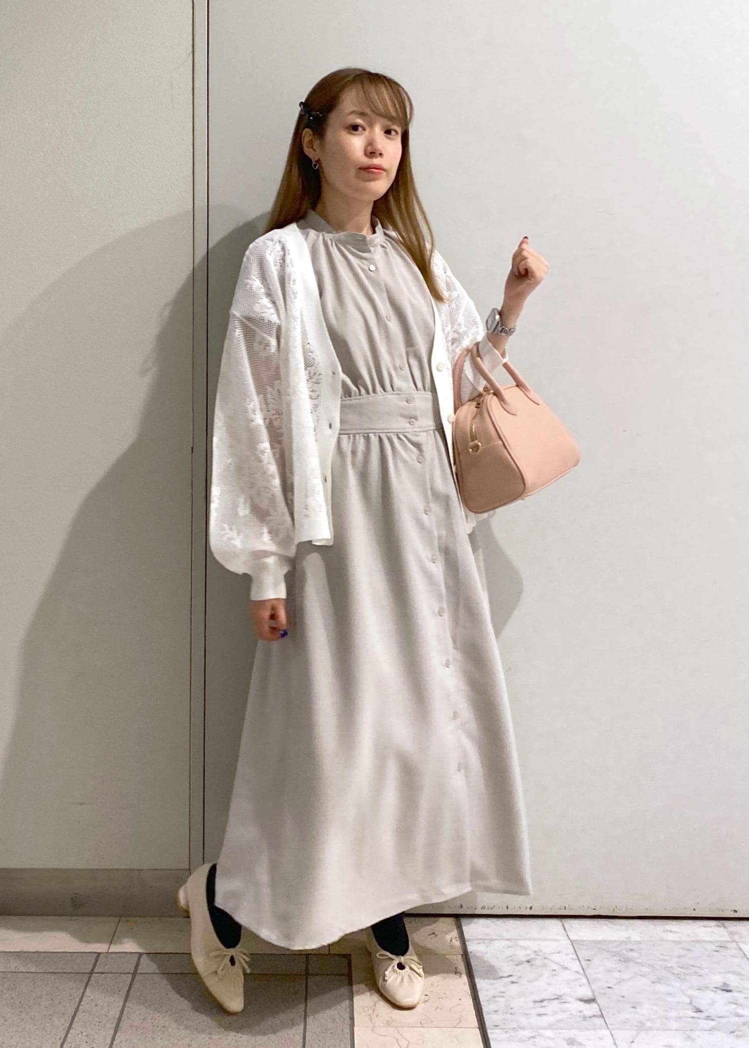 ワンピースに合わせて柔らかいカラーをチョイス。