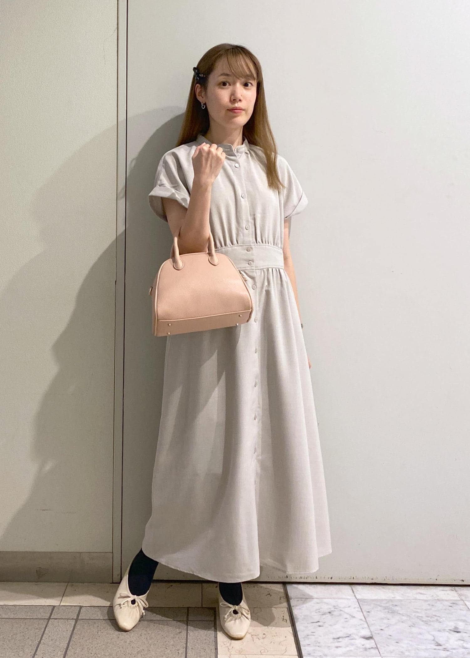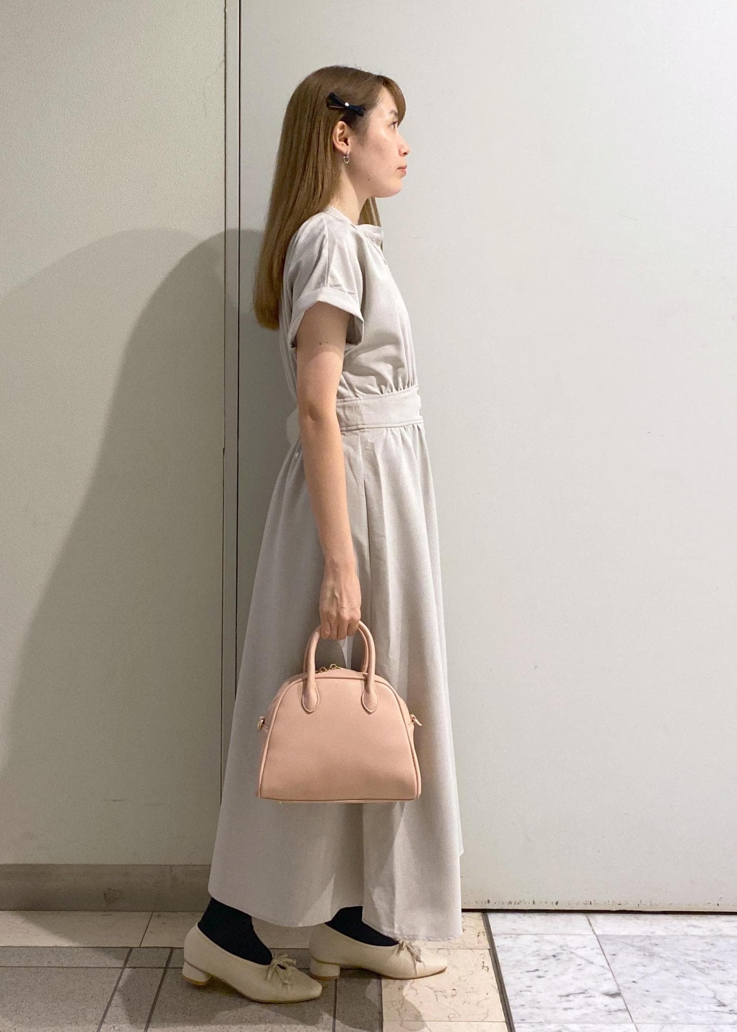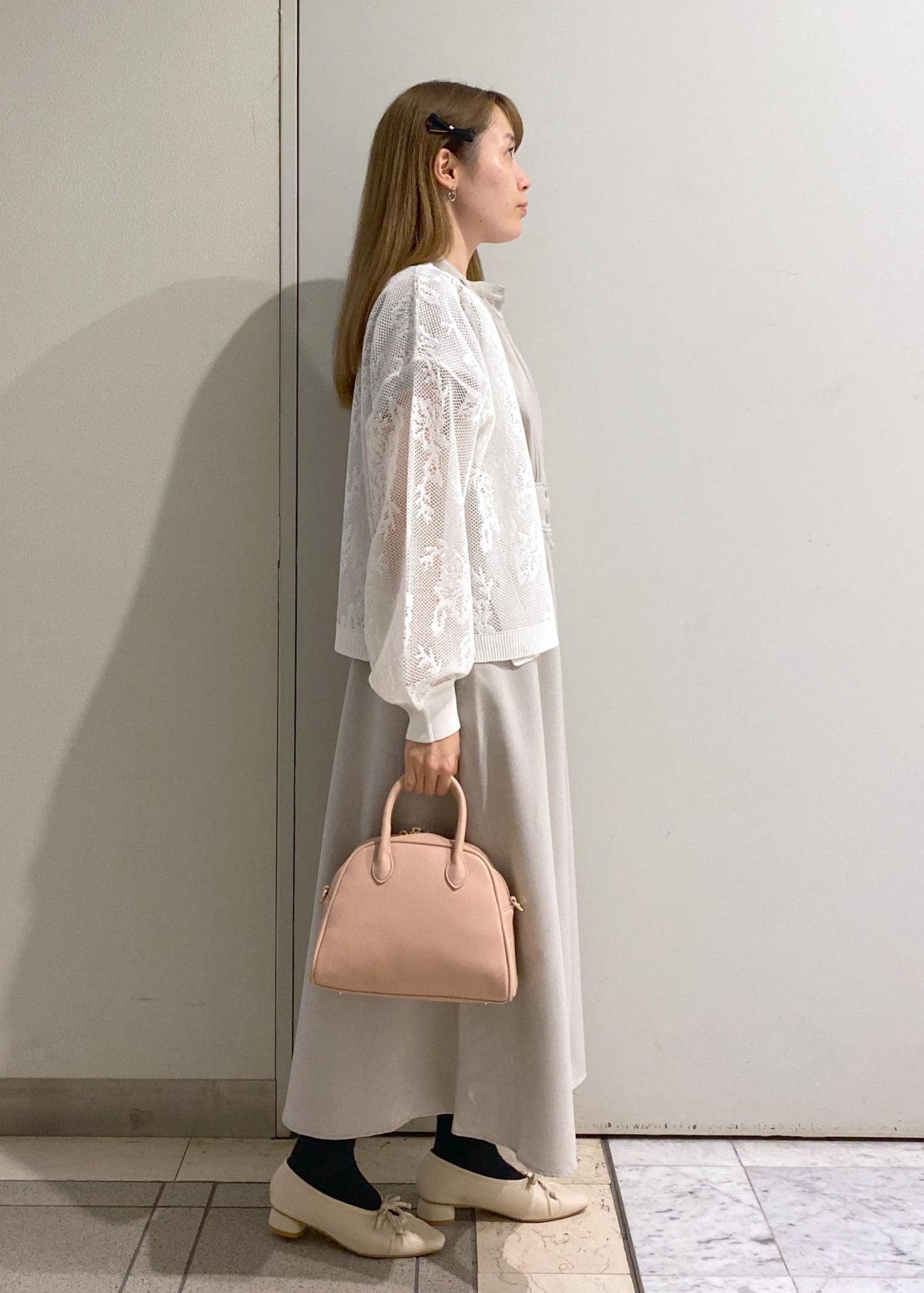 バッグでピンクを取り入れて、ちょっぴり甘めの上品コーデに♡