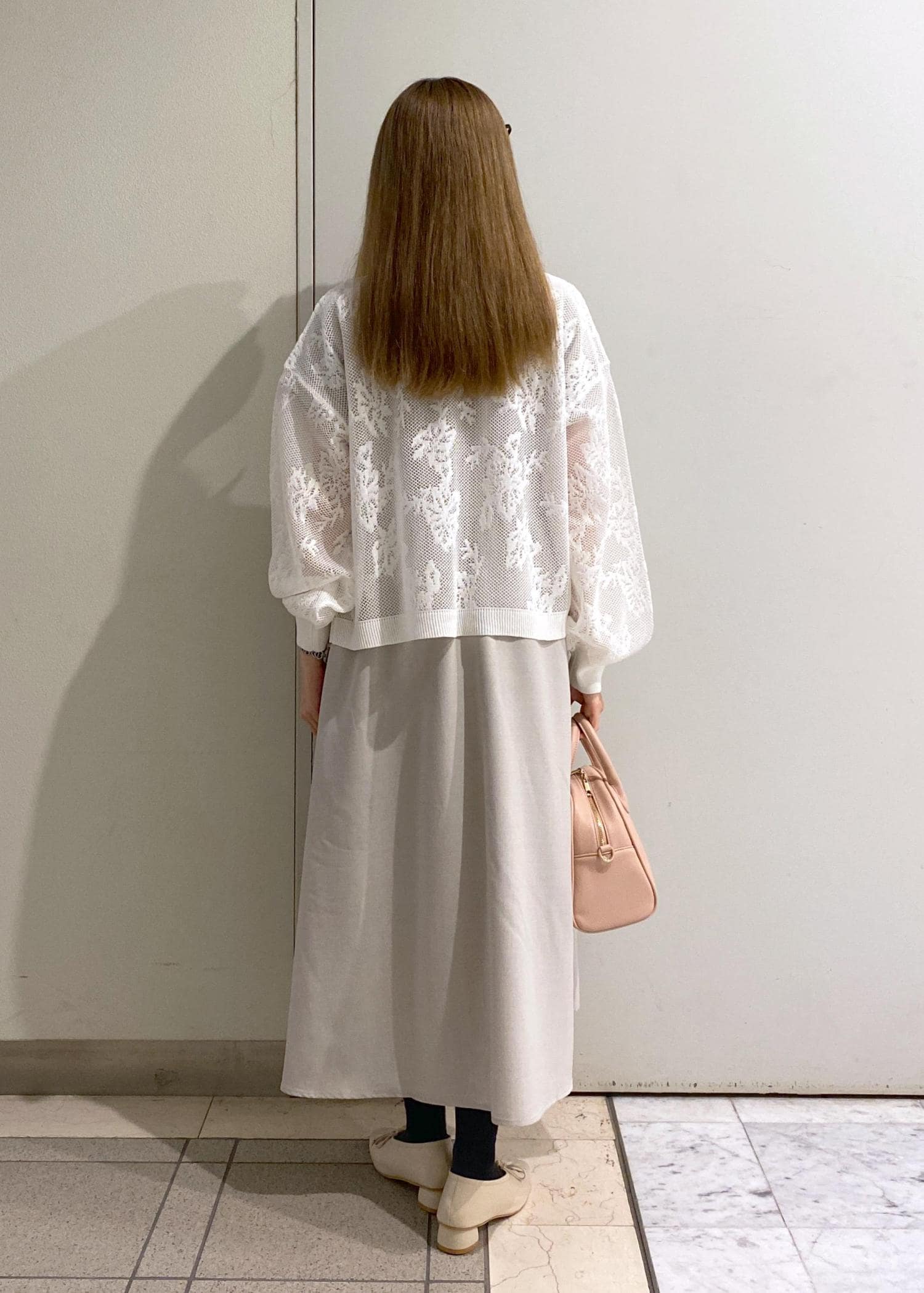 長すぎない丈感なので、幅広いボトムスに合わせやすい!ロングワンピースとの相性も◎