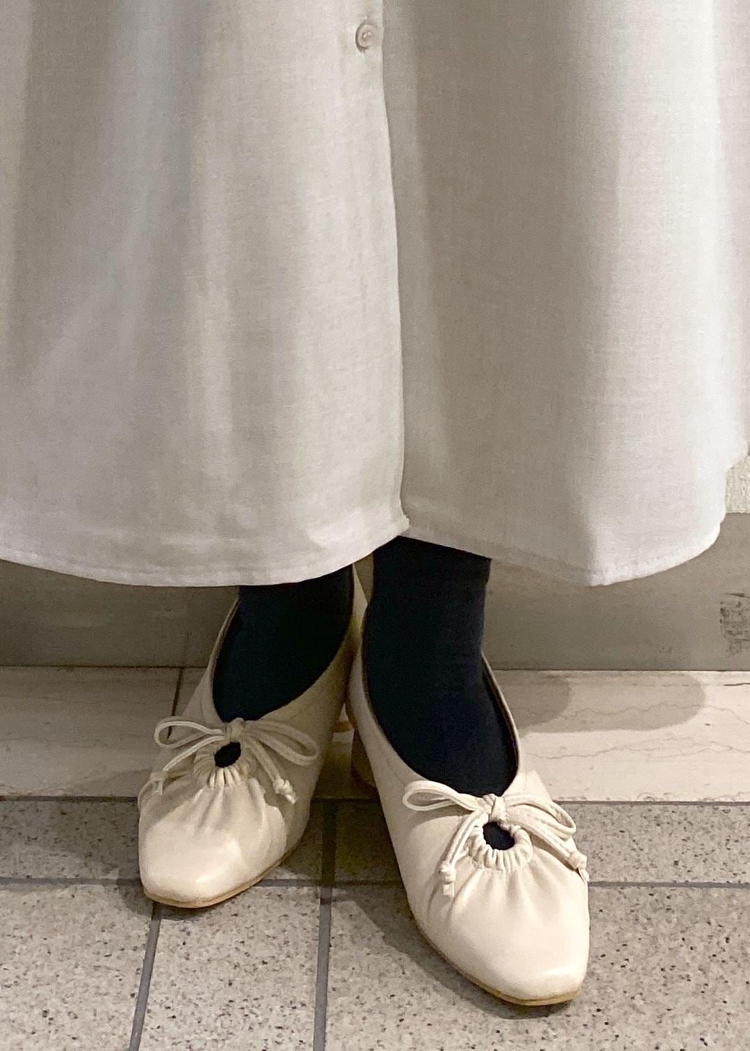 アウトレットROPÉ PICNIC PASSAGEリボンギャザーミドルヒールパンプスキナリ / S¥4,197レビューソールはクッション性があり足裏にフィットします!