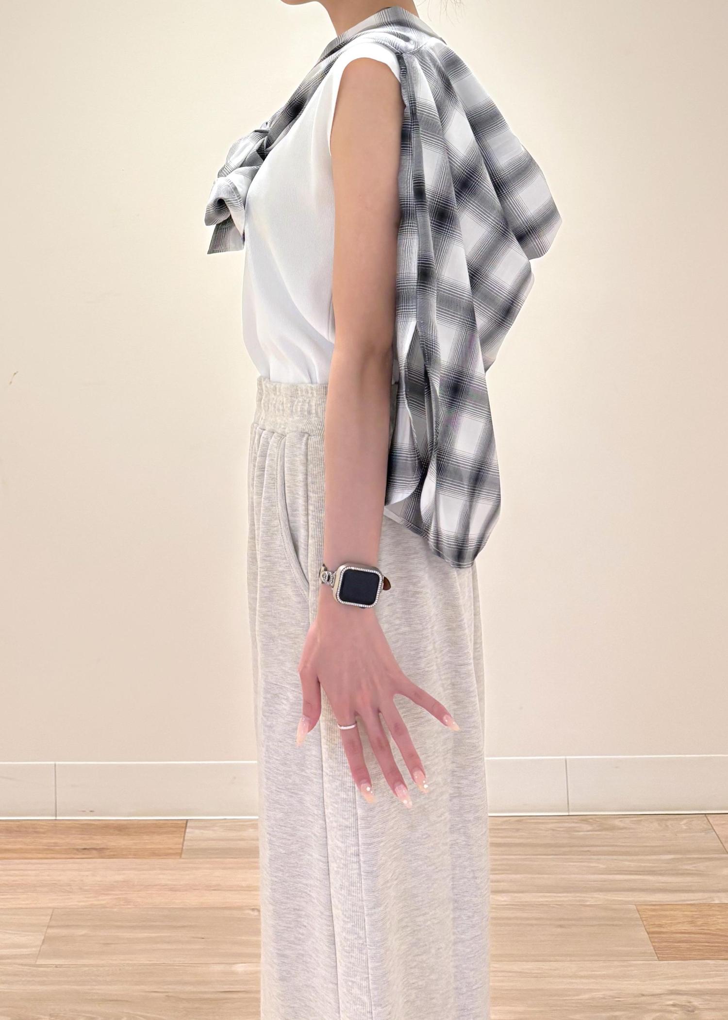 サラッとした生地感で肌に張り付くことなく着用できます! -