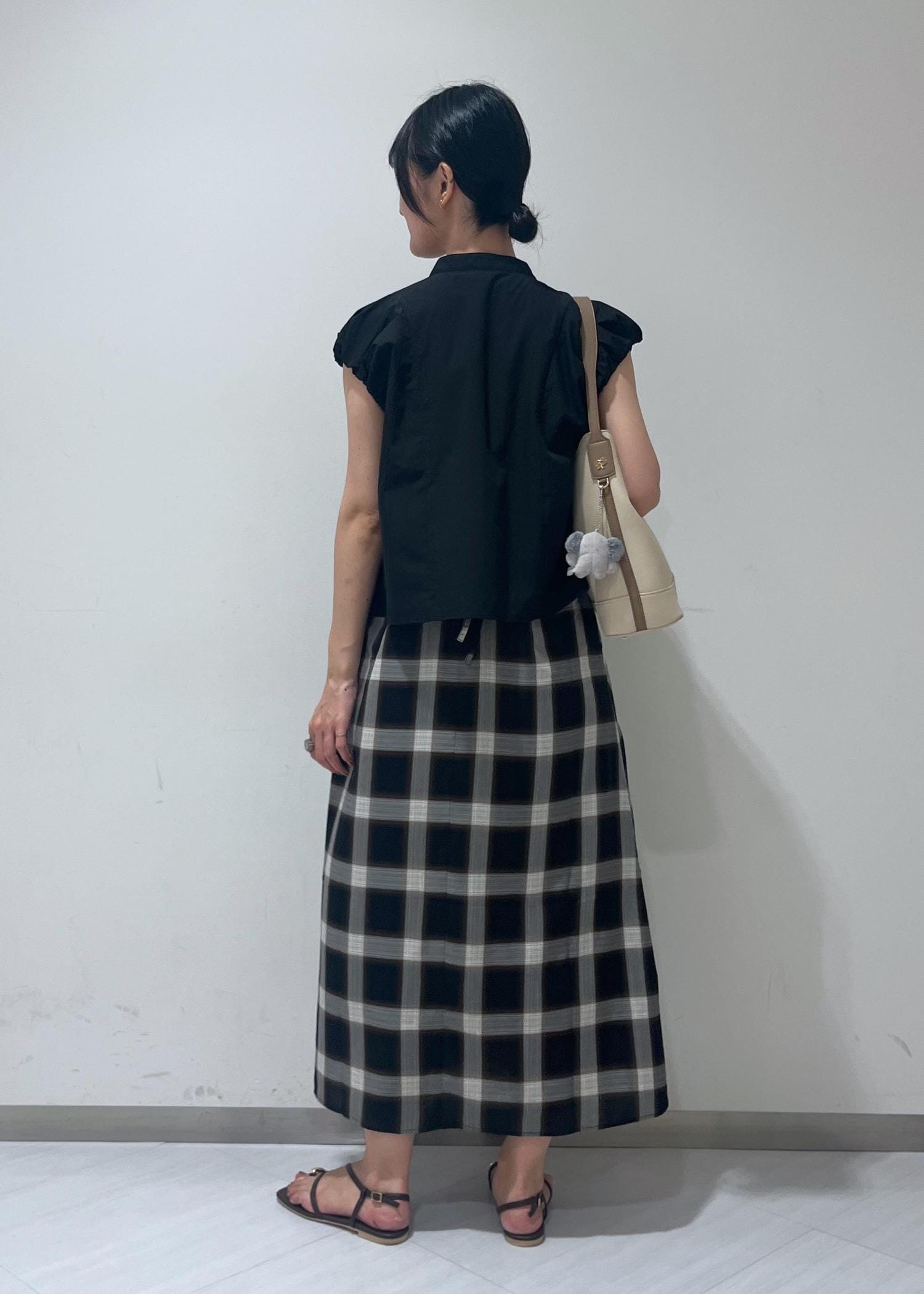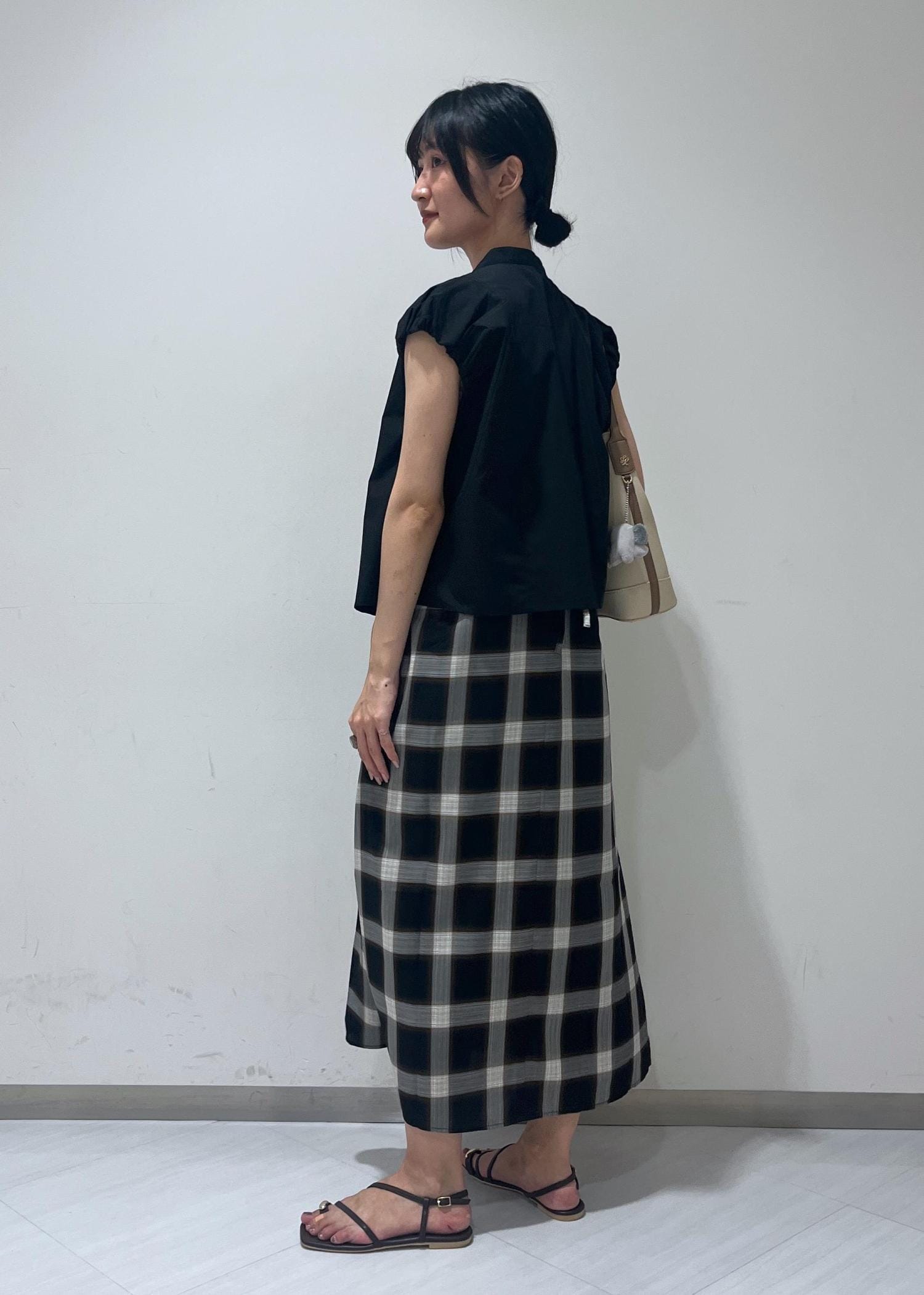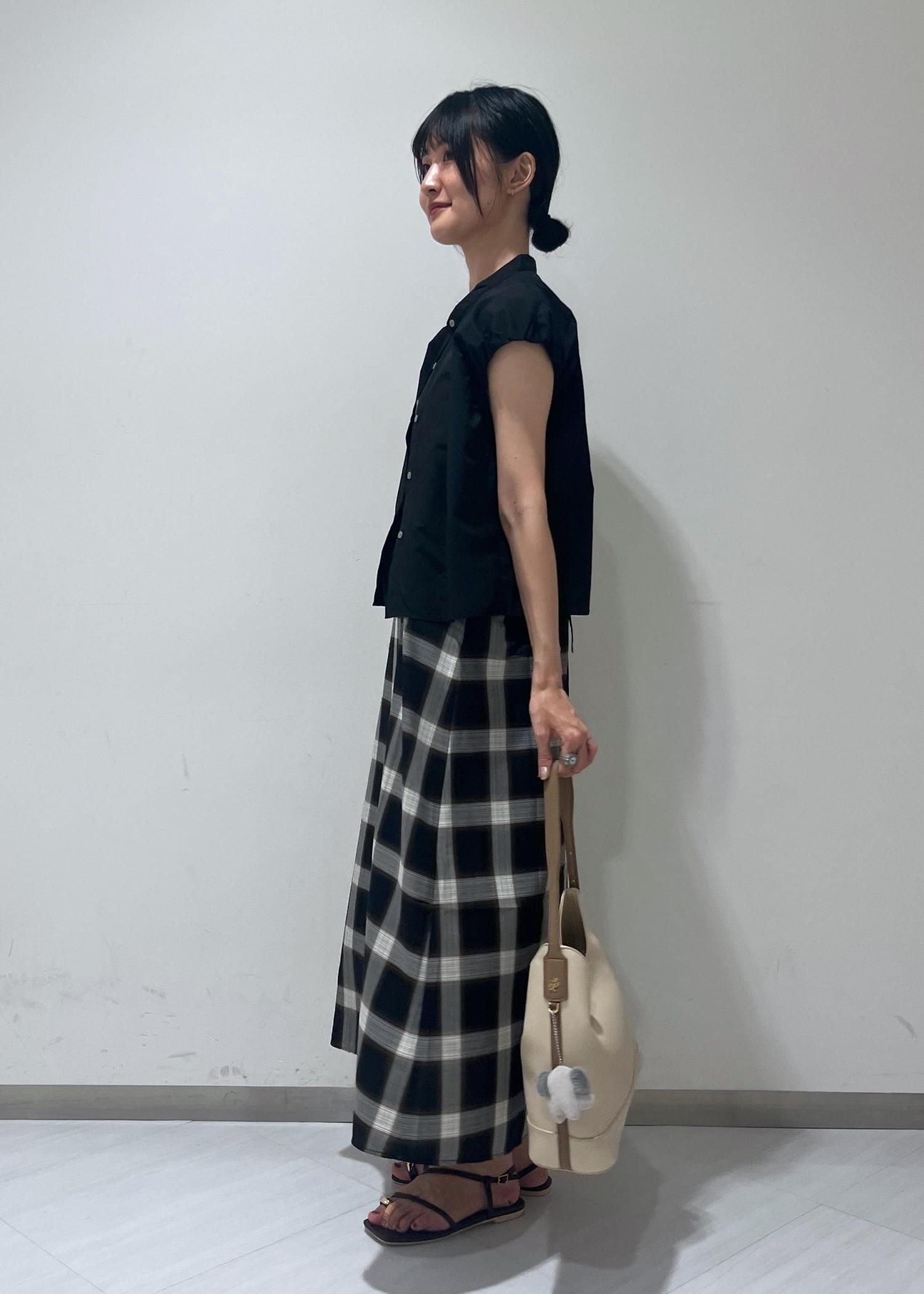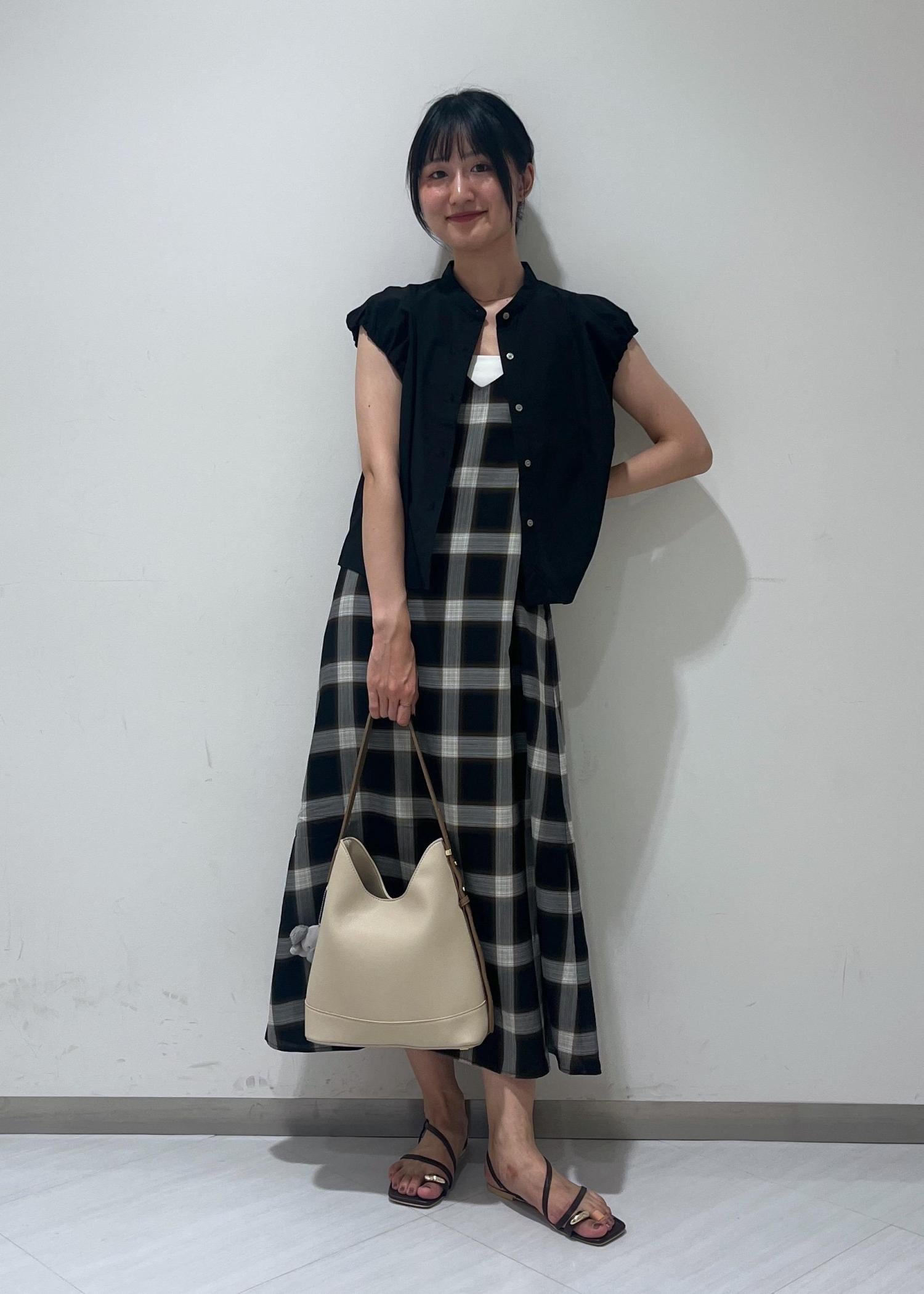 キャミワンピースにブラウスを合わせてきれいめカジュアルなコーデにしました。