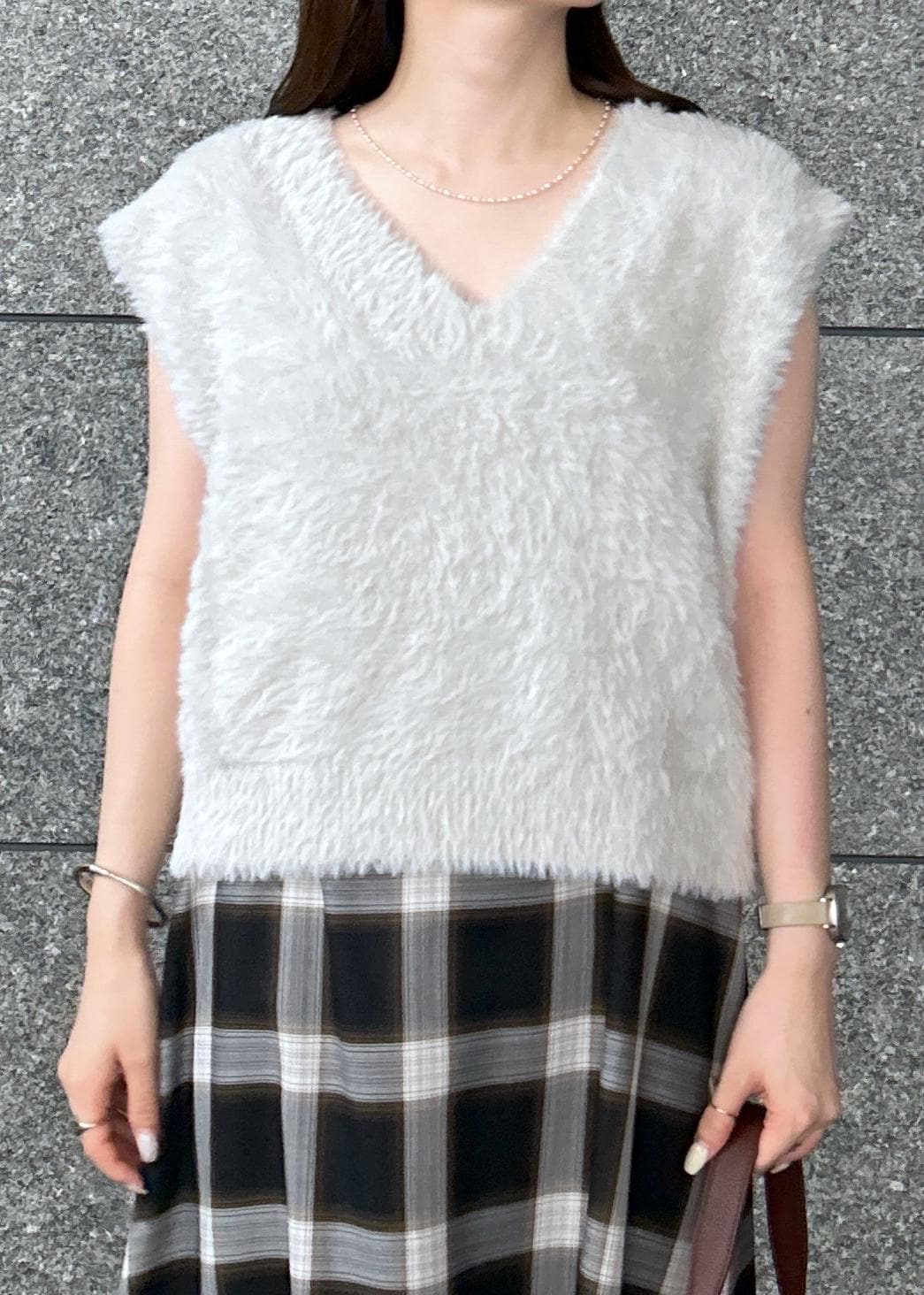 ROPÉ PICNICショートフェザーニットベストライトグレー / F¥3,993レビュー身幅がゆったりとしたサイズ感。丈は短めなのでスタイルアップできる長さです。