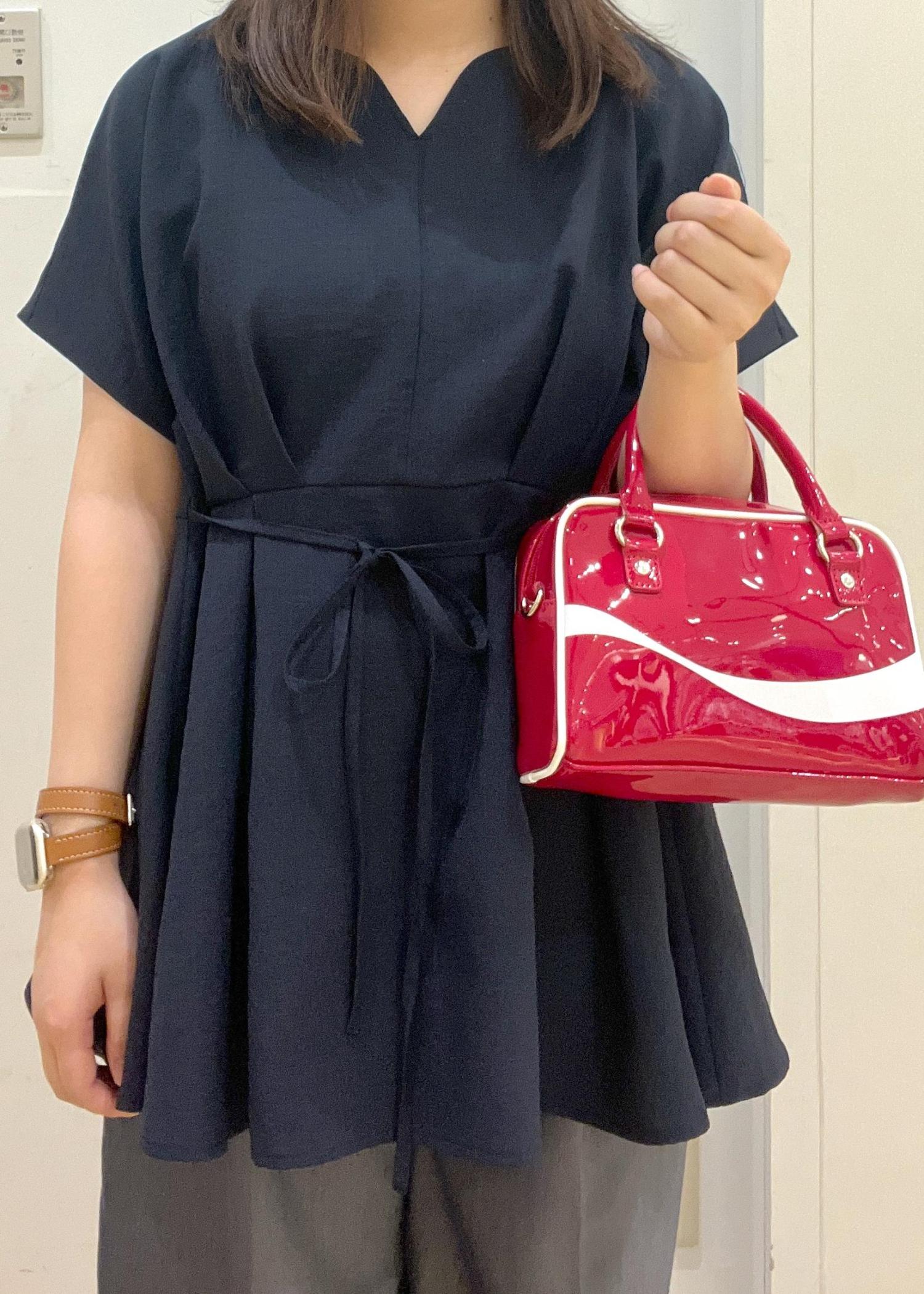 ROPÉ PICNIC【接触冷感】ハートネックペプラムブラウスネイビー / 38¥4,994レビュー前でも後ろでもリボンをすることができ、くくることによってウエストが細く見えスタイルアップになります◎