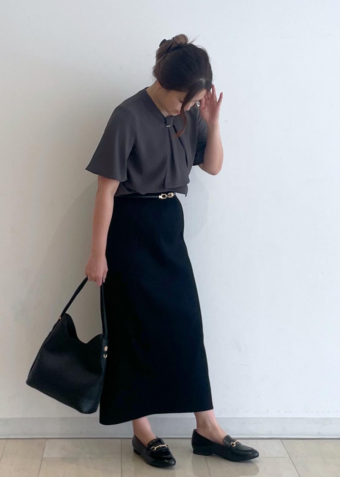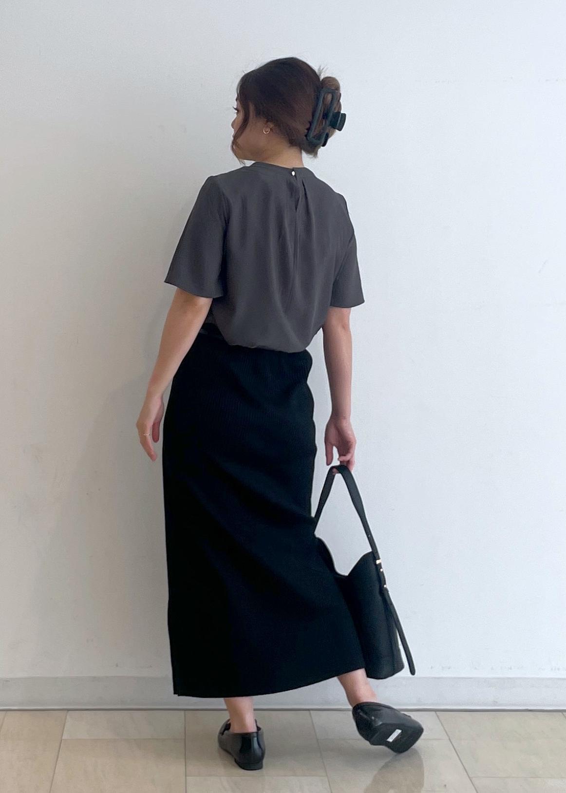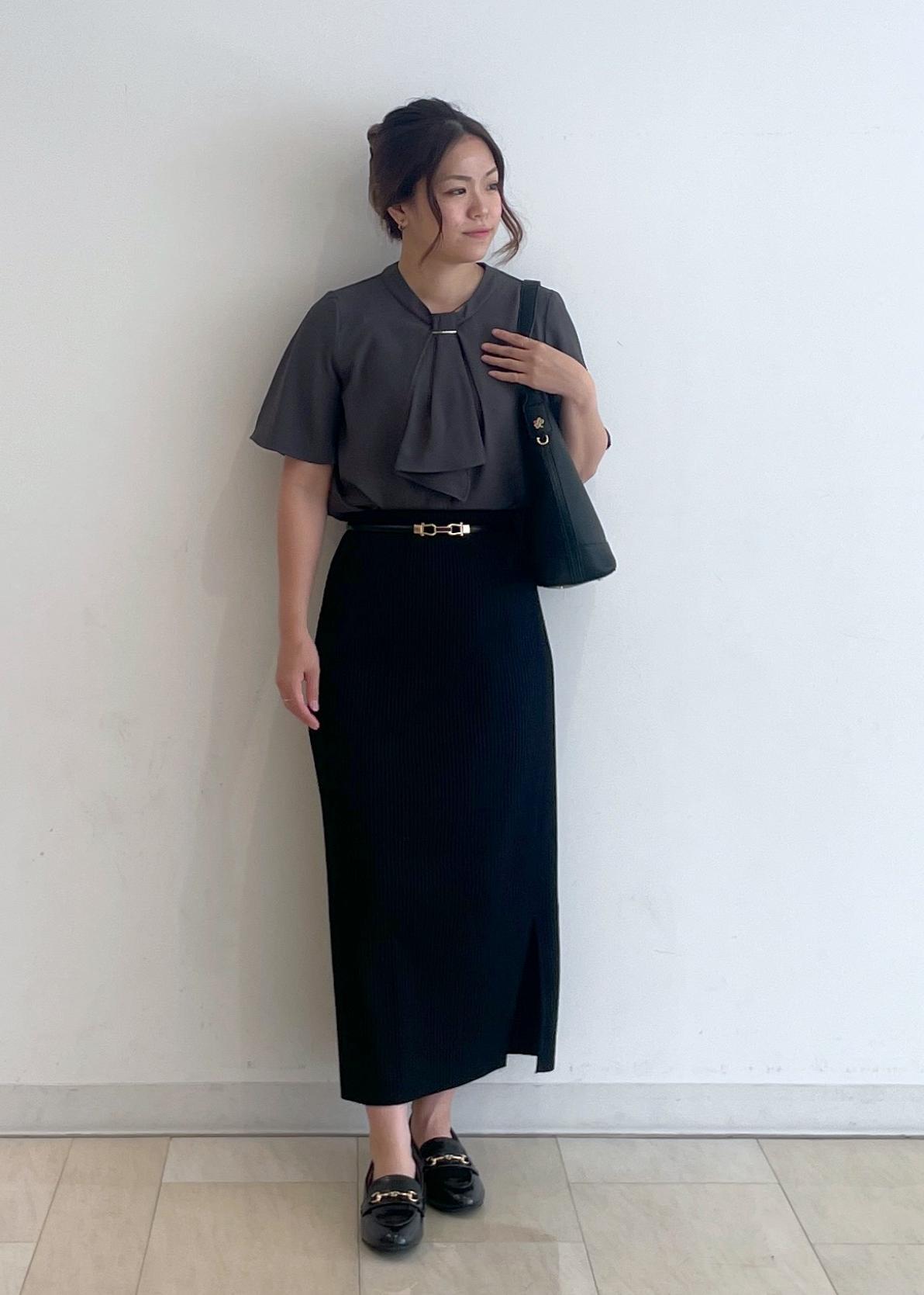 シンプルなコーディネートにしたかったので、腰周りが気になるタイトスカートはサイズをかなり上げて、骨格ウェーブ特有の大転子が目立たないようにしました!