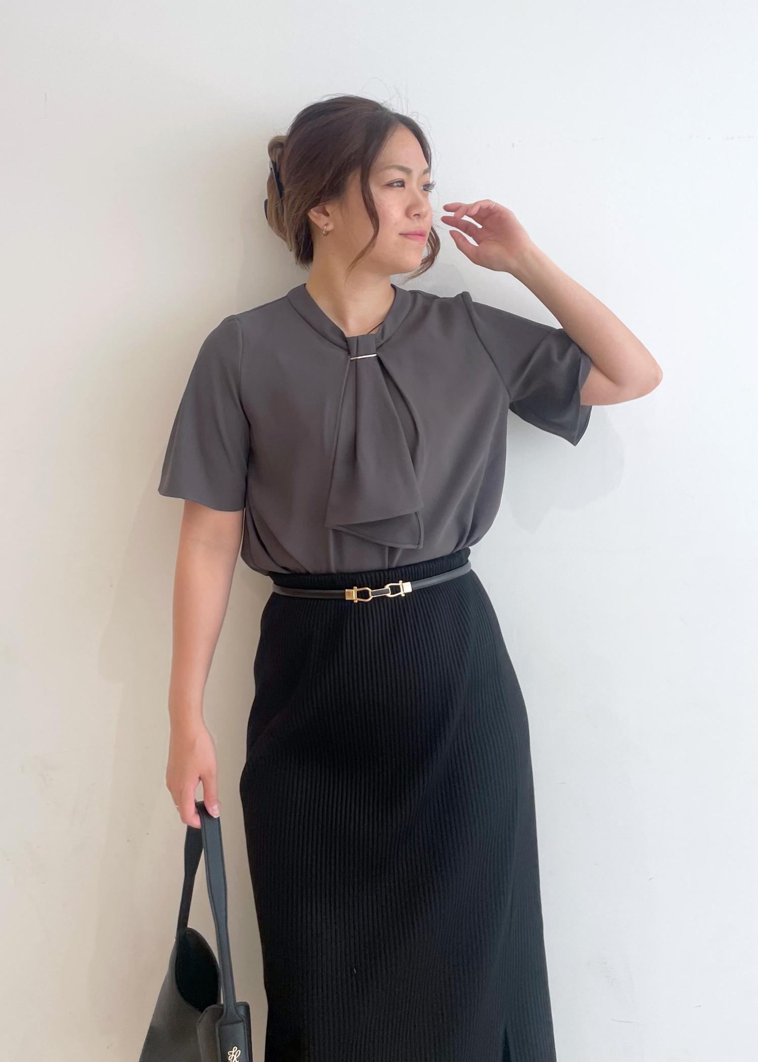 ROPÉ PICNICメタルパーツフロントフリルタイブラウス/通勤対応チャコール / 36¥4,389レビューサラッとした生地で5分袖なので、二の腕も隠しつつ涼しく着れます!