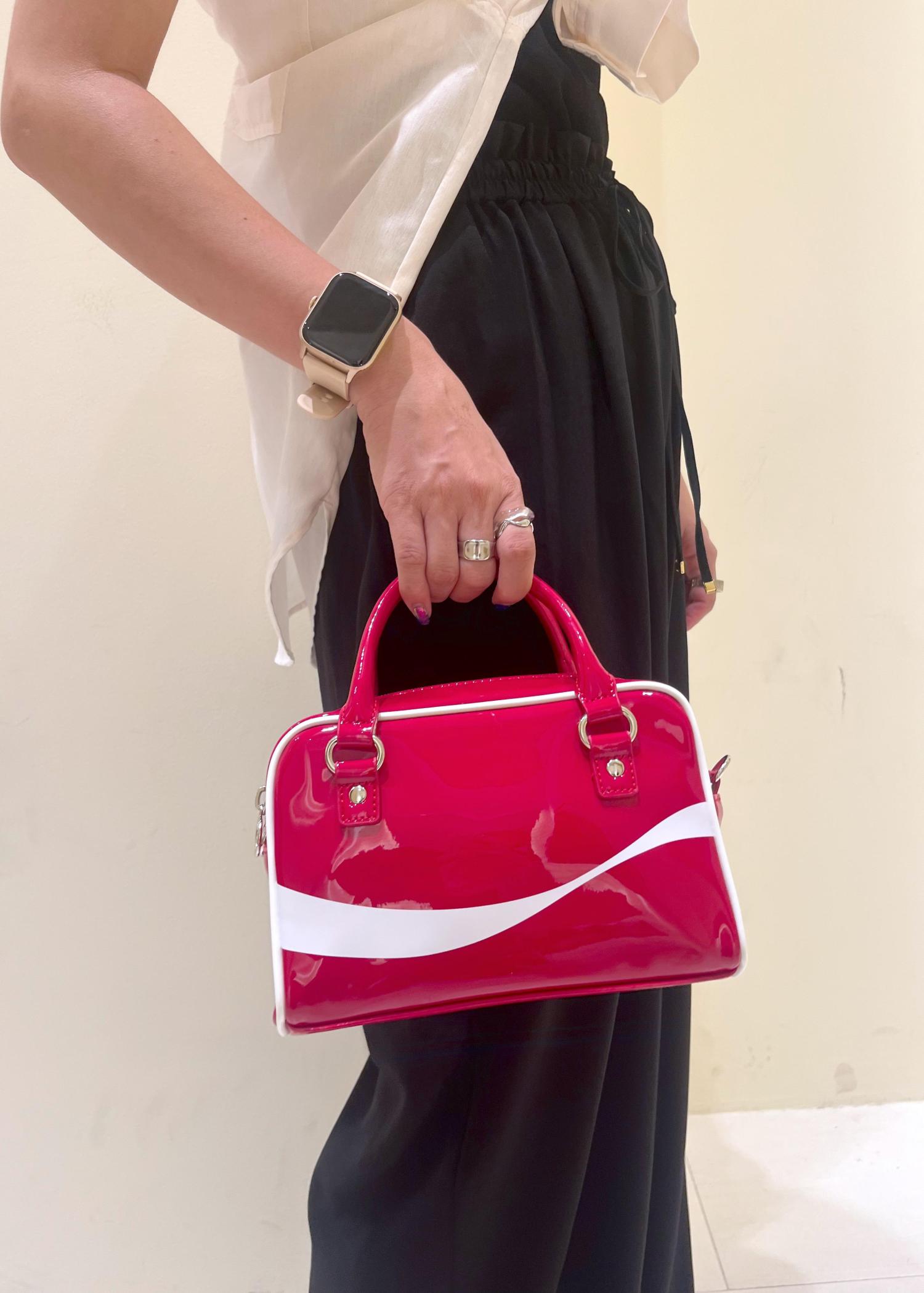 Coca-cola Special Collectionのエナメルボストンバッグを差し色に使ったコーディネート◎
