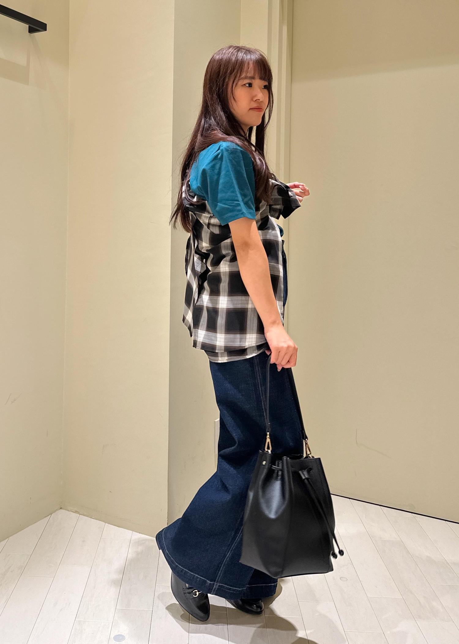 今の時期にはタンクトップやTシャツで合わせ、初秋には薄手の長袖に合わせ長く着れるアイテム! -