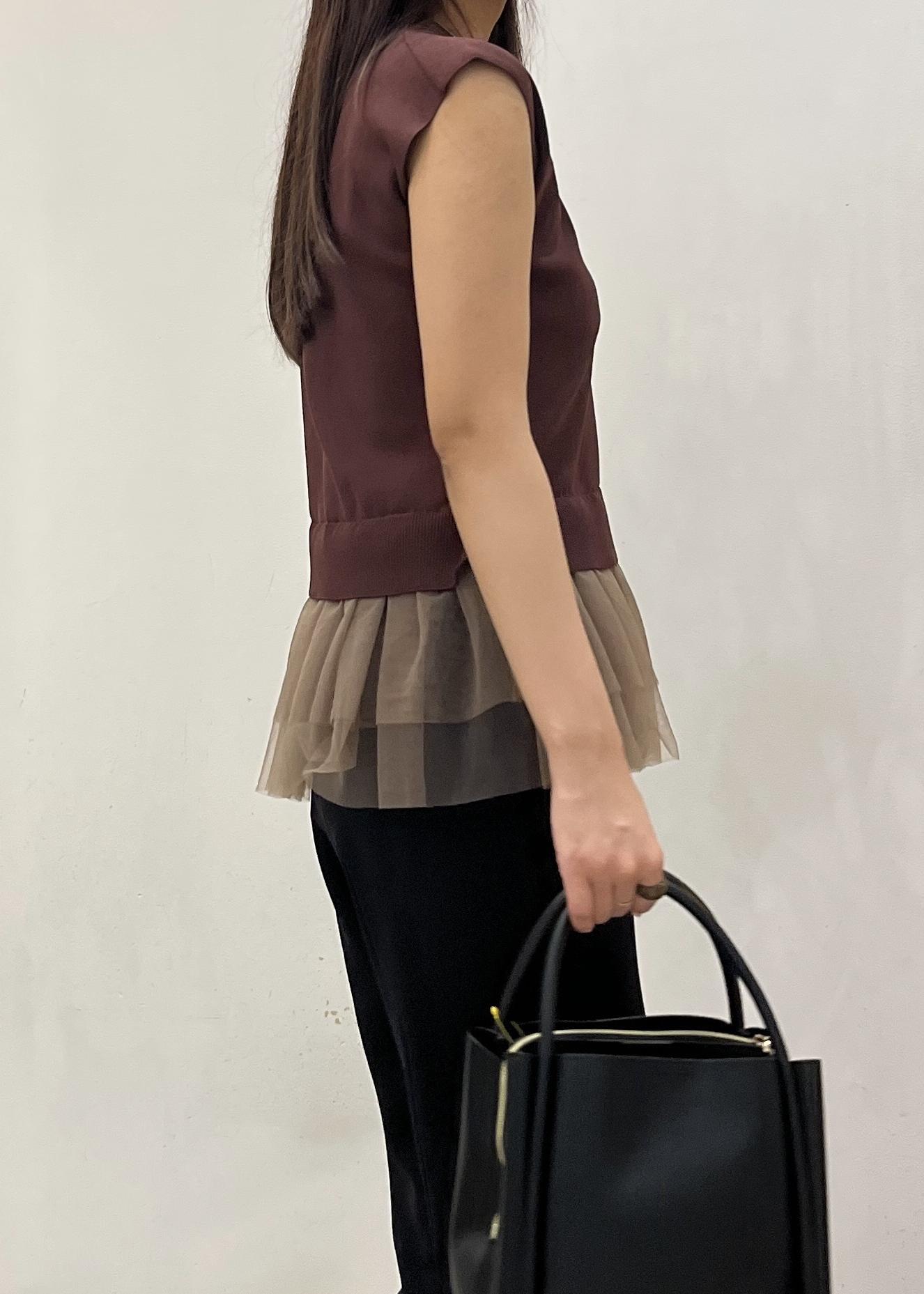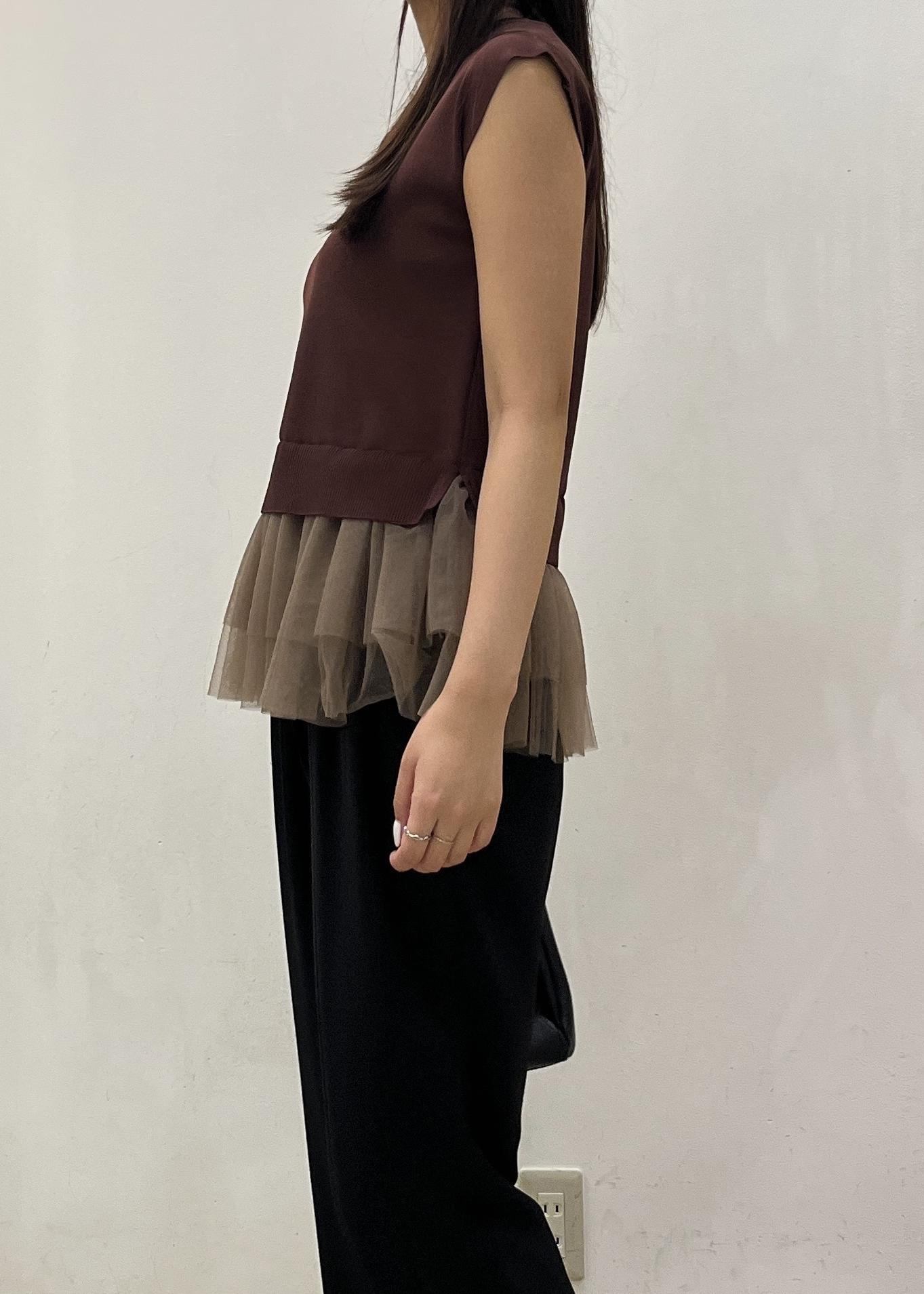 ROPÉ PICNICチュールドッキングプルオーバーブラウン / F¥2,992レビュー腰回りにチュール部分がかかる長さで安心感があります。ニット部分は伸縮性があり着やすいです。