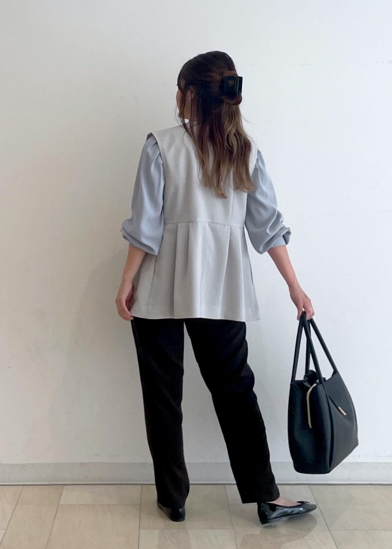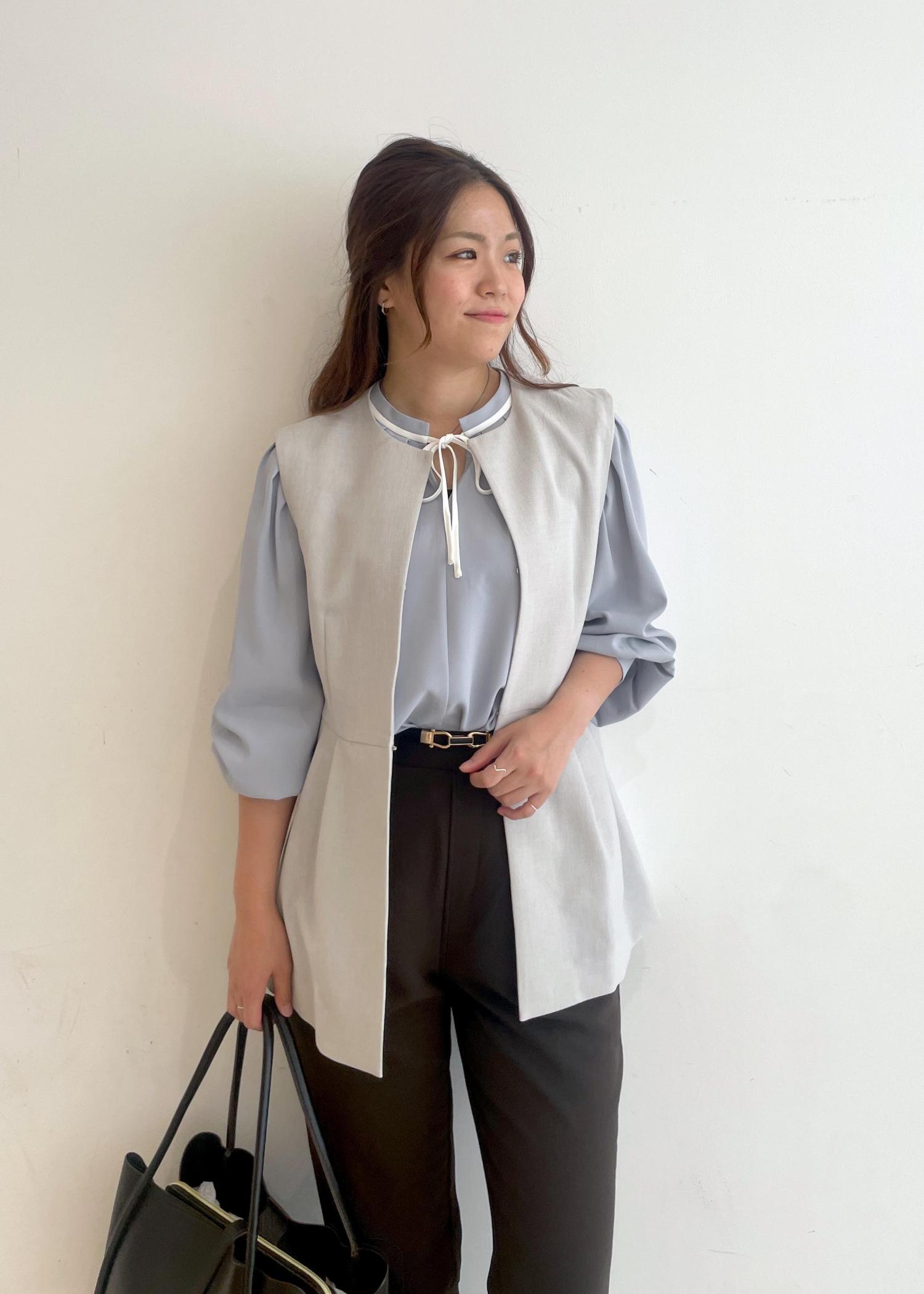 まだまだ日中は暑いのでブラウス×ジレで涼しくオシャレお仕事コーデです!