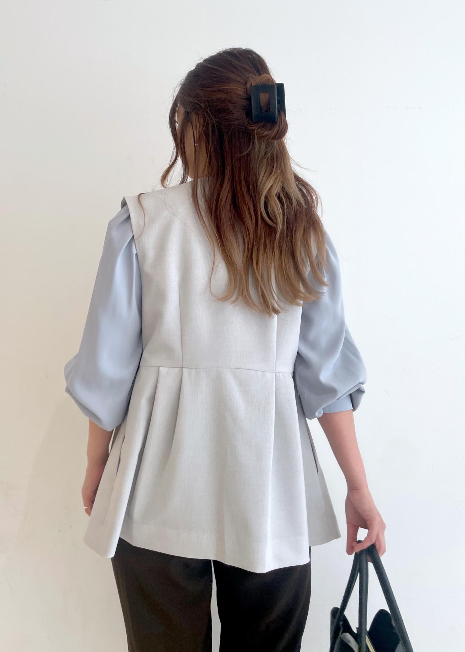 【UV対応】【リネンライク・シリーズ】ペプラムジレベスト/通勤・セットアップ対応
