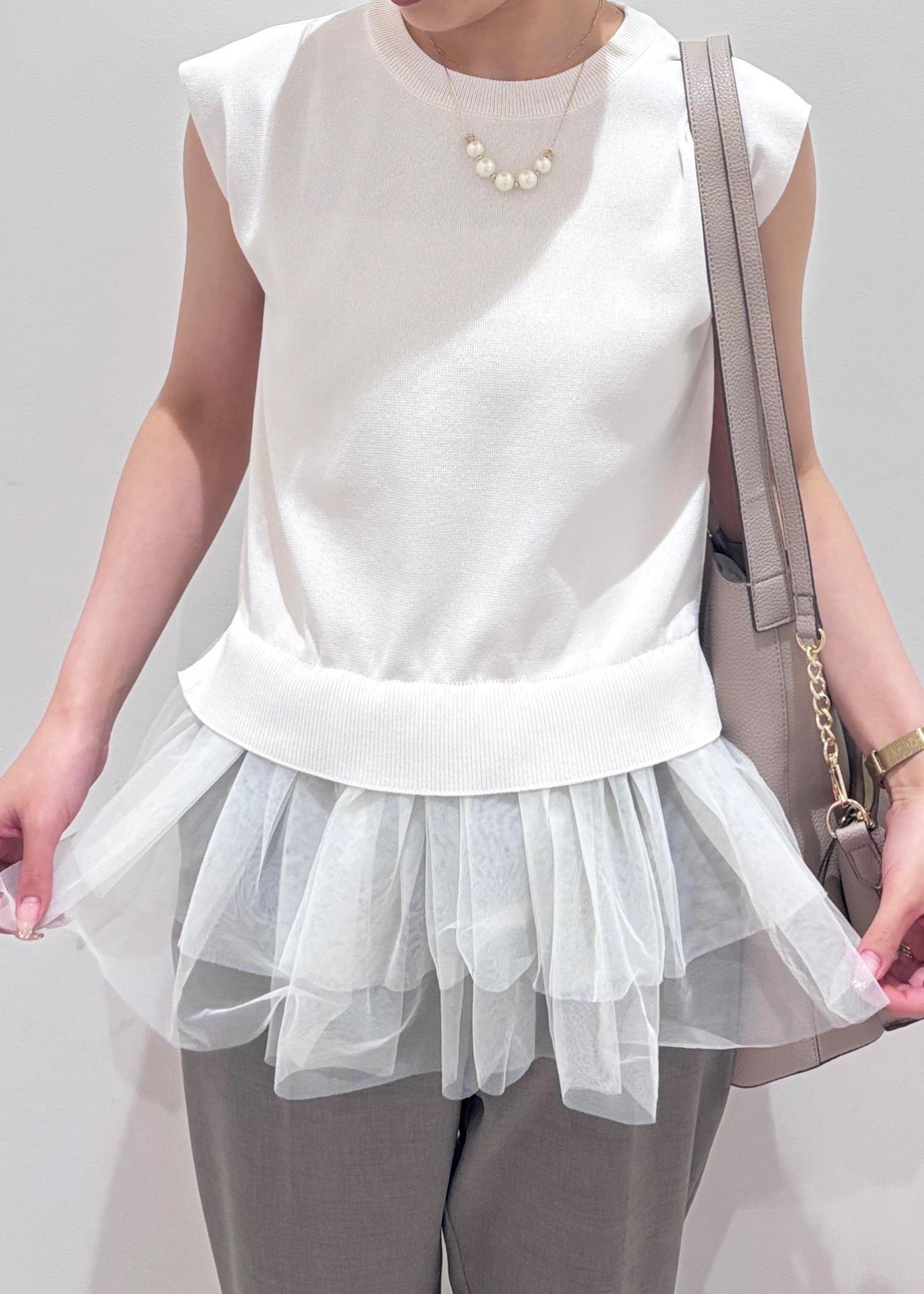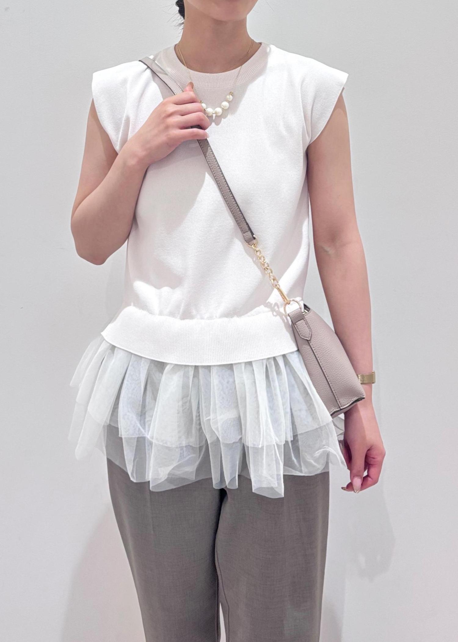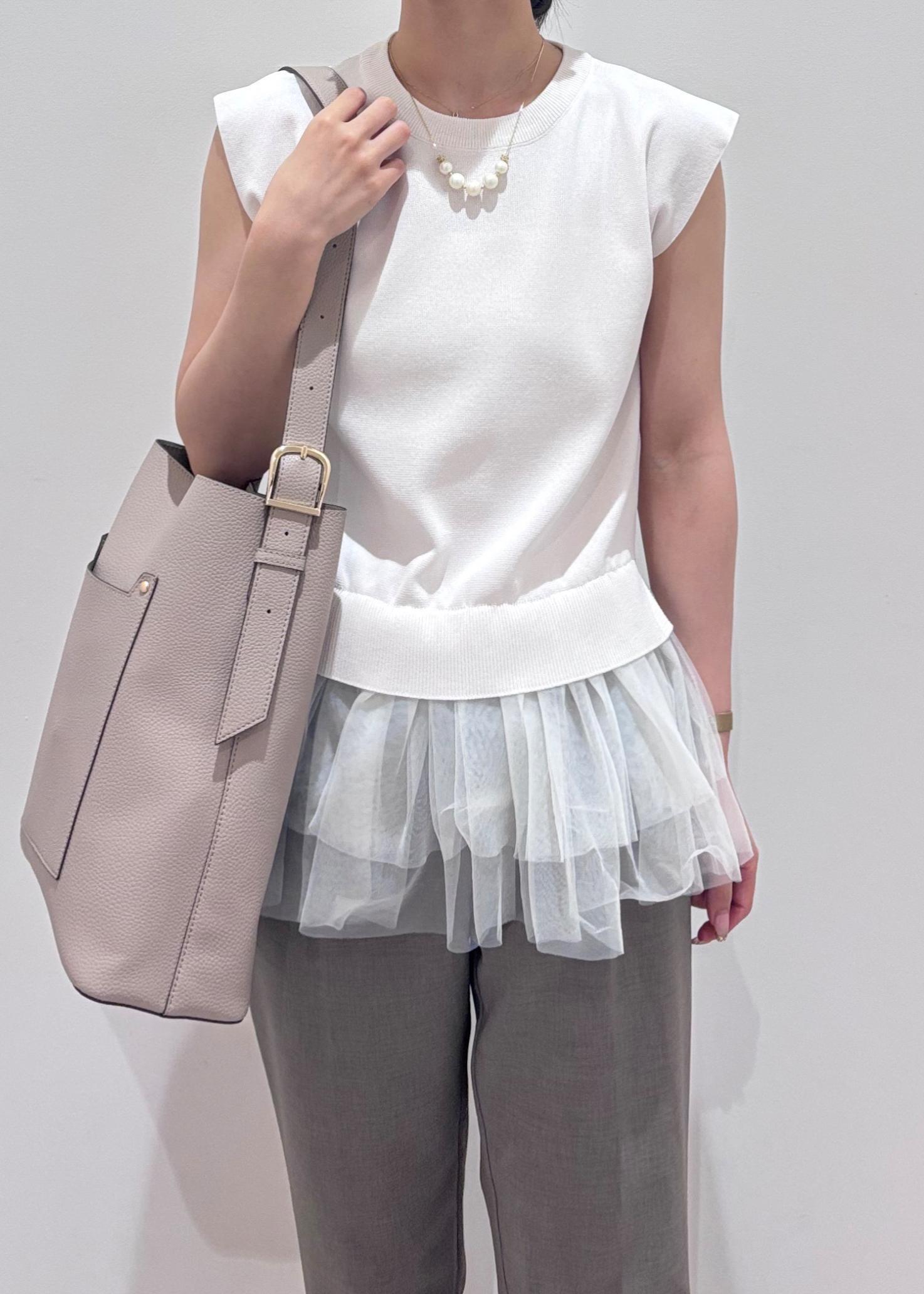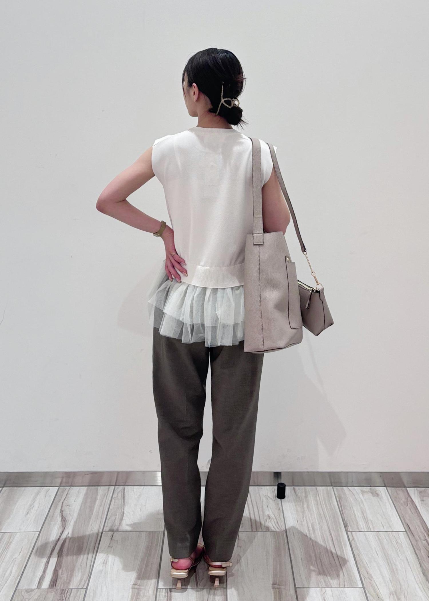 チュールトップス×テーパードパンツで綺麗めコーデ♪