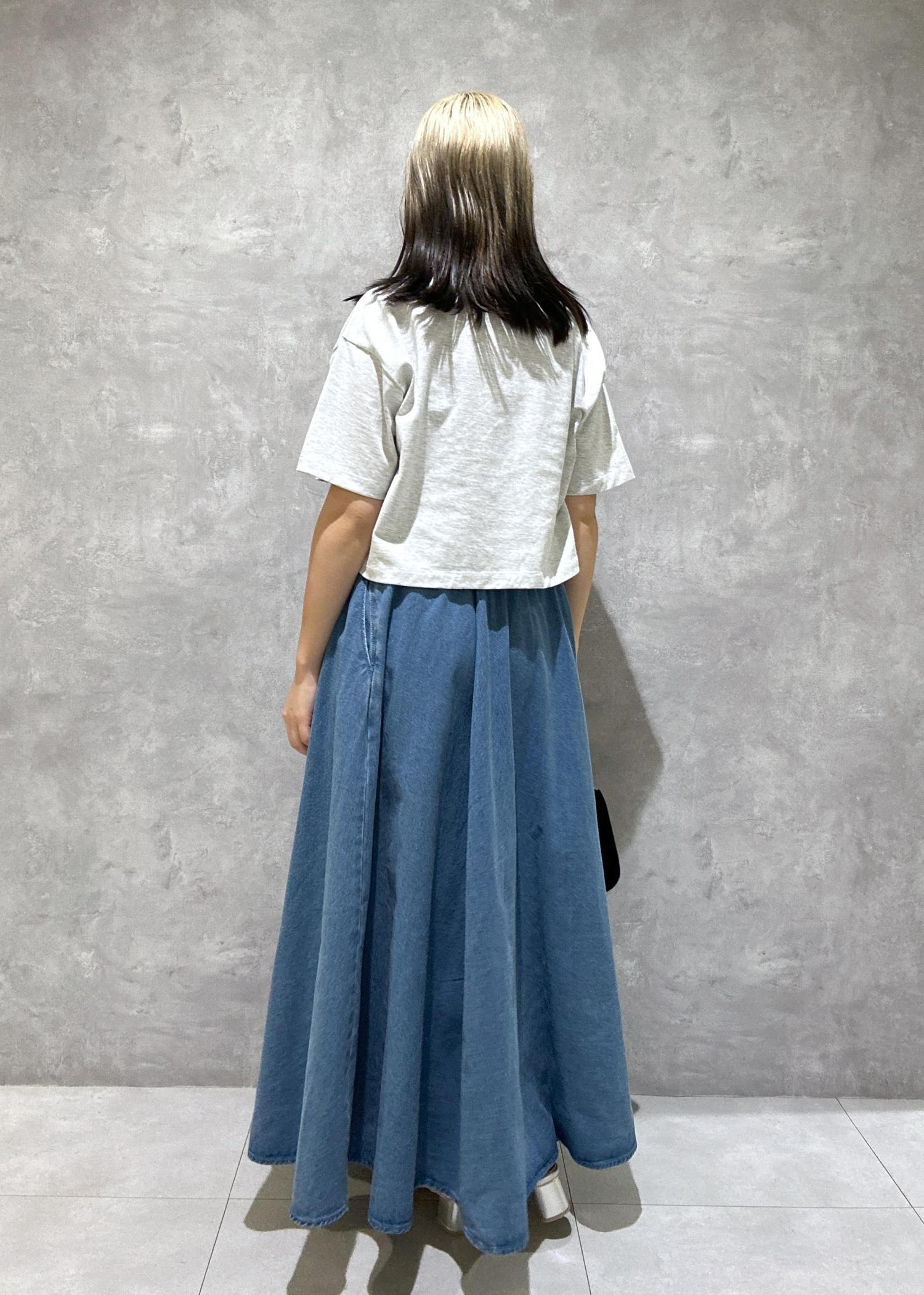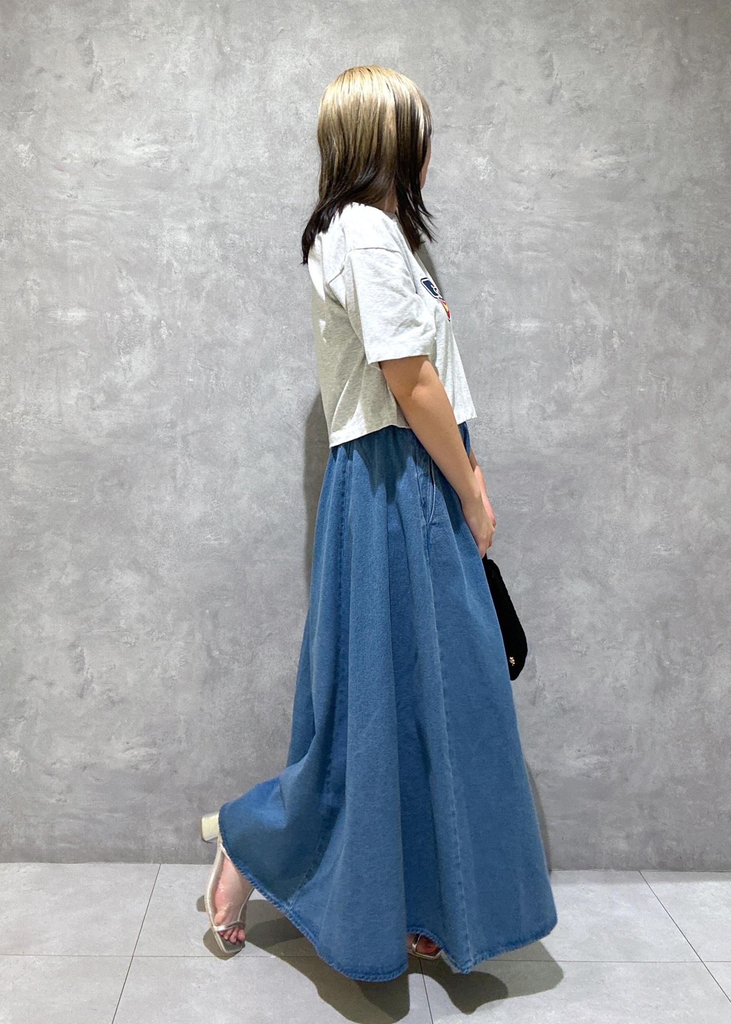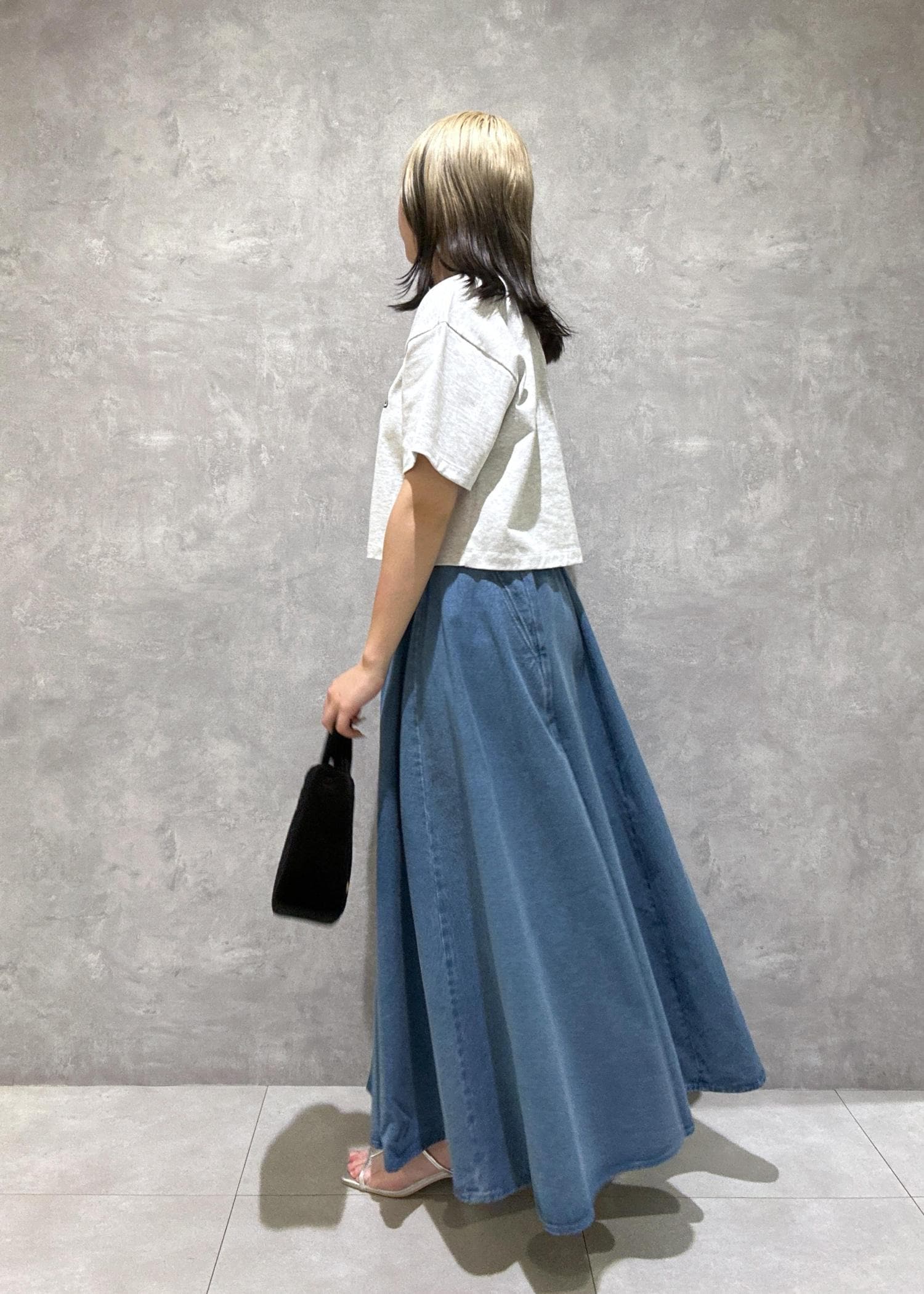 ボリューム感のあるシルエットのスカートです。トップスをショート丈やタイトめにするとバランスが取れたコーデになります。