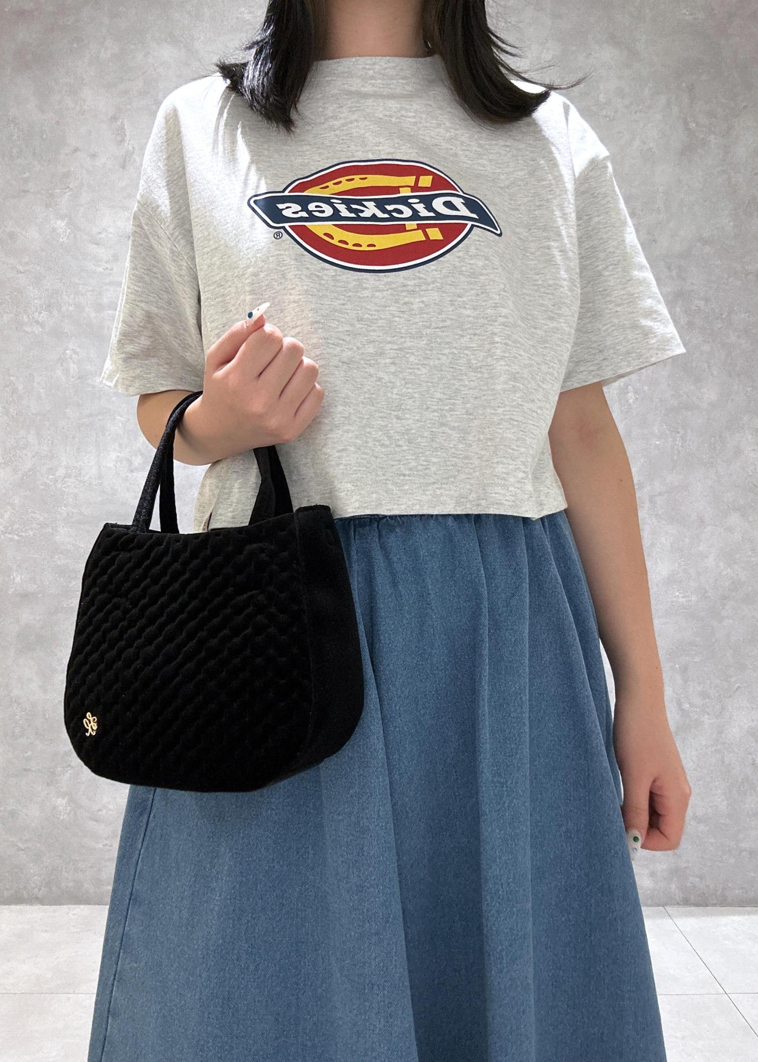 存在感のある大きめのDickiesのロゴが特徴的なプリントTシャツです。丈感が短めなのでワイドパンツやフレアスカートなど合わせるとちょうど良いです。