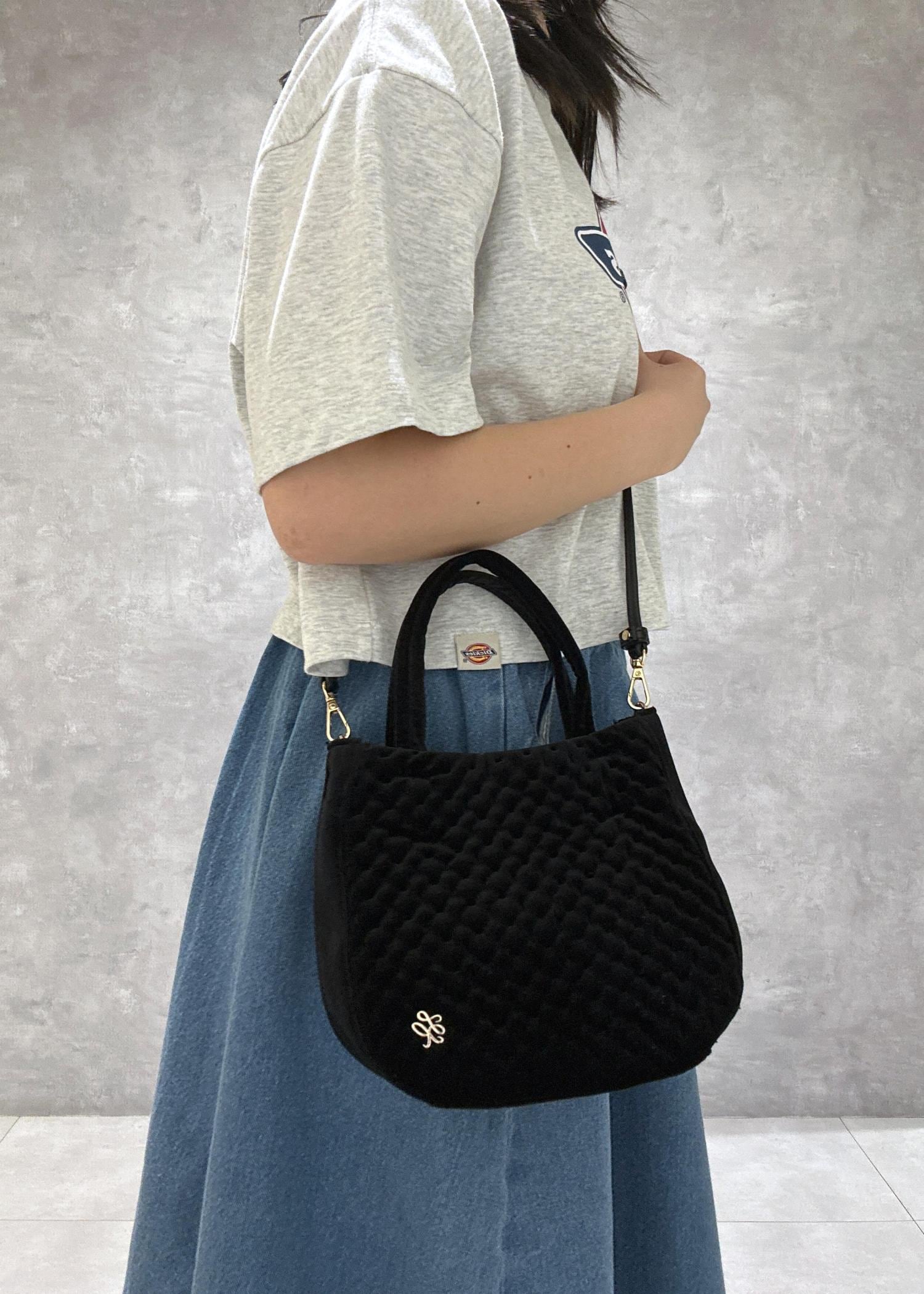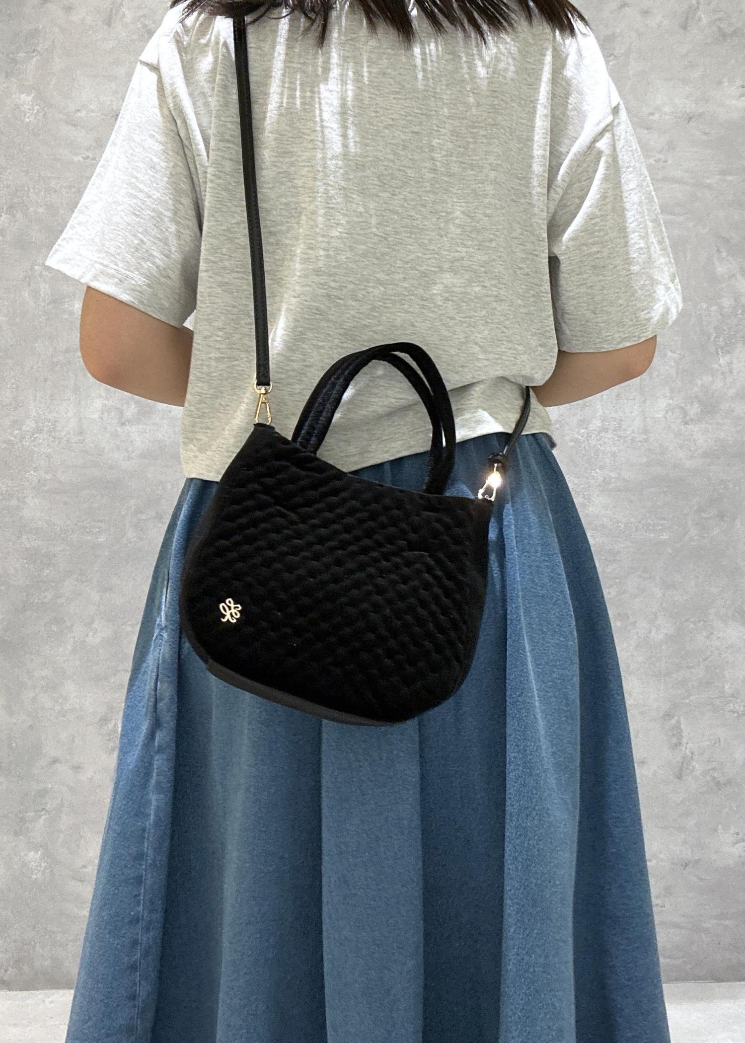 コンパクトなベロア素材のバックです。ショルダー付きです。