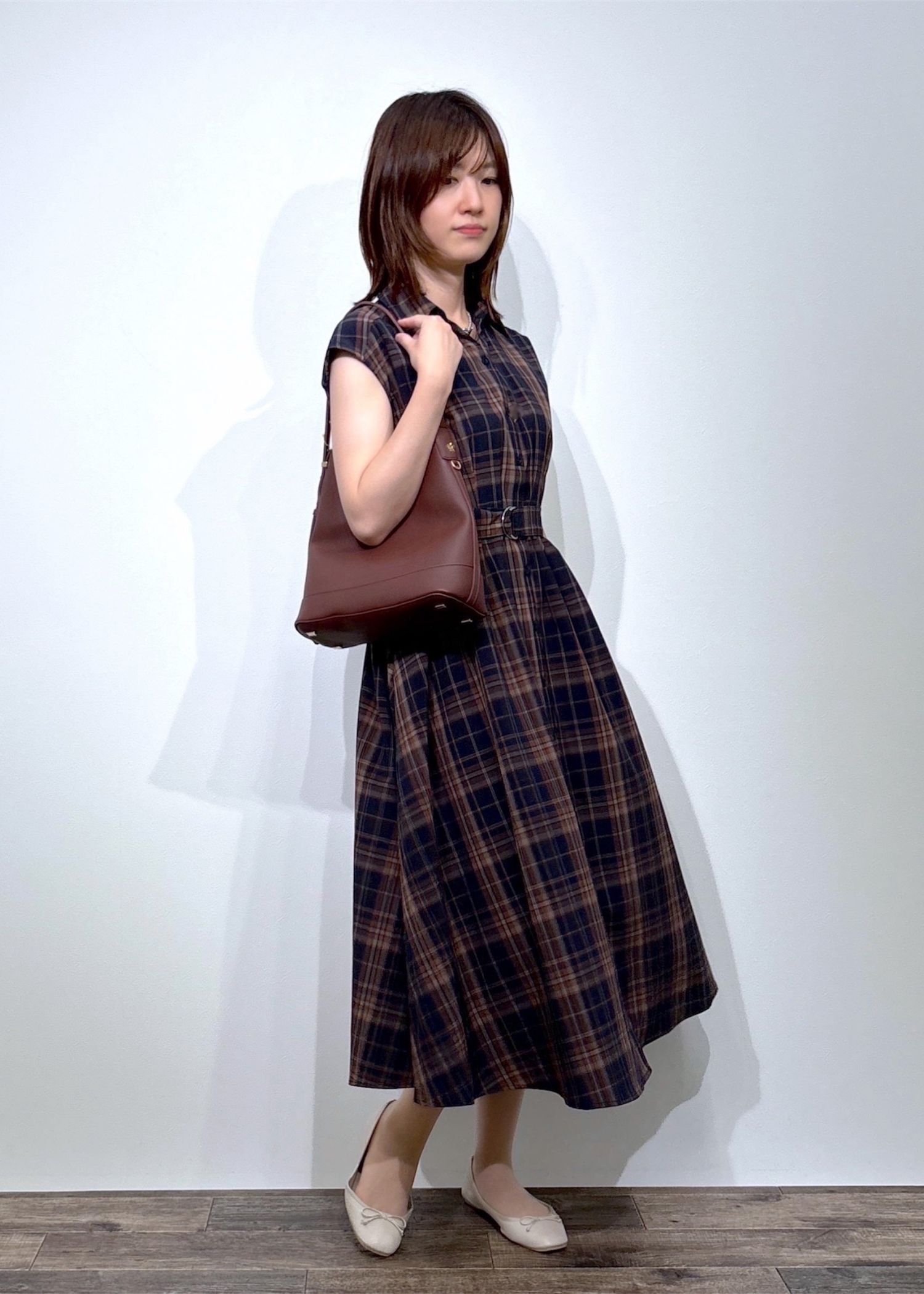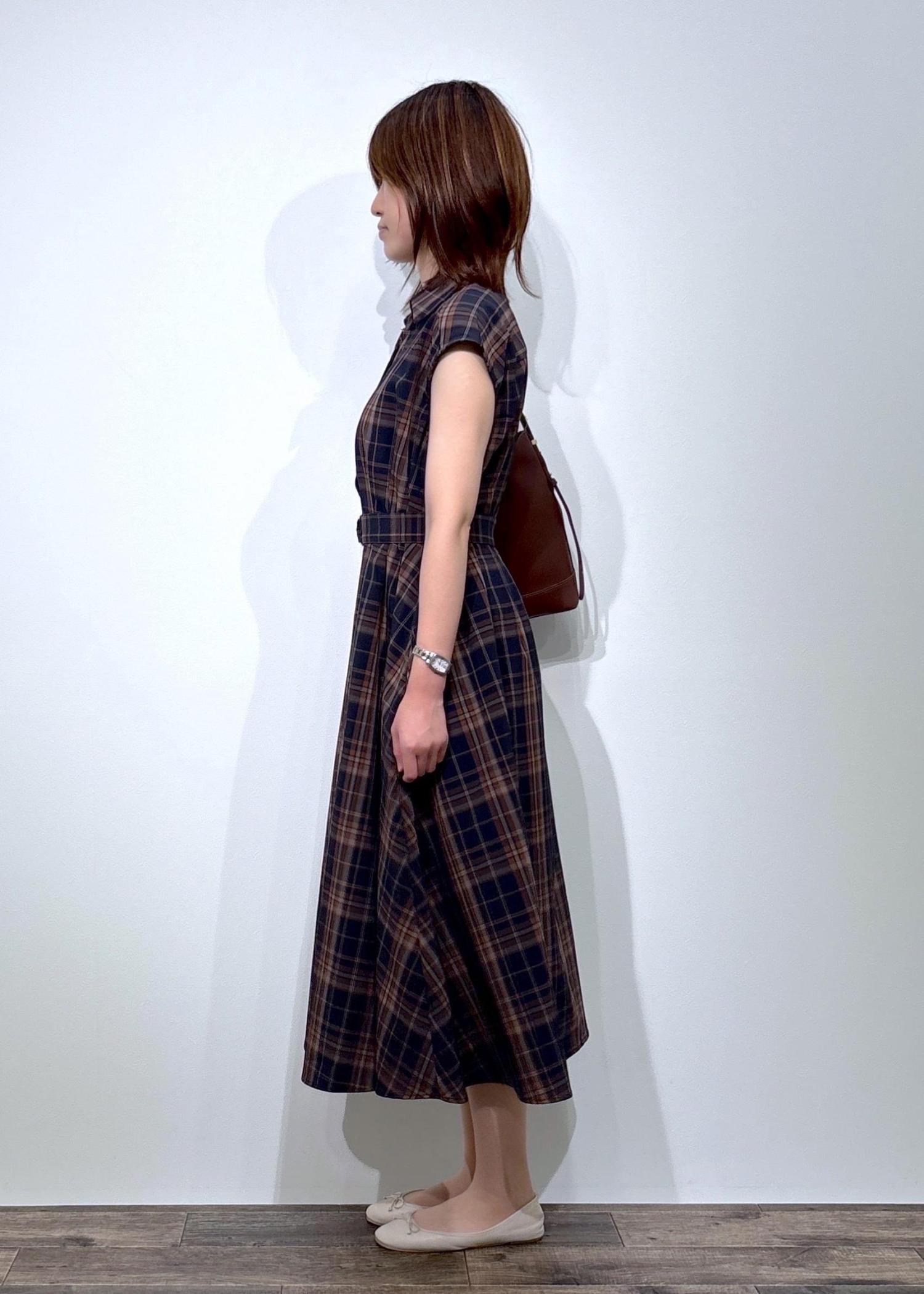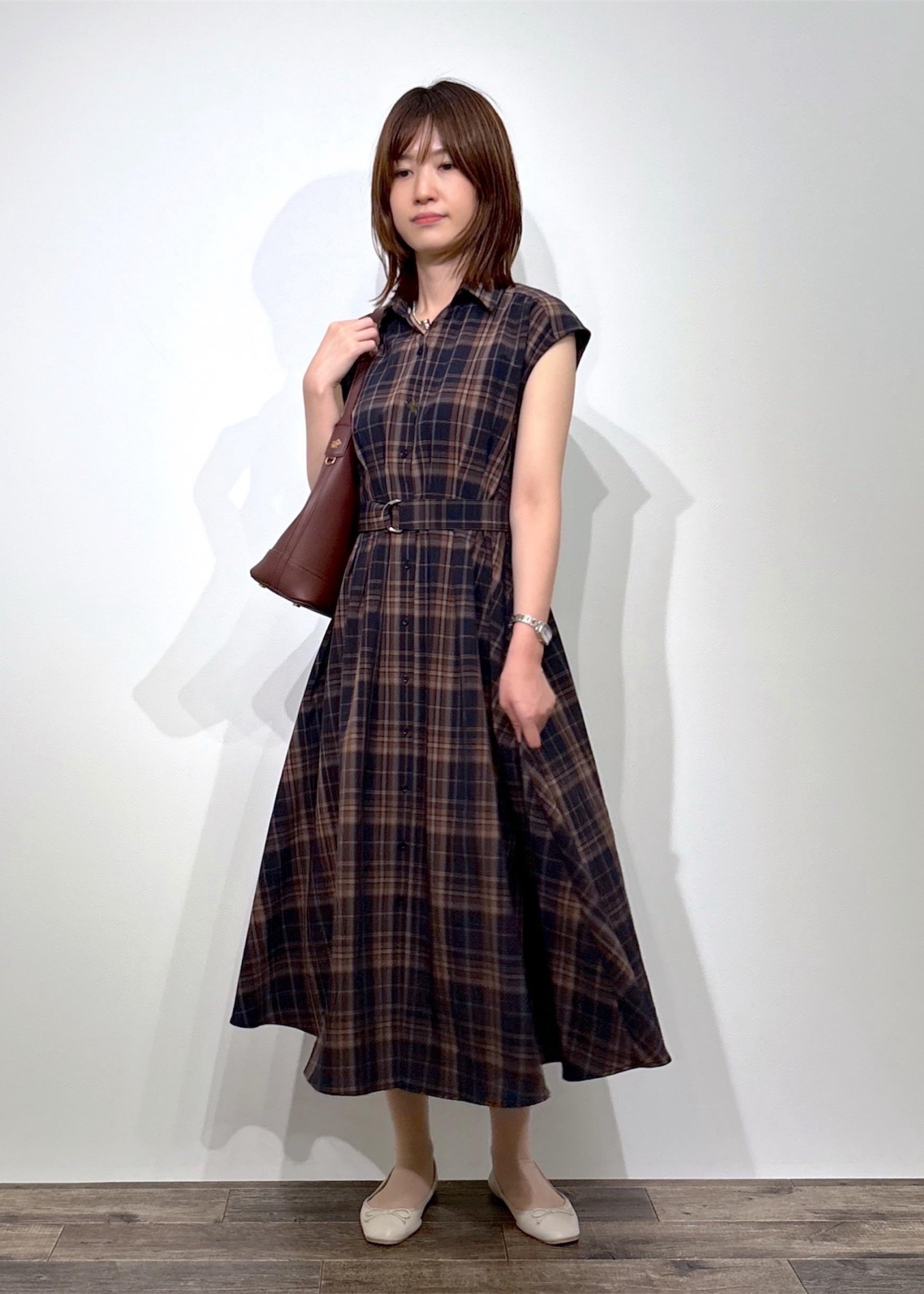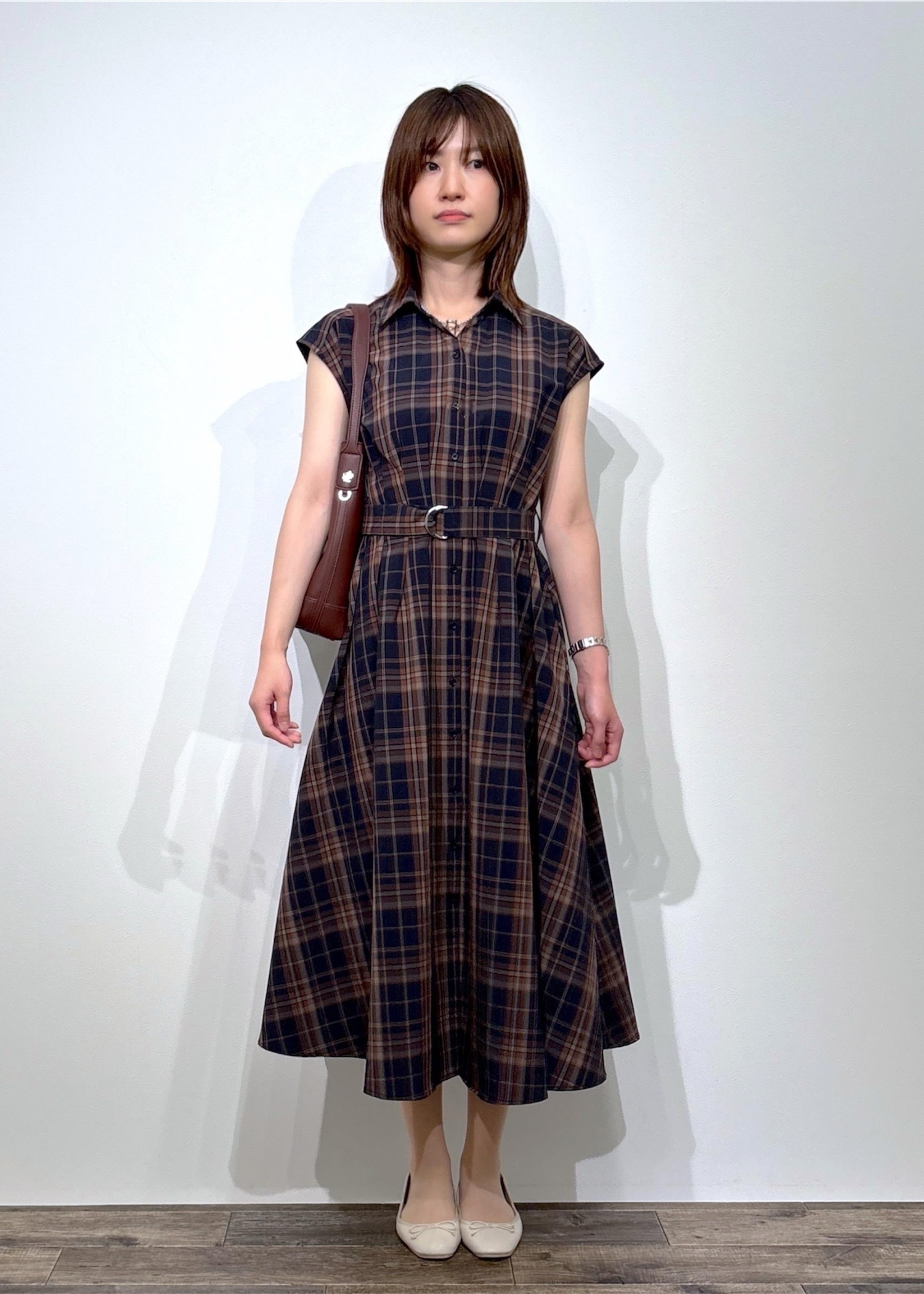 甘すぎないチェック柄が大人っぽく着用できる着映えワンピ。