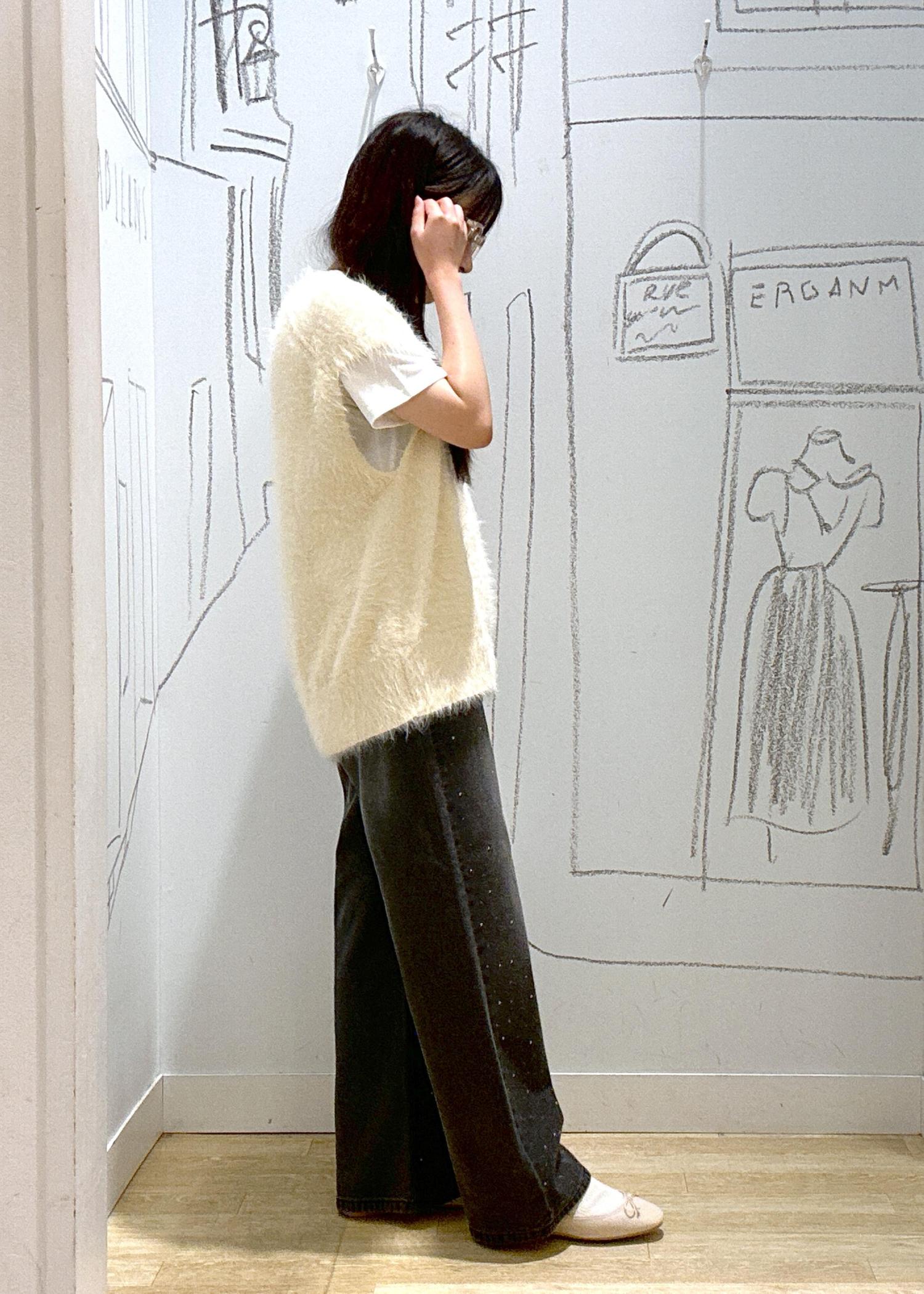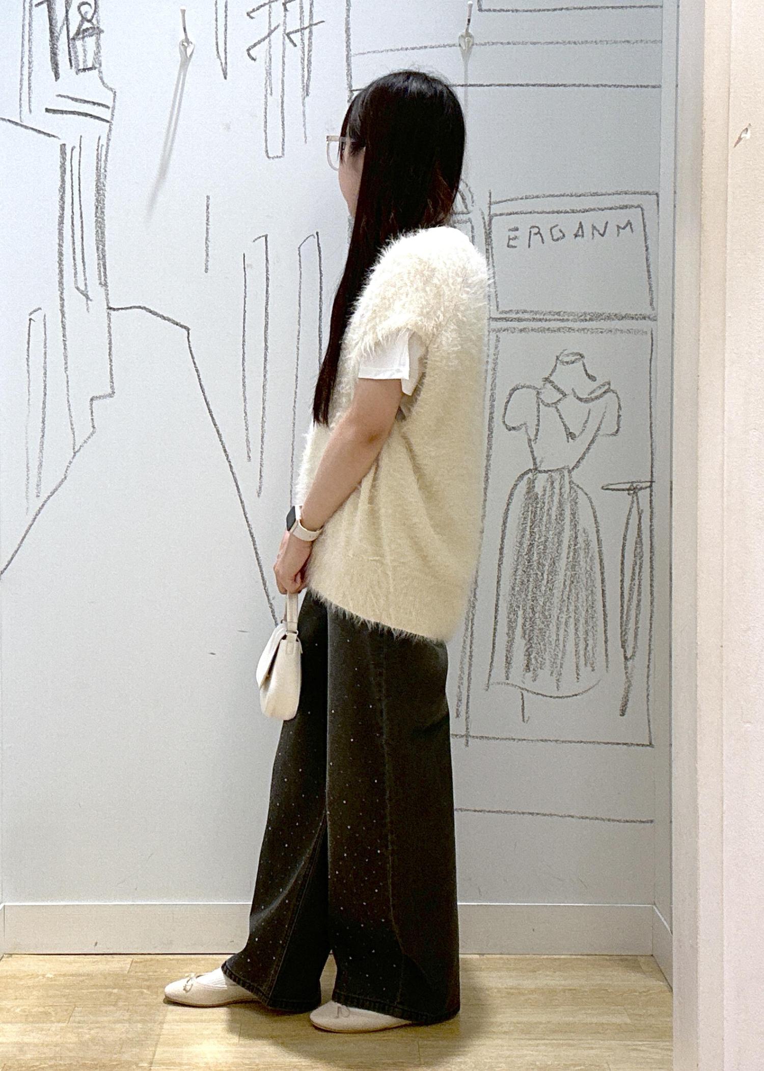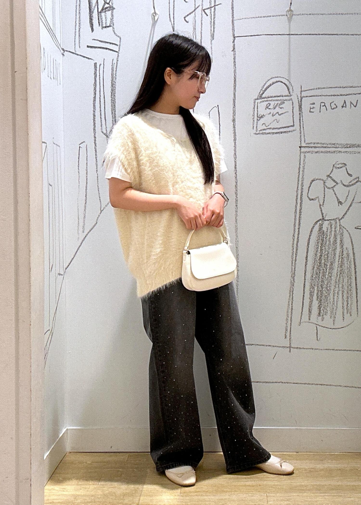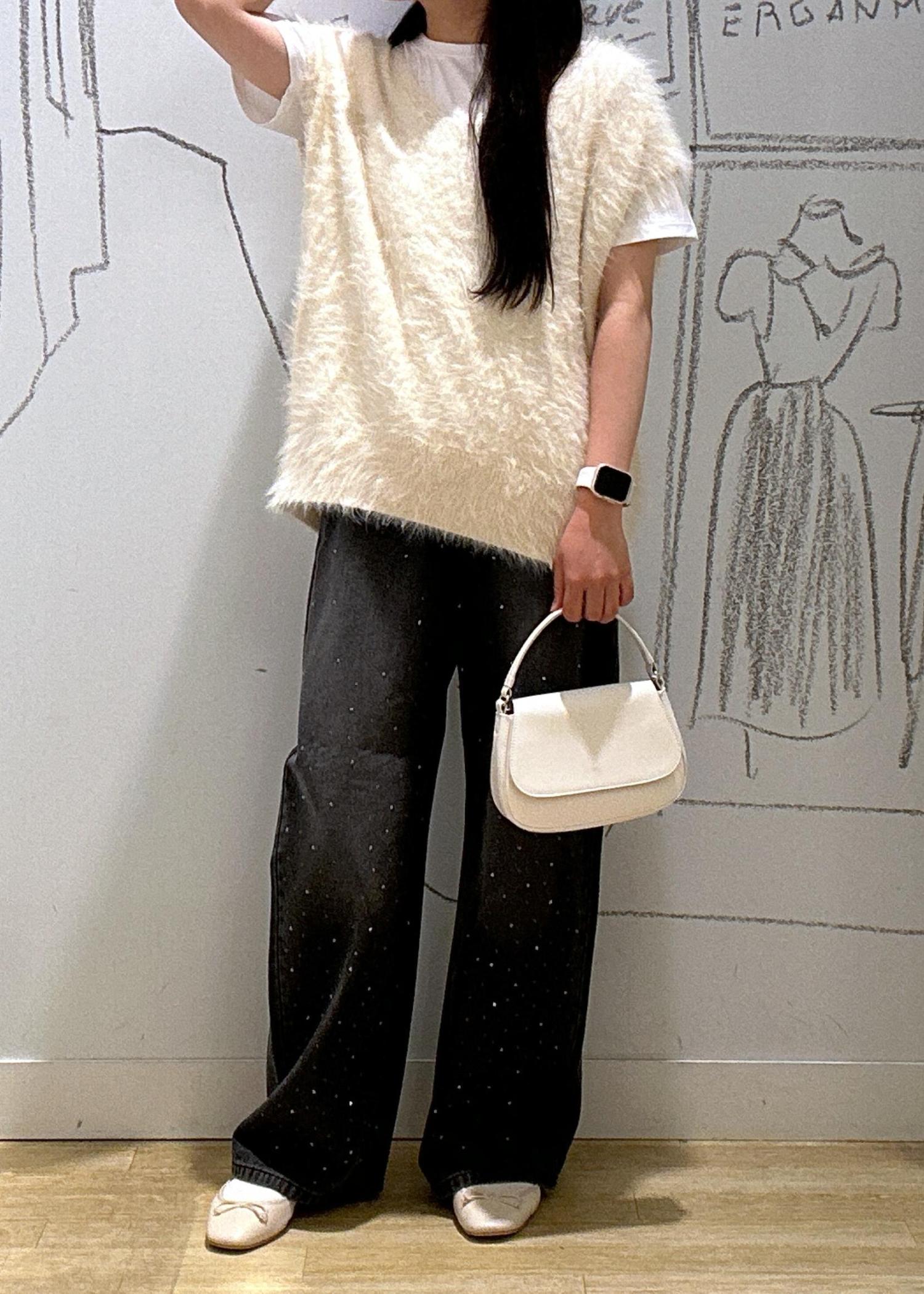 デニムはブラック、他を白でまとめて素材やデザインを引き立てる合わせにしました⟡