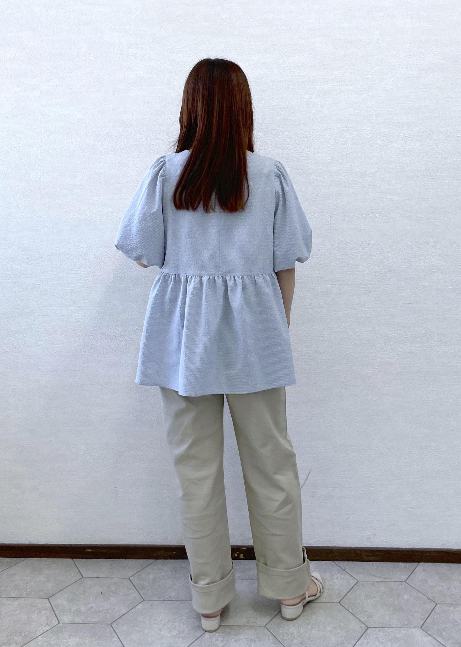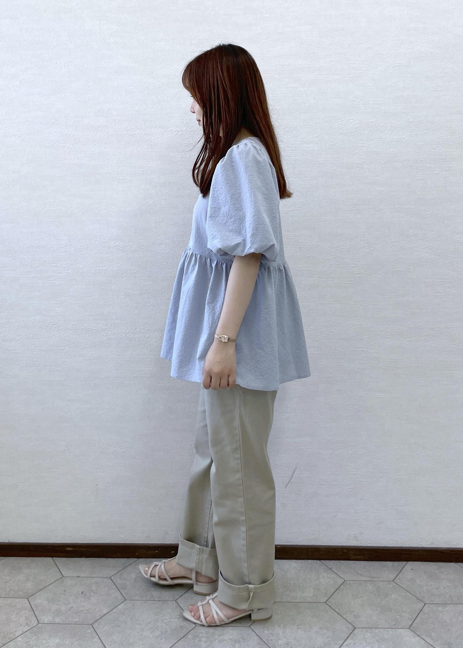 ROPÉ PICNICバルーンペプラムブラウスサックス / 38¥4,499レビュー袖の部分がふんわりしていますが、中の生地がメッシュになっているのでさらっとしていて涼しいです!