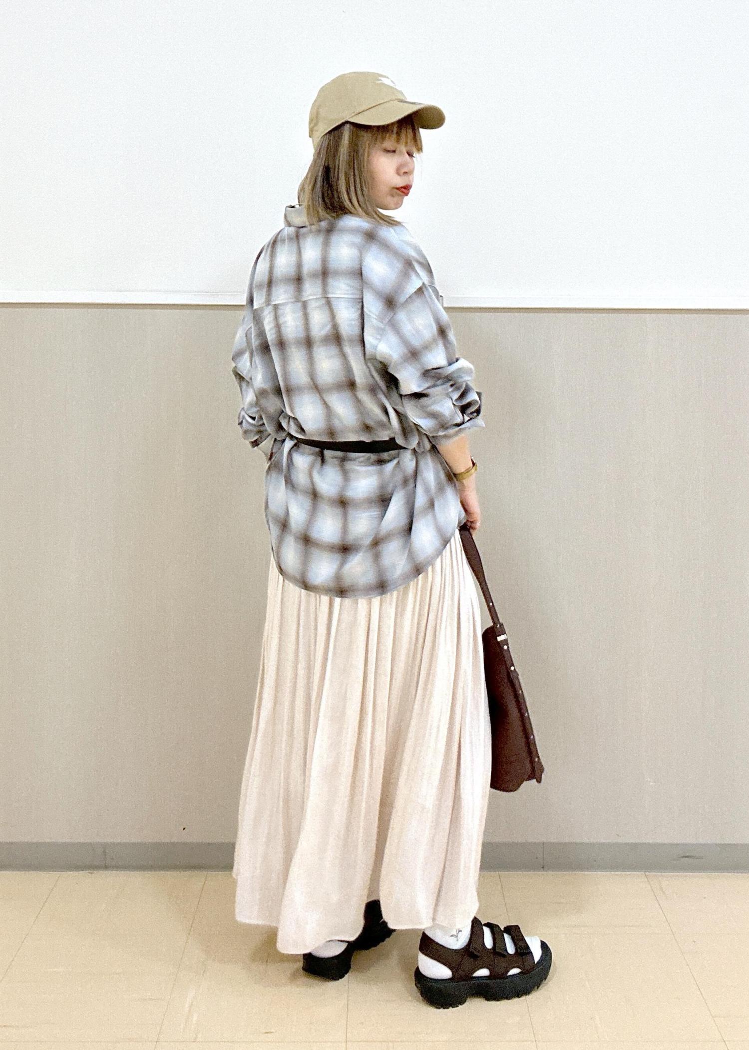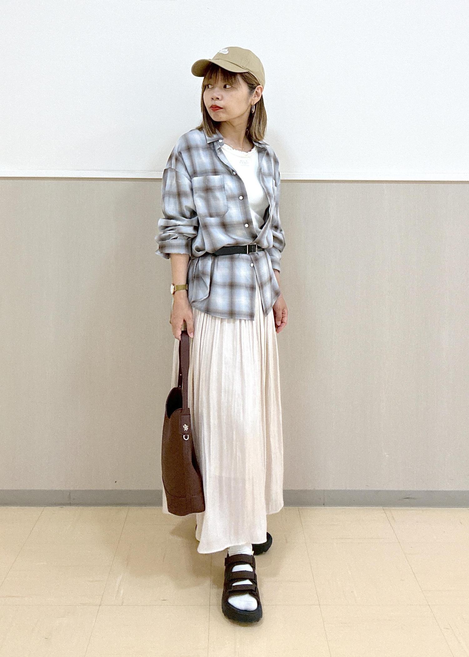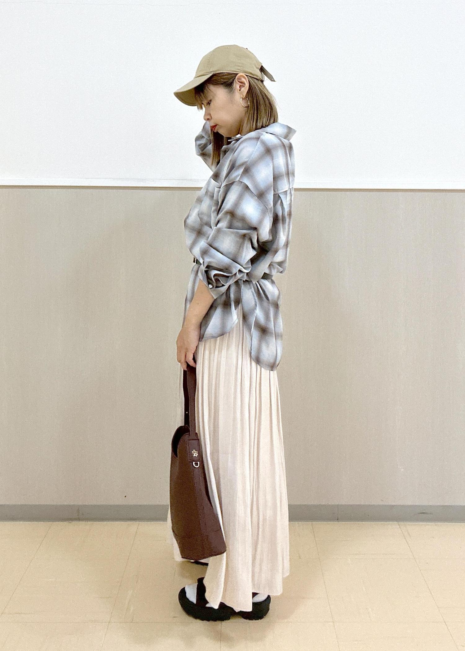 チェックシャツのスカートスタイル