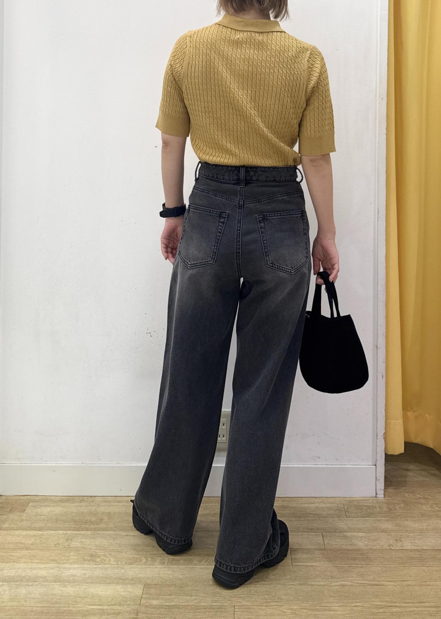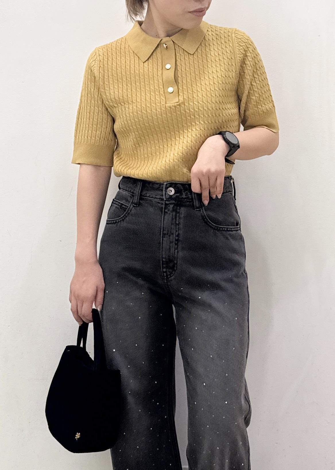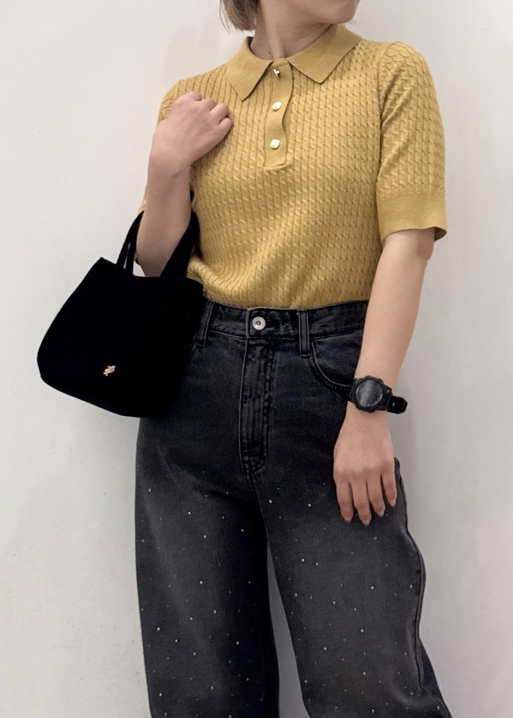 ケーブル編みが可愛いポロニットをデニムにイン♪