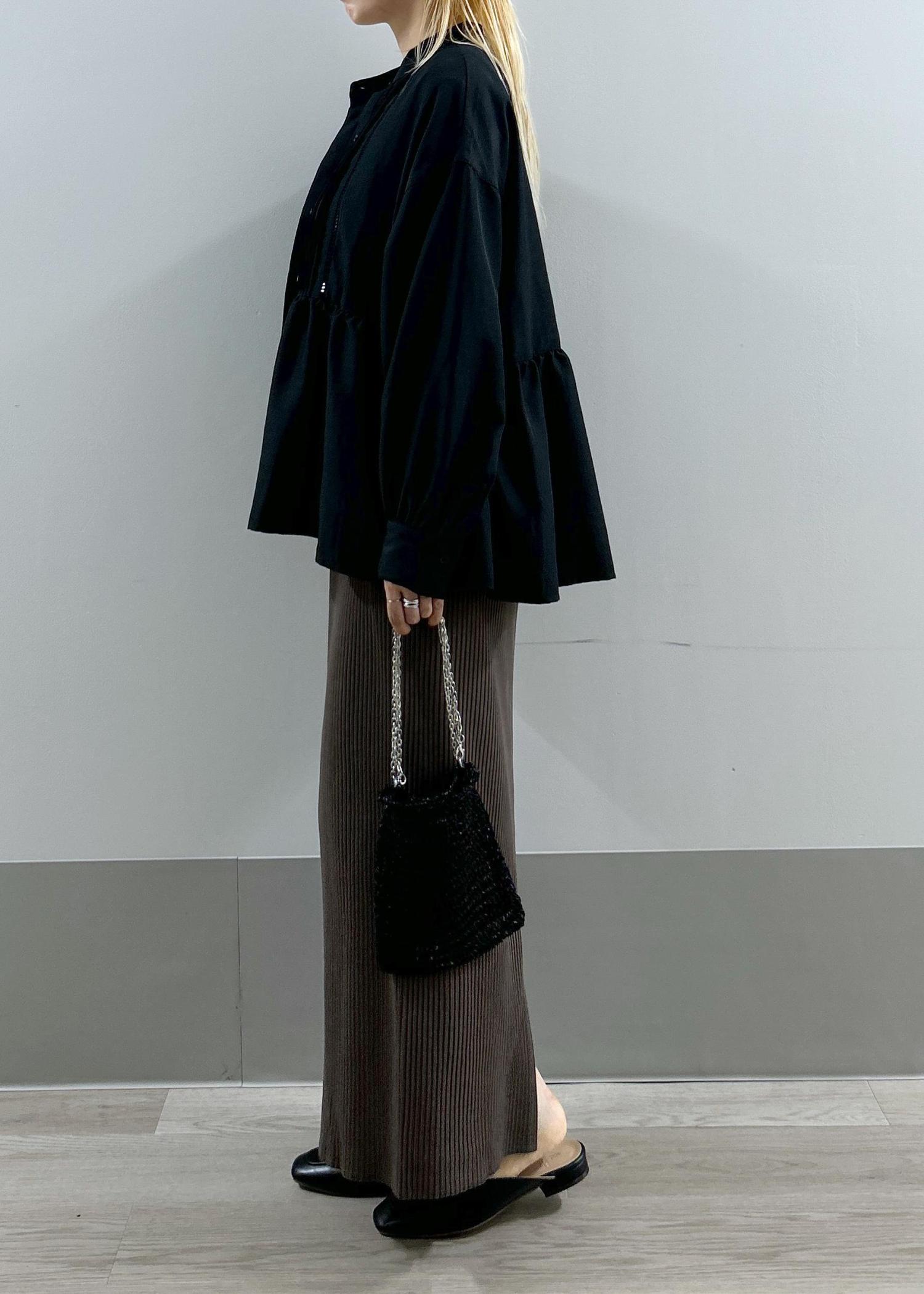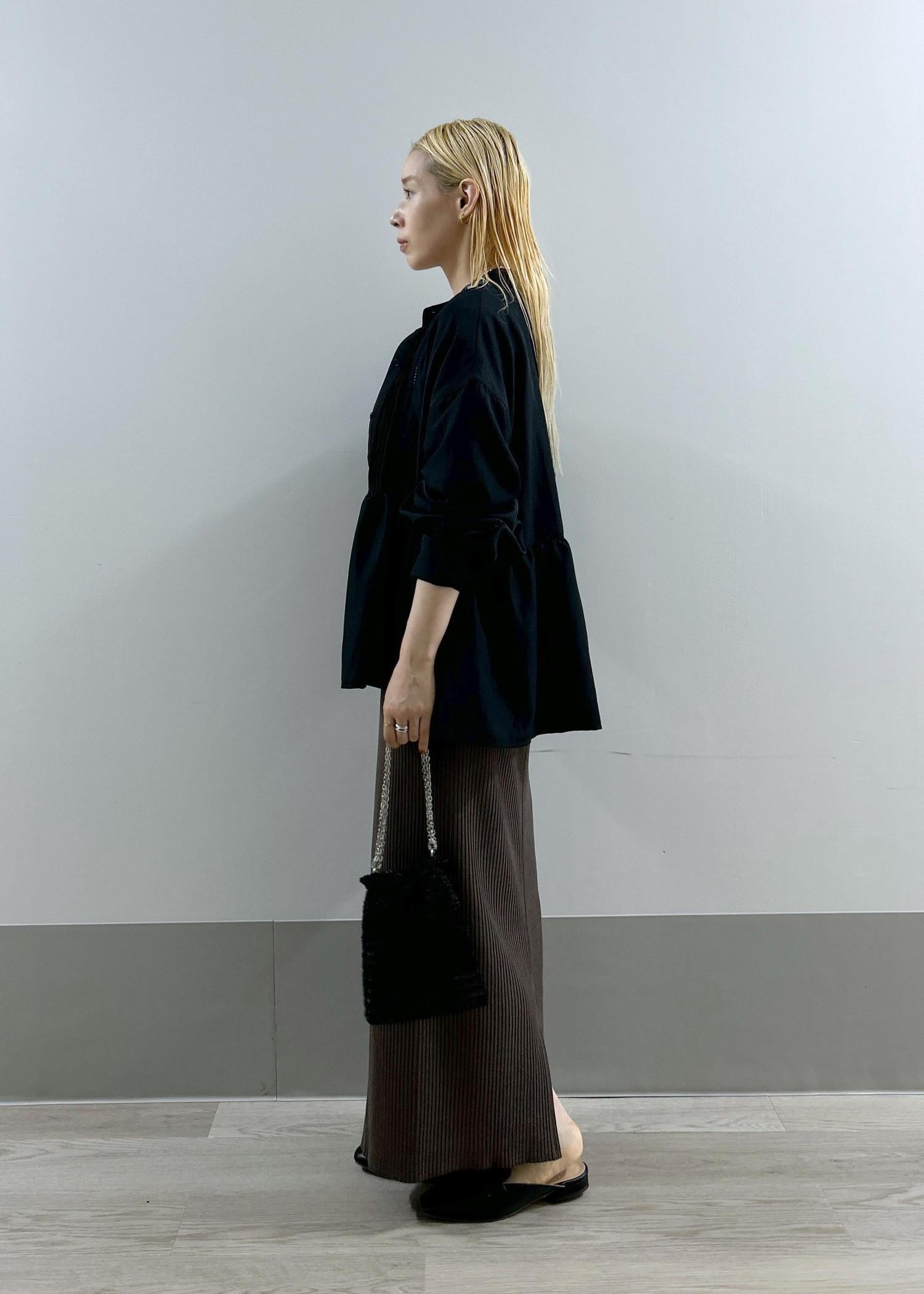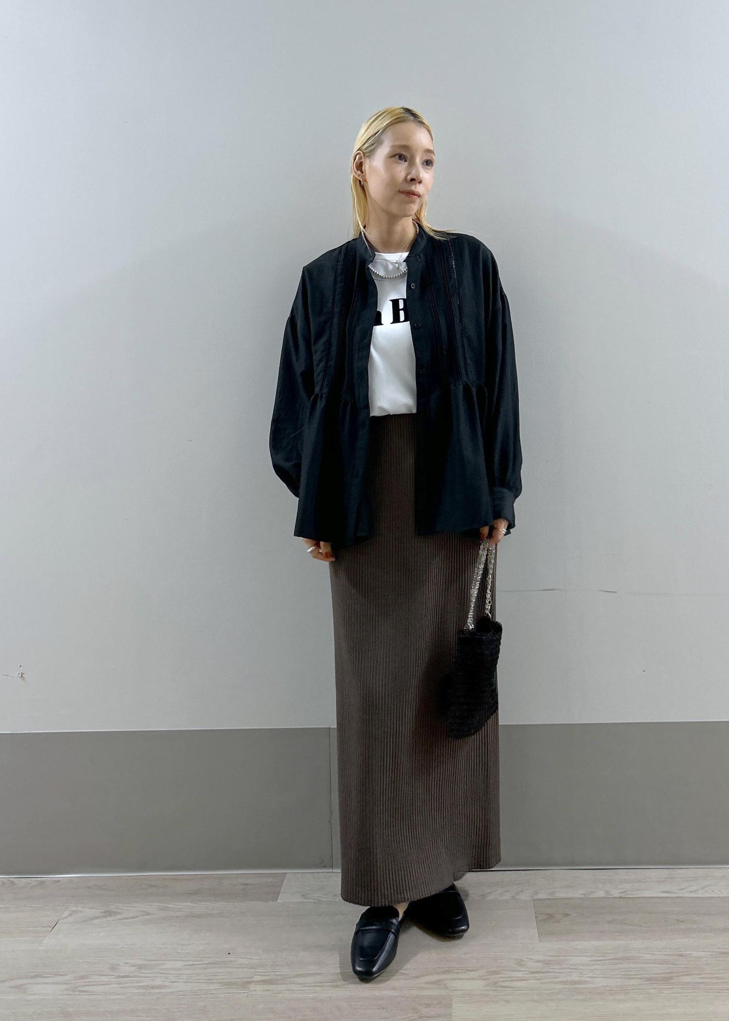 ブラックで重たくなりすぎないよう、袖をまくり、インナーに白を合わせ、抜け感を出しました。