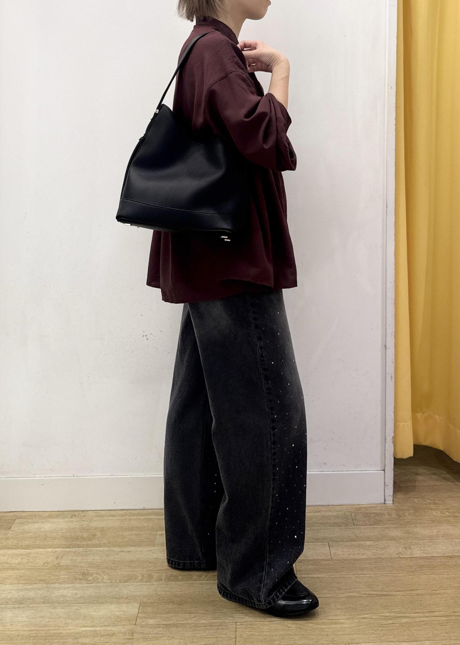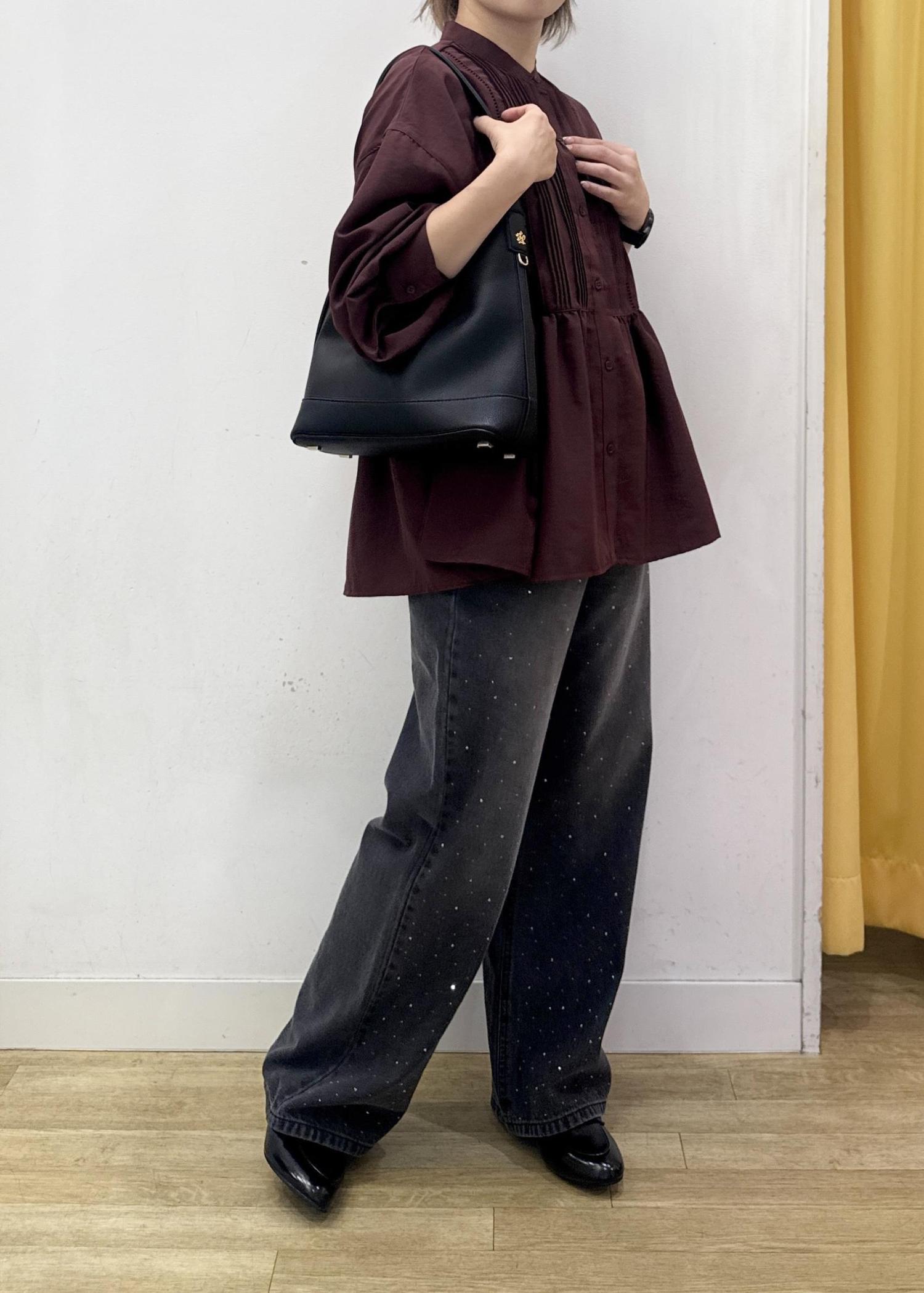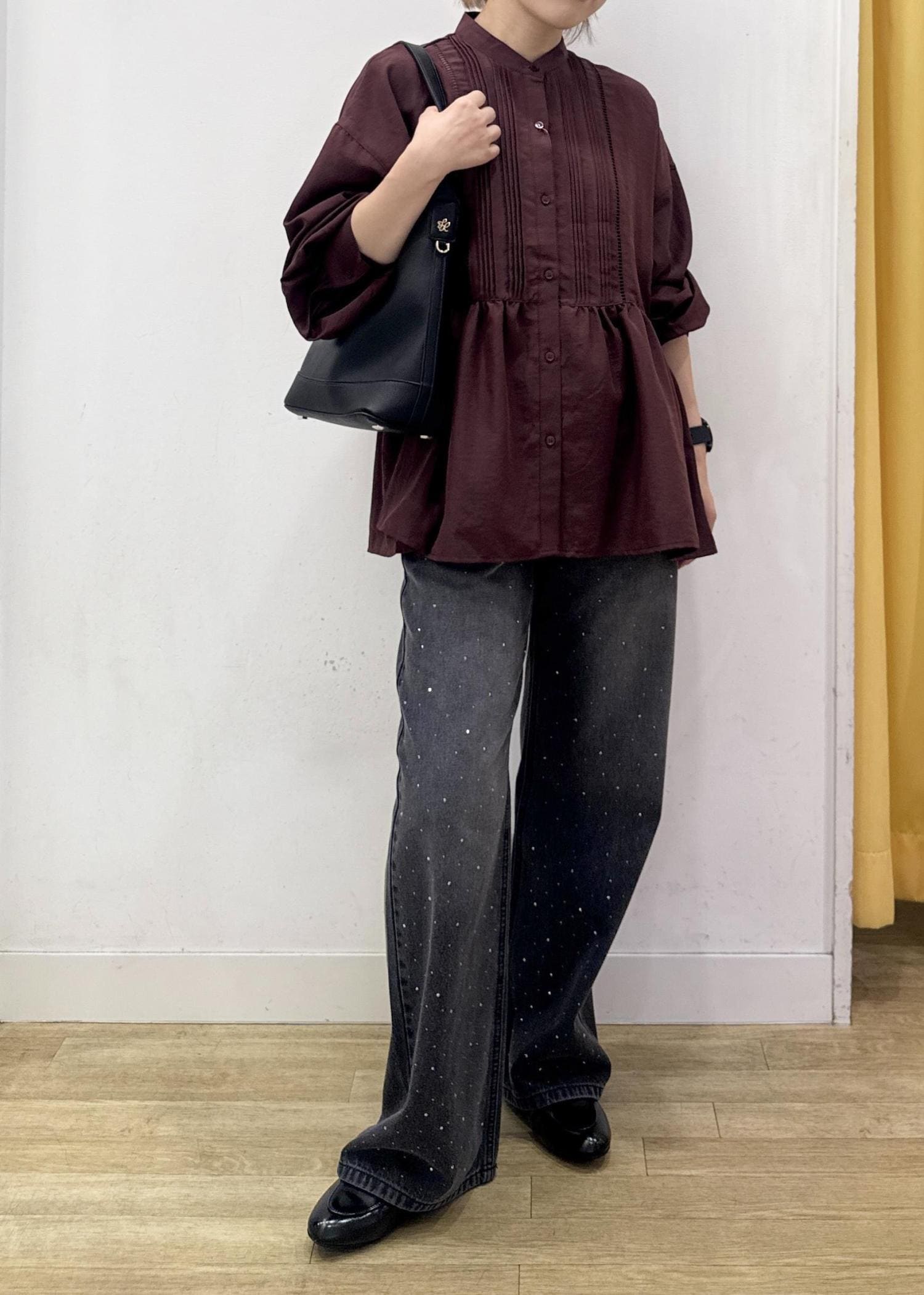 ビジューデザインがオシャレなブラックデニムと合わせて、シックな秋コーディネートに☺︎