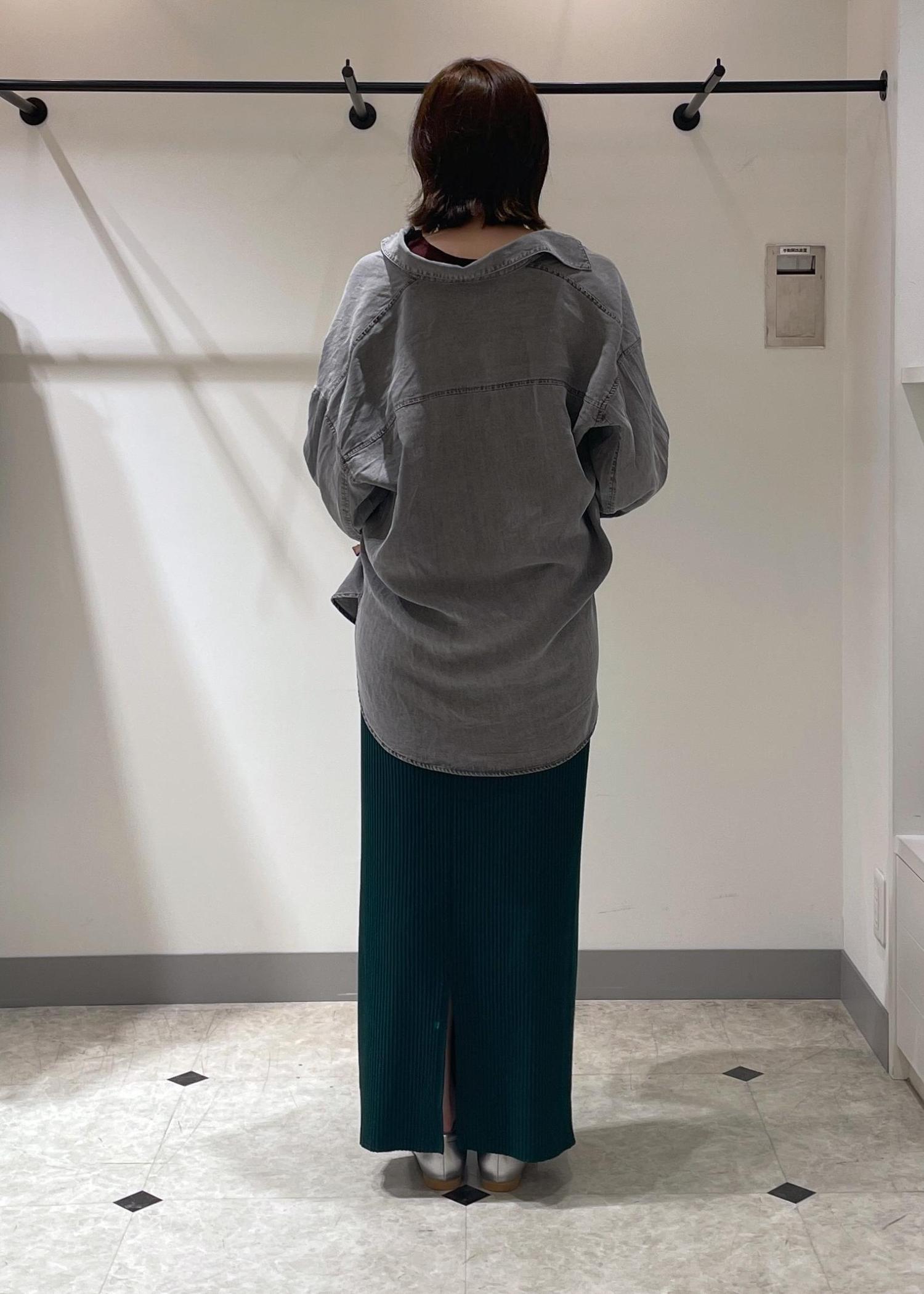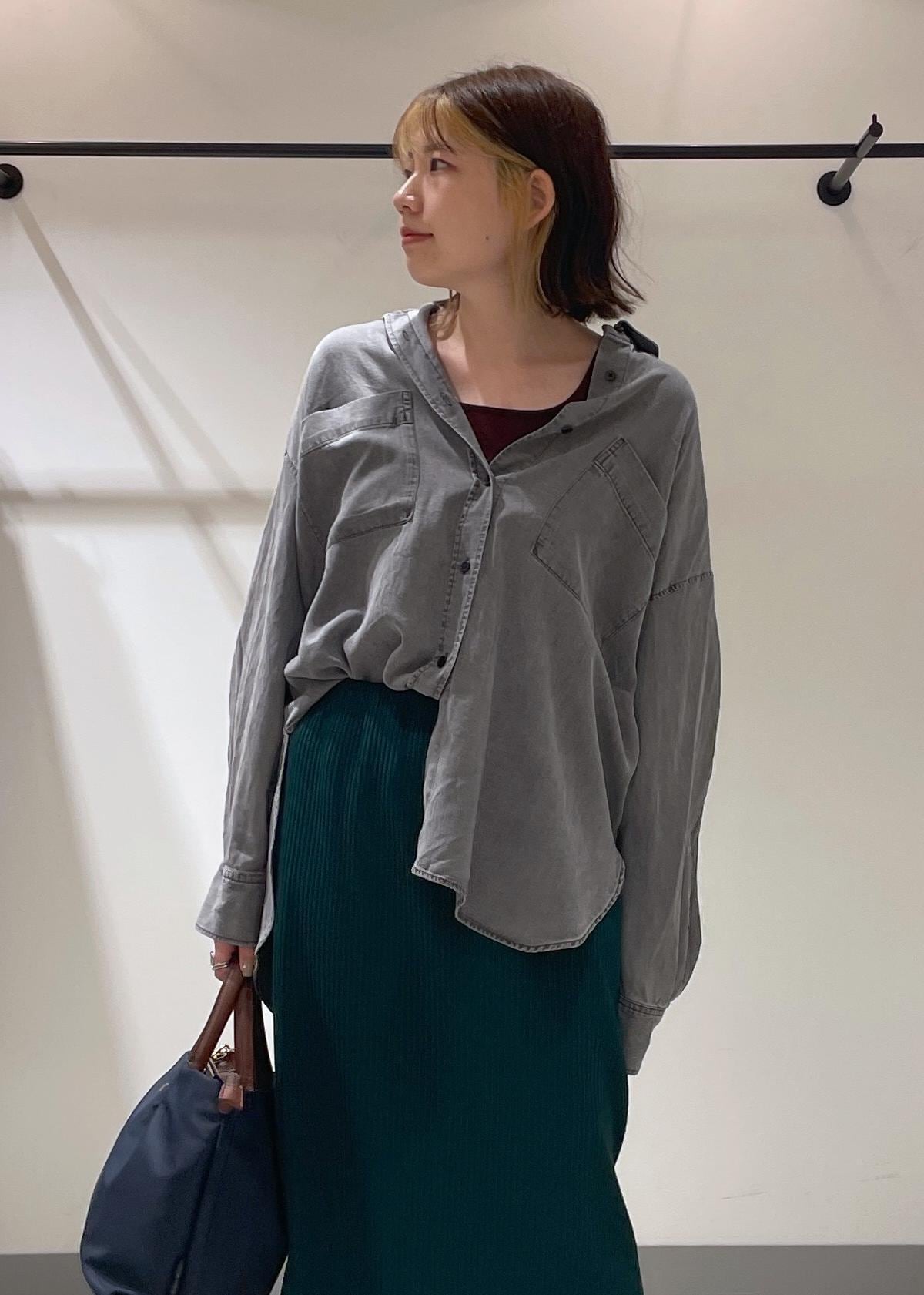 今回は、ゆったりとしたシャツ×アイラインスカートでメリハリのあるコーディネートを組みました◎