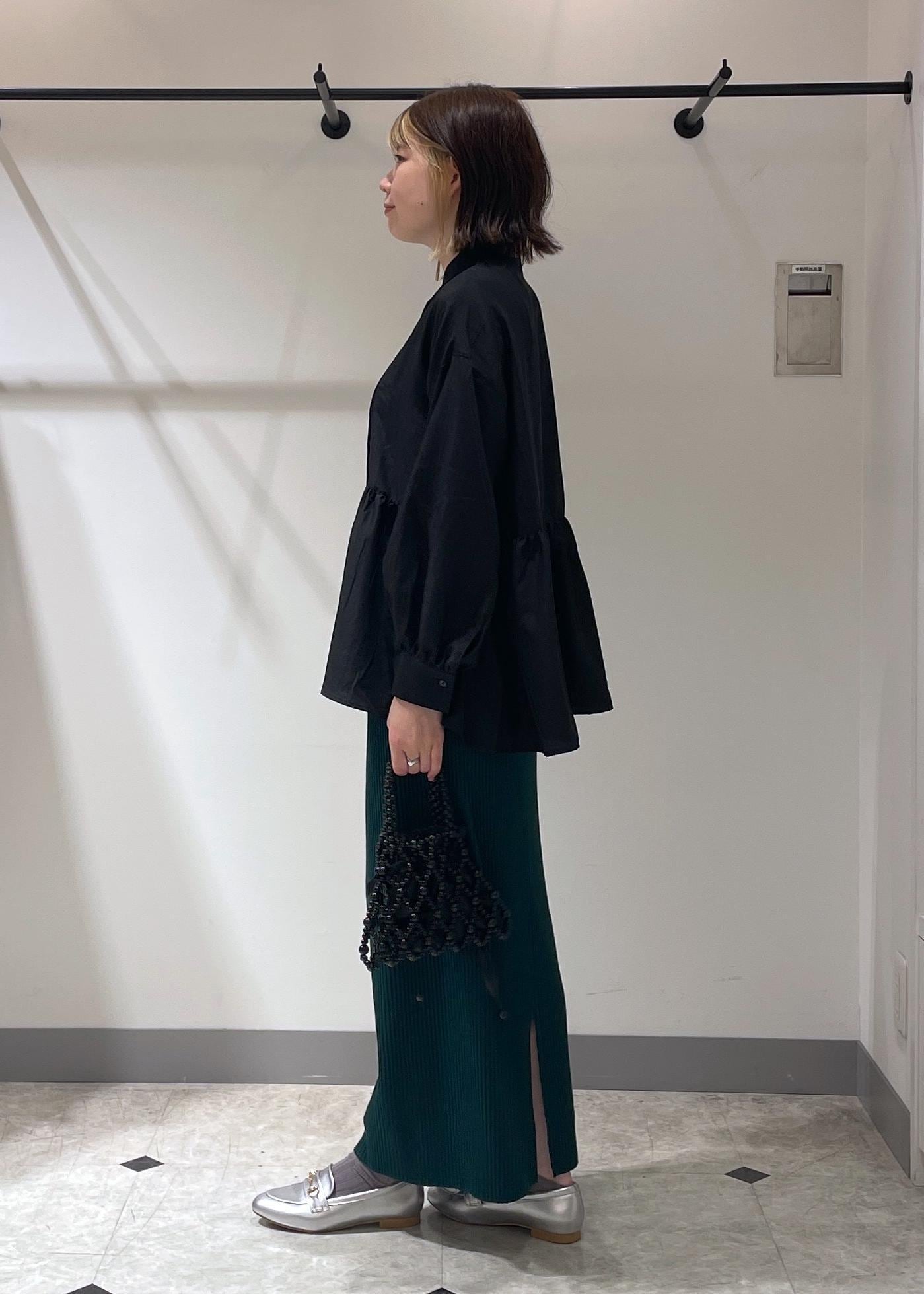 今回は、ペプラムシャツでゆったり×アイラインスカートでタイトにメリハリのあるコーディネートです♩
