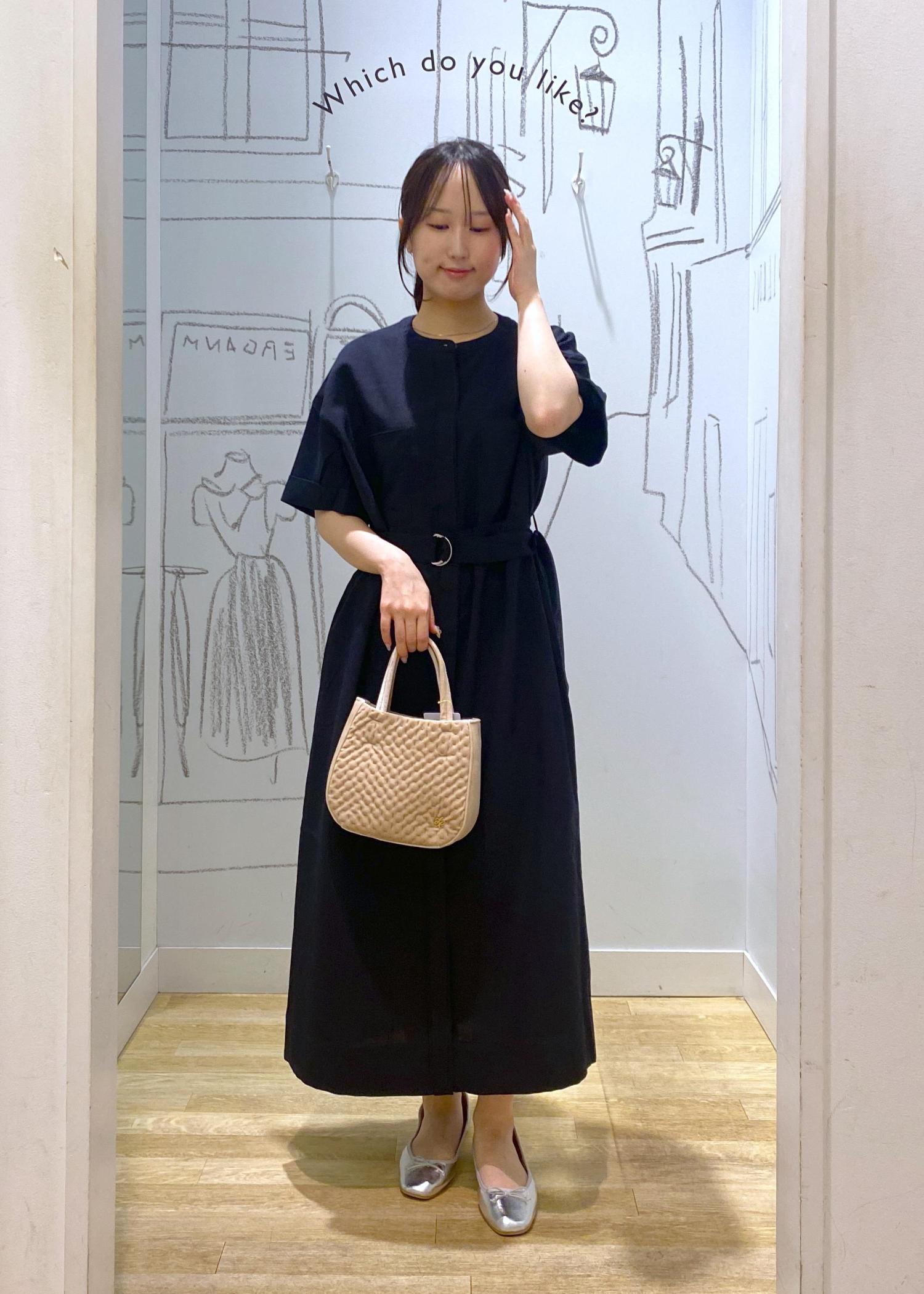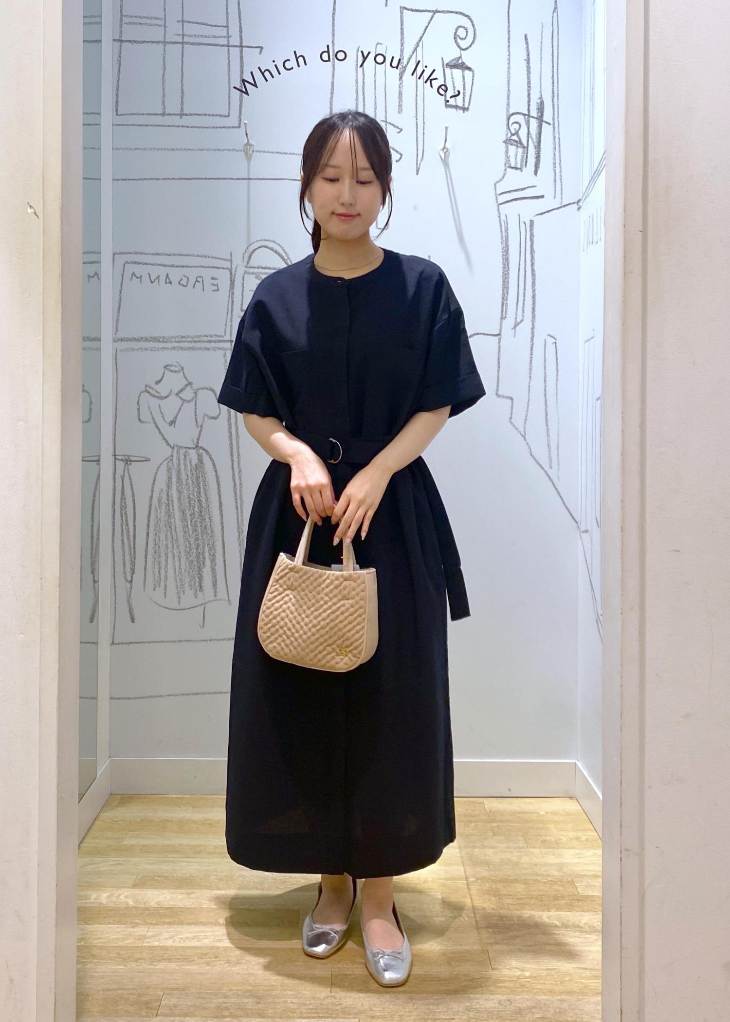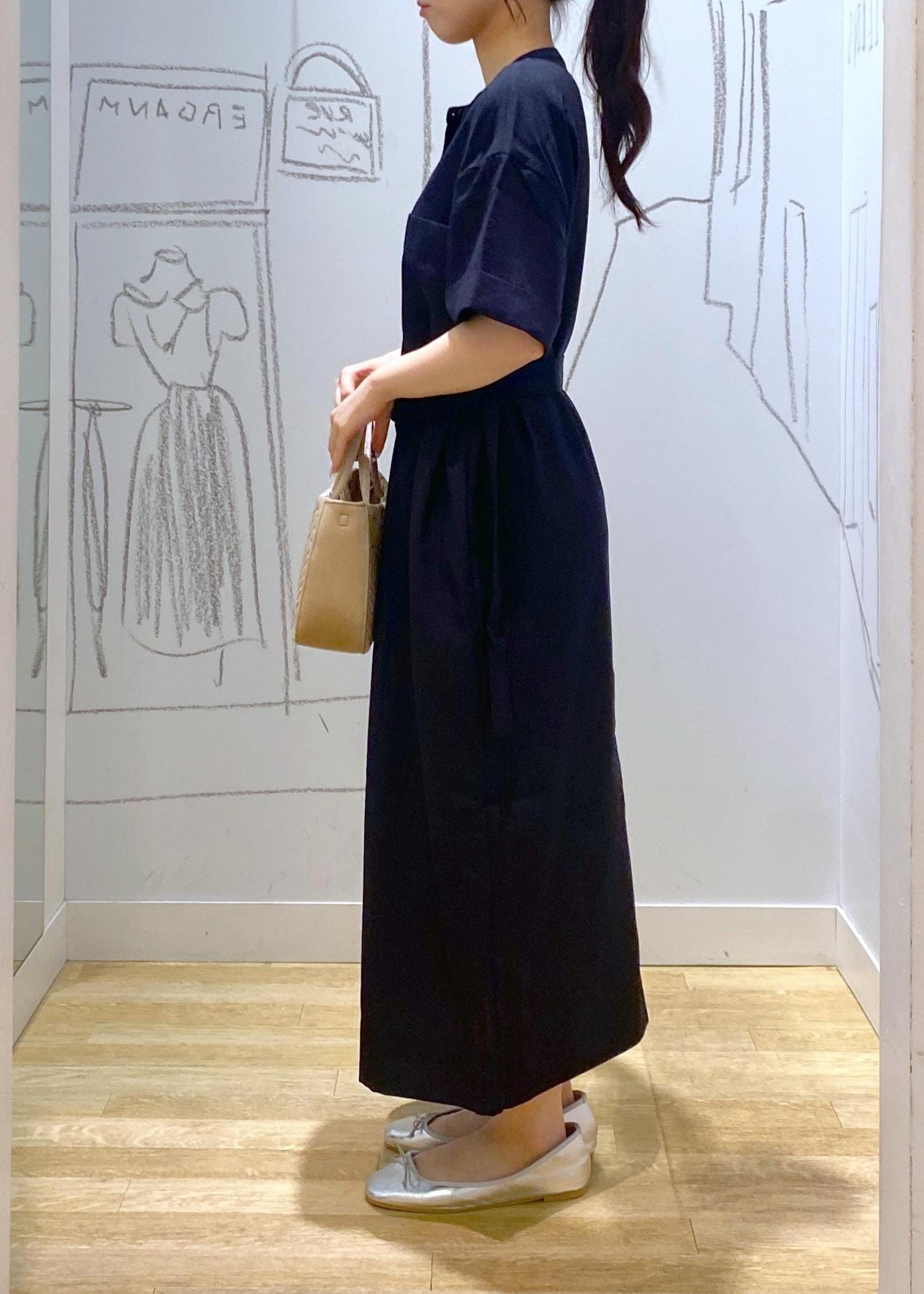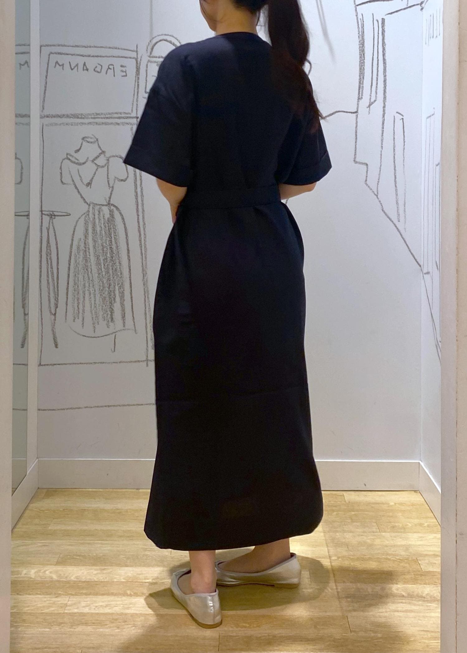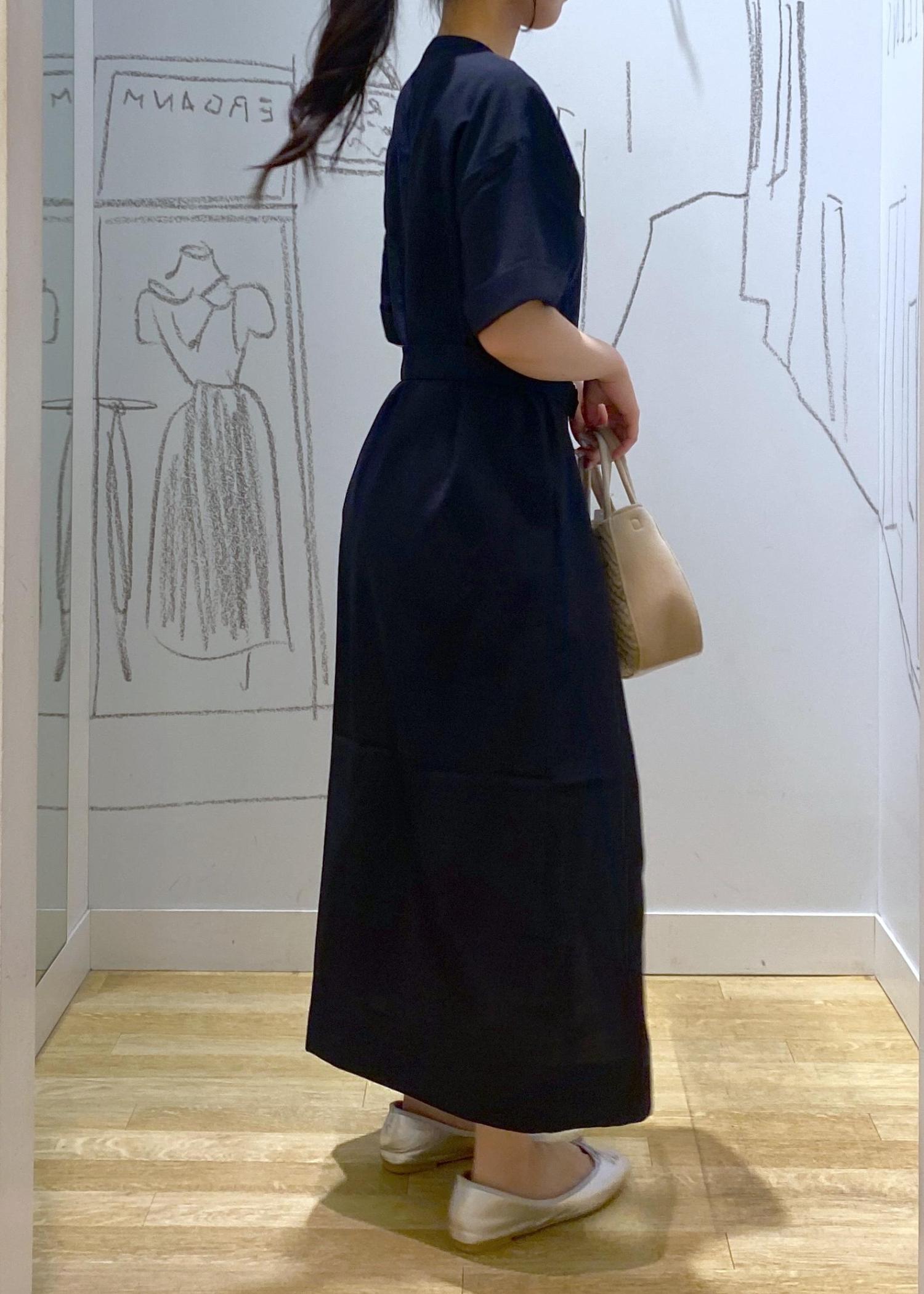 シンプルなネイビーのワンピースは普段使いにも、フォーマルな場面でもお使いいただけます。フォーマルな場面では小さなバックやパールのネックレス合わせがおすすめです。