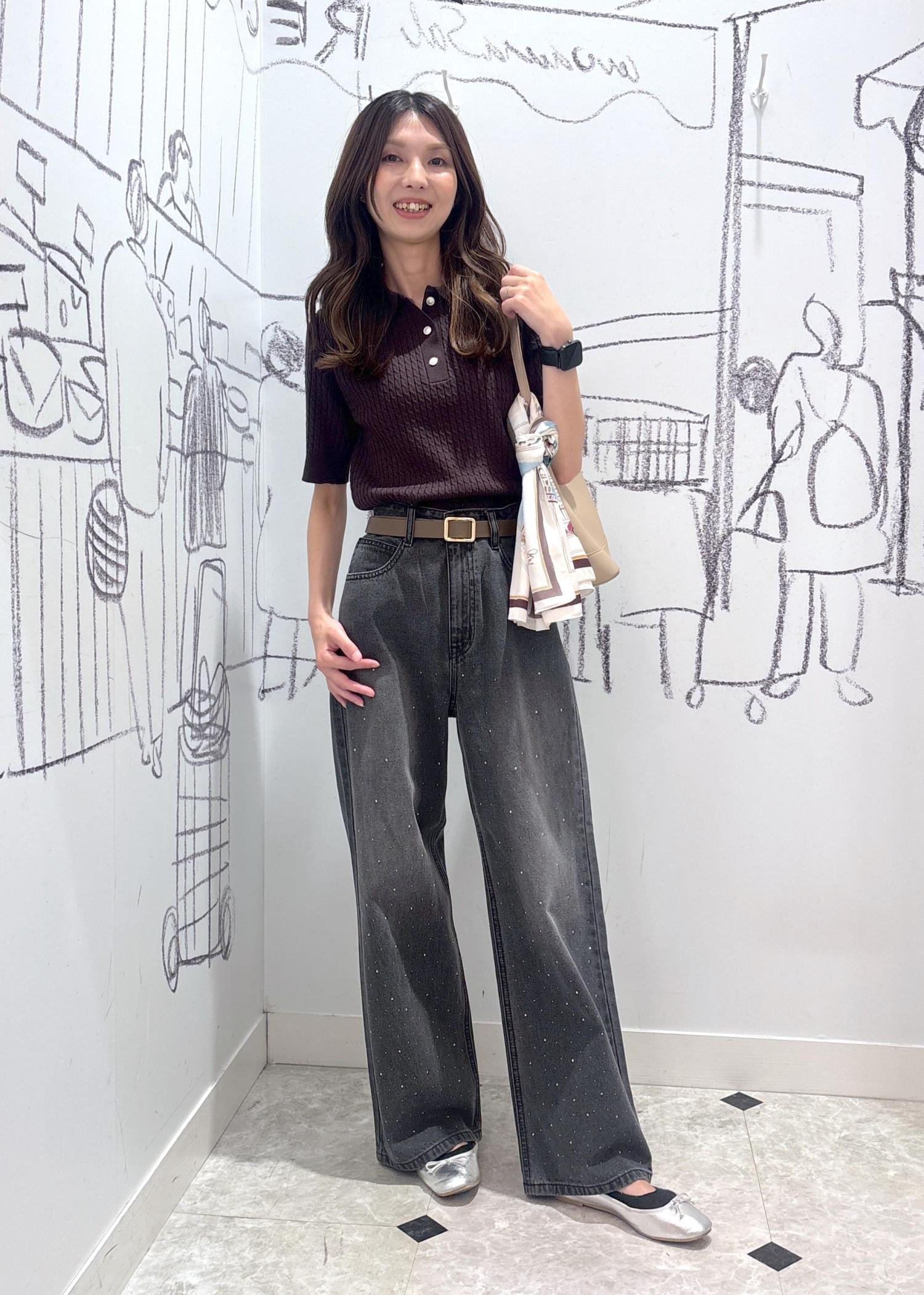 秋らしいブラウンとブラックデニムで合わせたカジュアルなコーディネートです。
