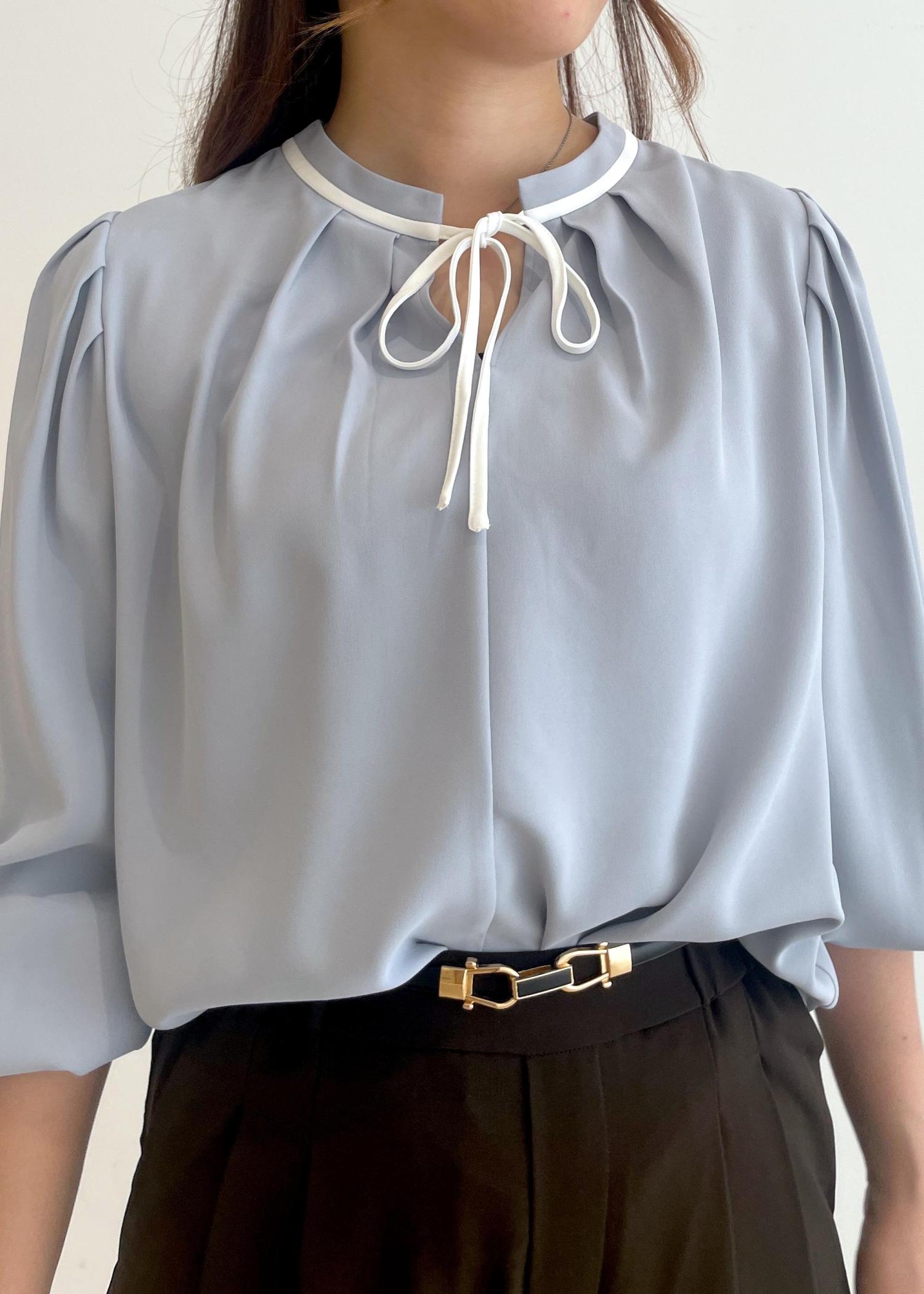 ROPÉ PICNIC【前後2WAY】【WEB限定カラー】配色リボンブラウス/通勤対応サックス / S¥3,993レビュー前後2wayで着れる長袖ブラウスです!