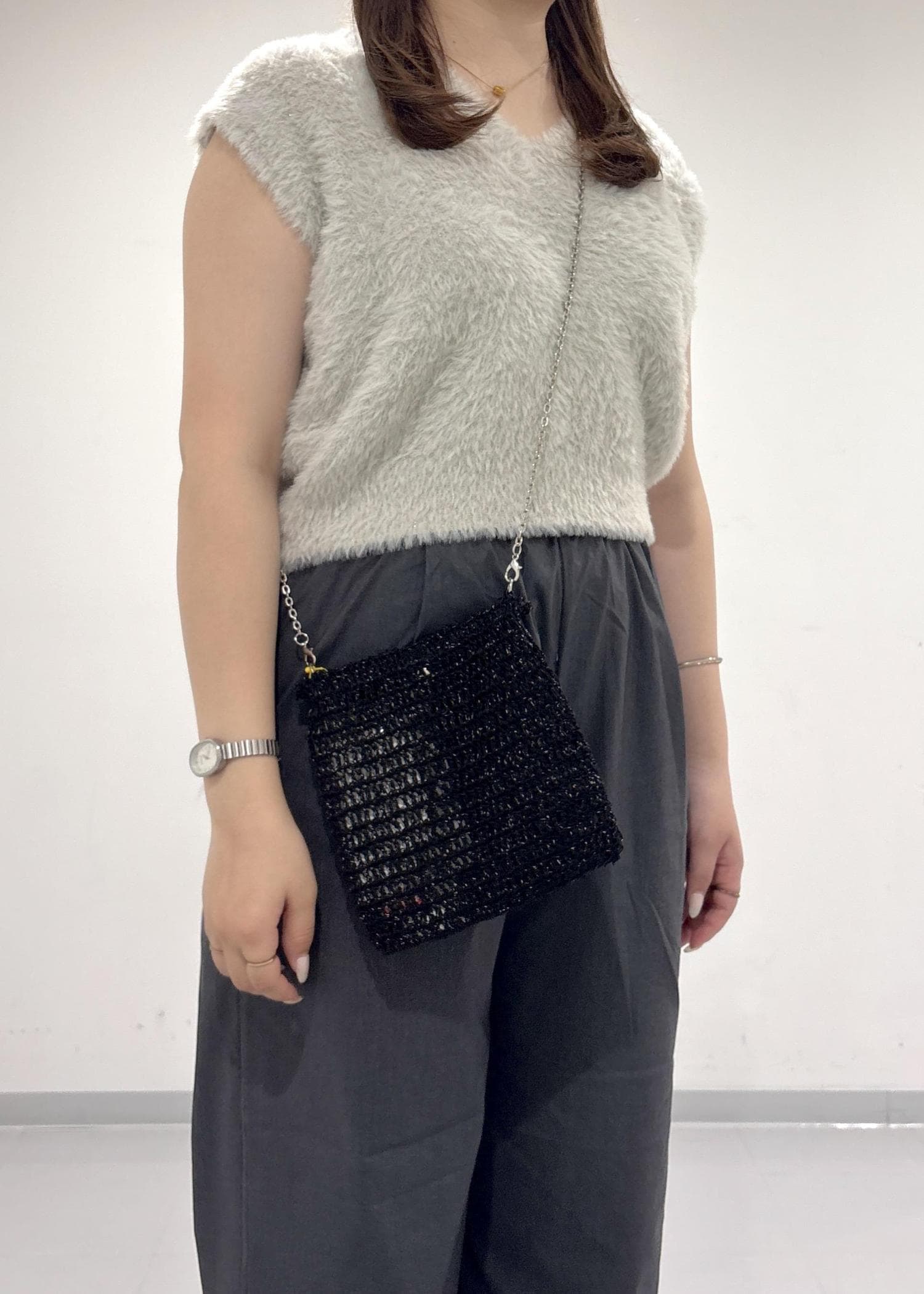 さりげないラメが入っておりキラキラかわいいバッグでコーデのアクセントにもなります⭐︎ショルダーとしてもチェーンを短く持ってハンドバッグとしても使えます◎