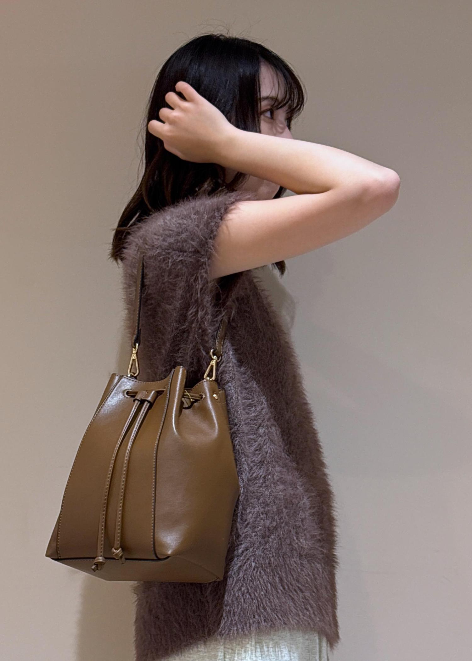 敢えてブラウンのバッグを選ぶとより統一感がでます。