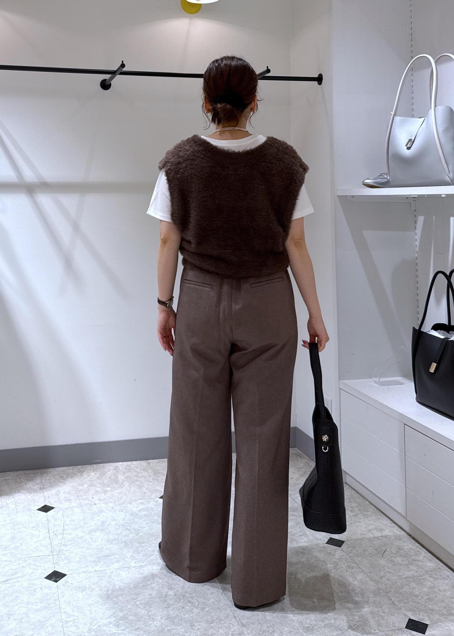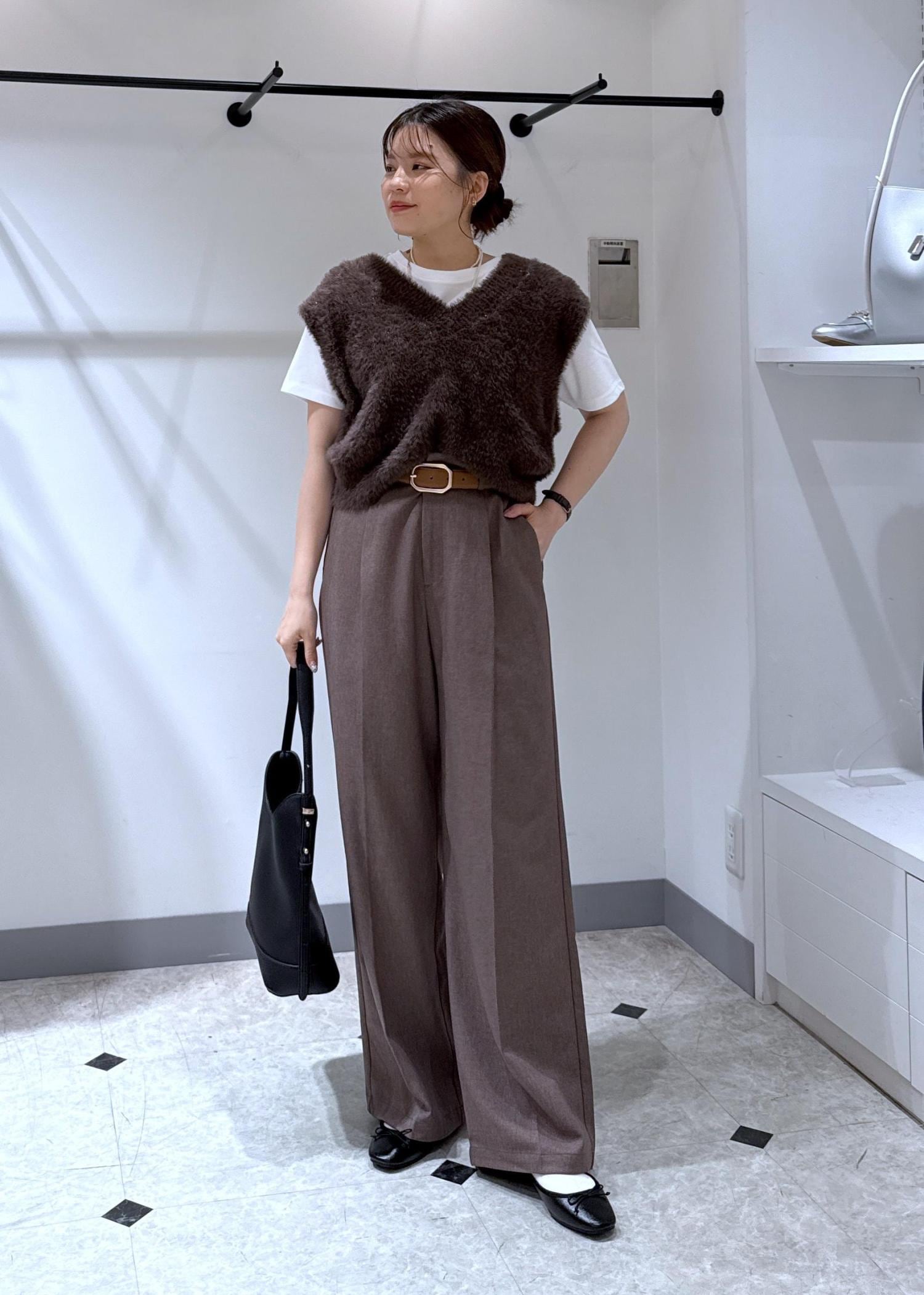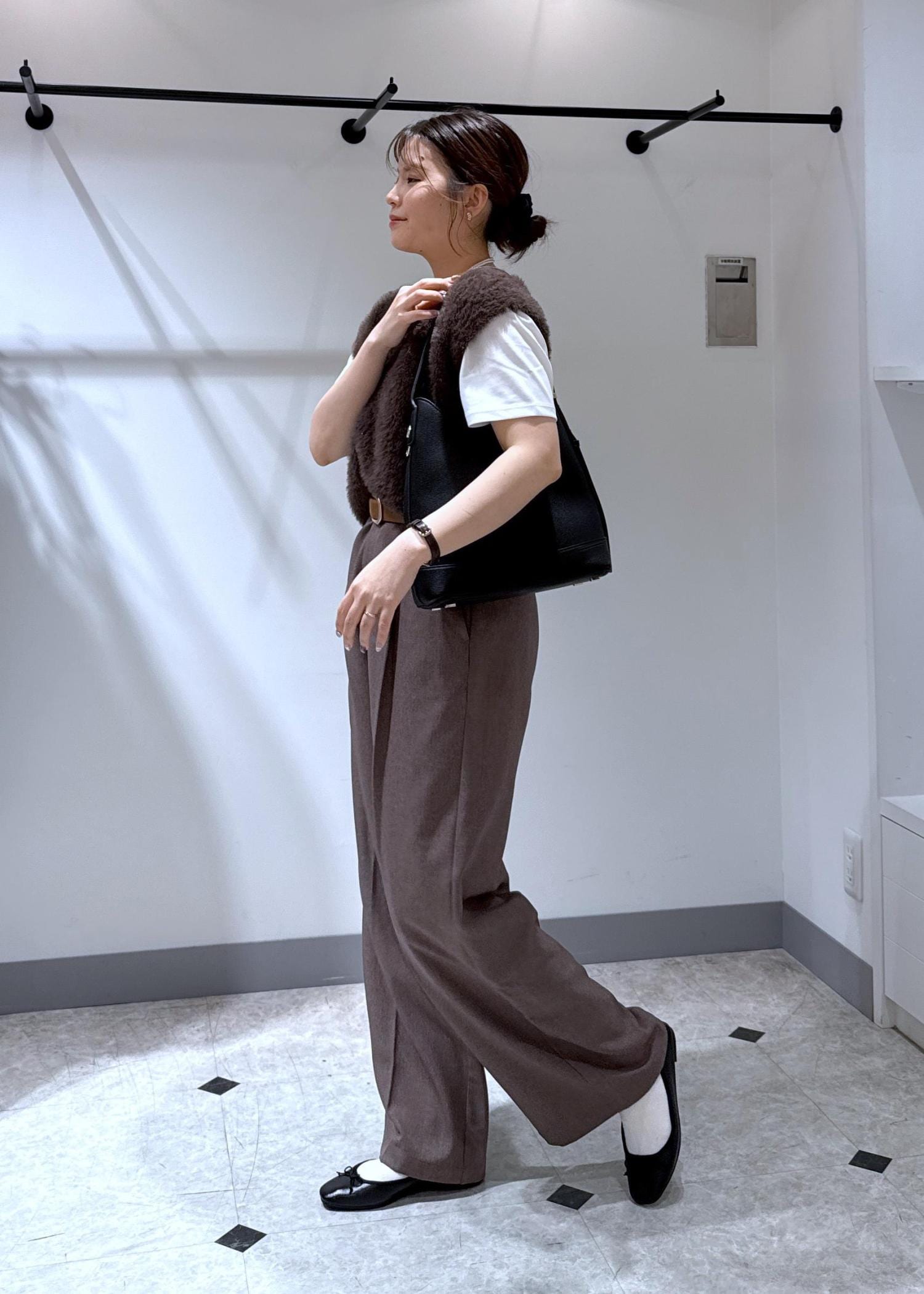 トレンドのチョコレートブラウンが大人な印象のフェザーベストをポイントにブラウン系のワントーンでまとめた大人カジュアルコーデにしてみました!