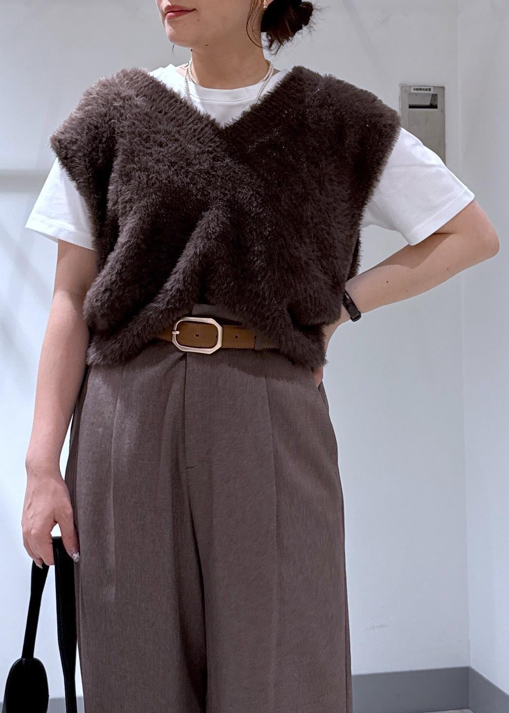 アームホールは広めなので袖にボリュームのあるトップスなどにも合わせられそうです。