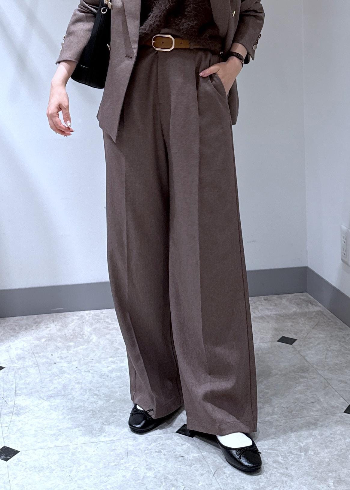 【WEB限定・丈長め】レディハンサムシリーズ ウールライクウエストタックセミワイドパンツ