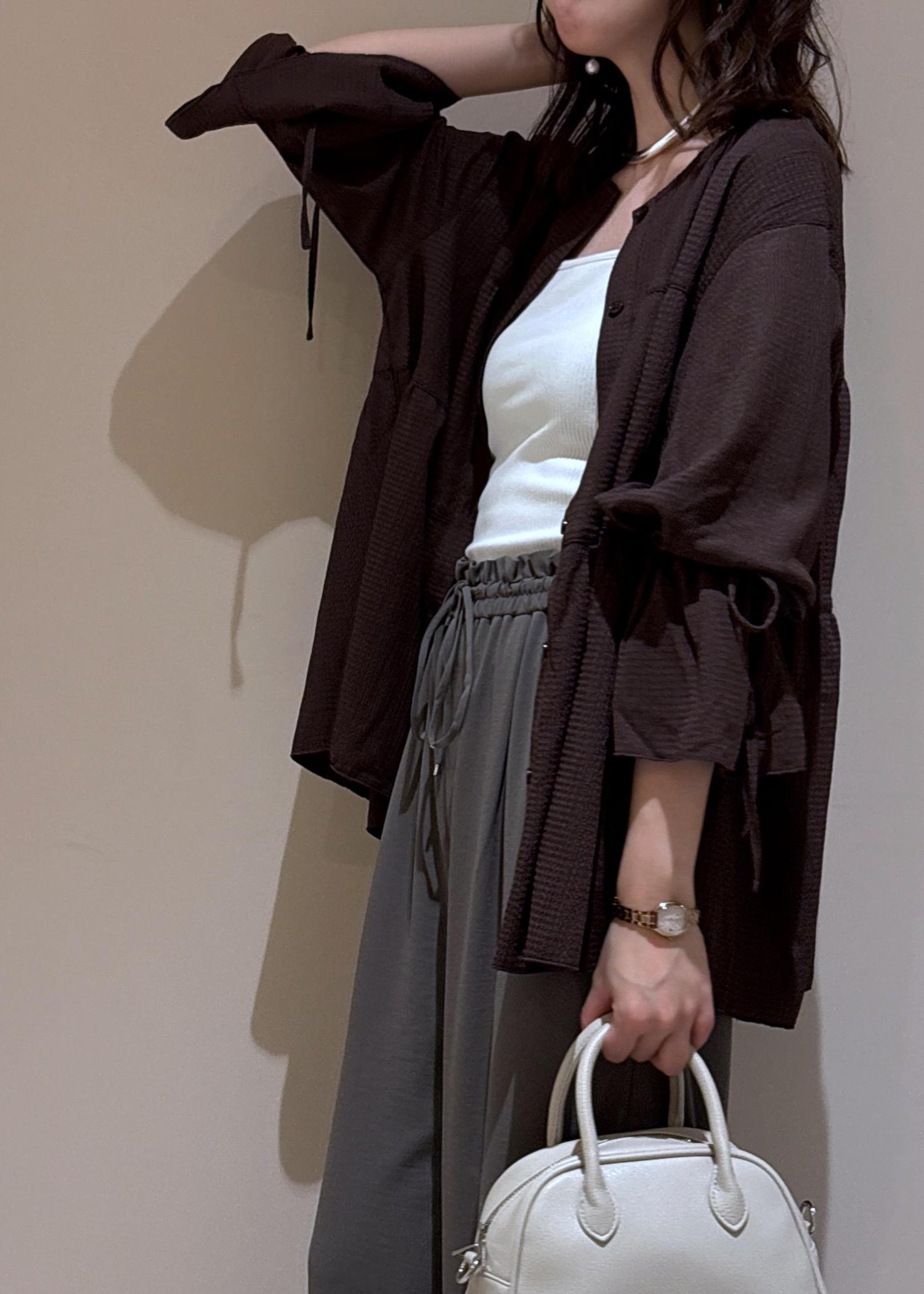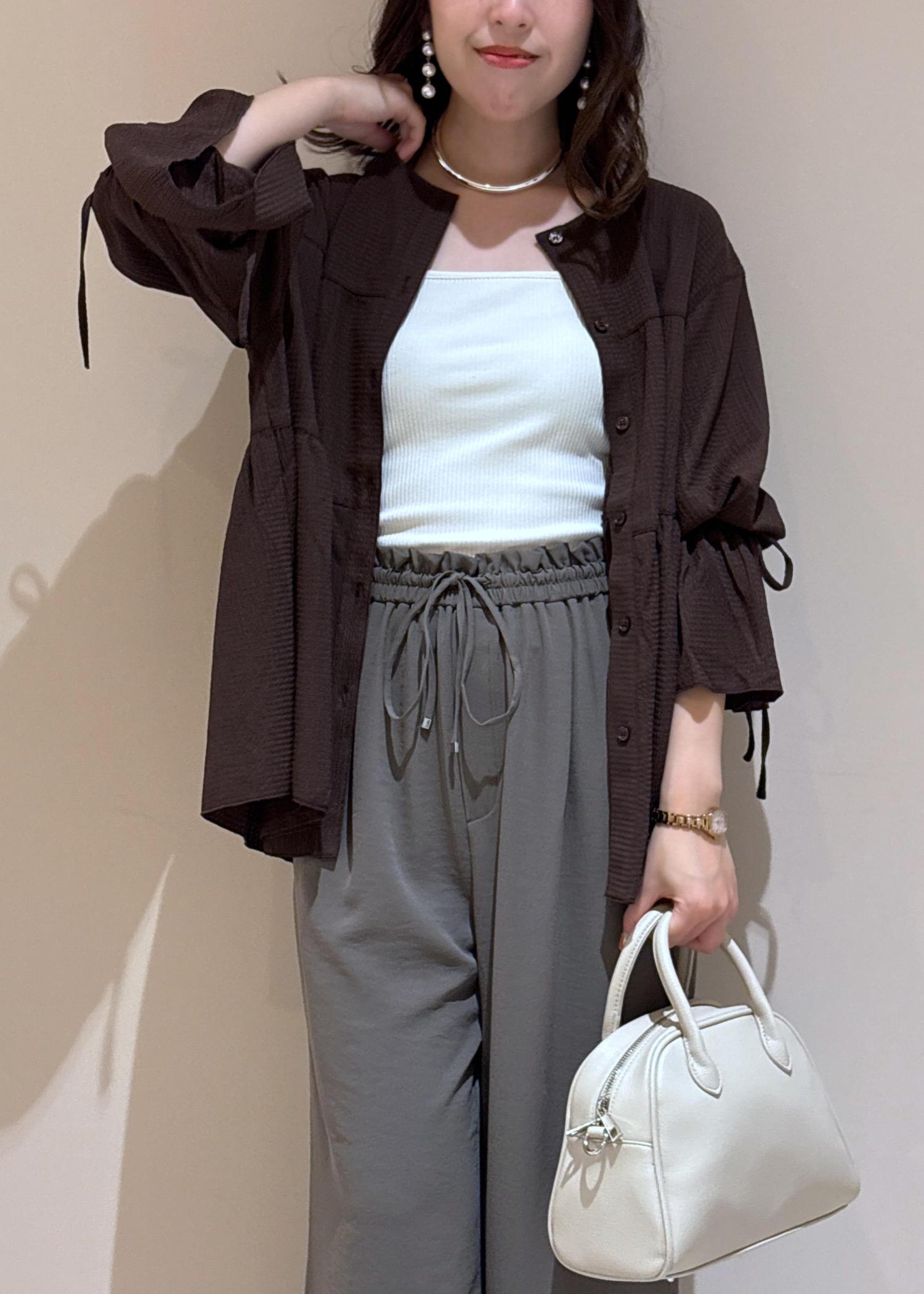 ROPÉ PICNIC【羽織にもなる】シアーワッシャーブラウスカーディガンダークブラウン / F¥3,993レビュー広がりがあり、ペプラムのデザインなので、腰回りをカバーしてくれます。