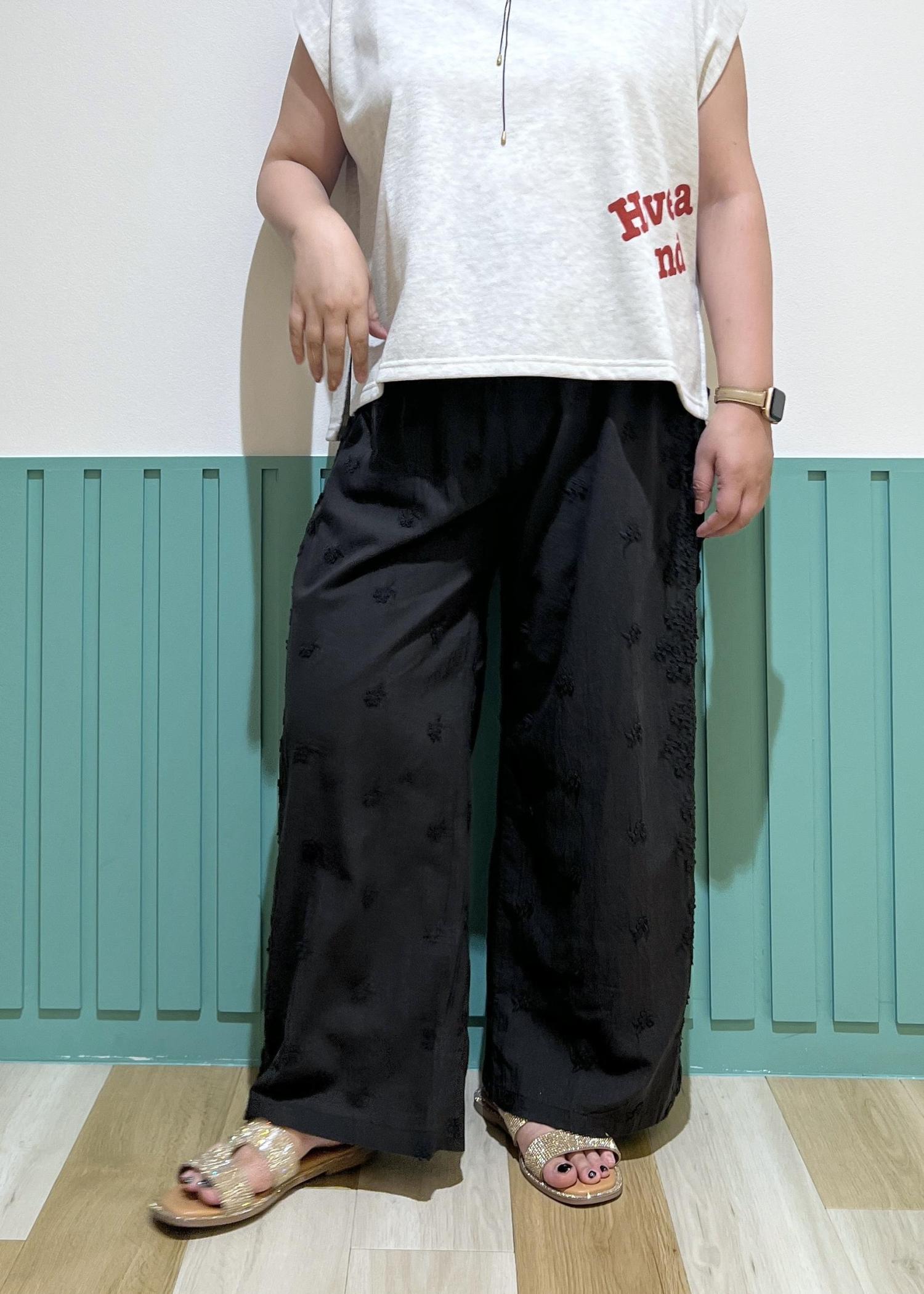 綺麗めな印象の刺繍ワイドパンツを