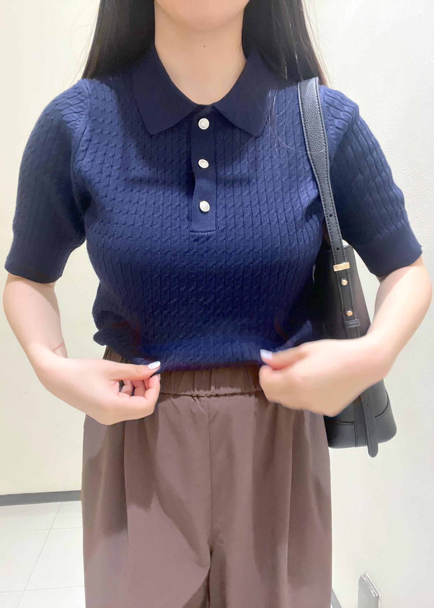 ミニケーブルハーフスリーブニットポロシャツ