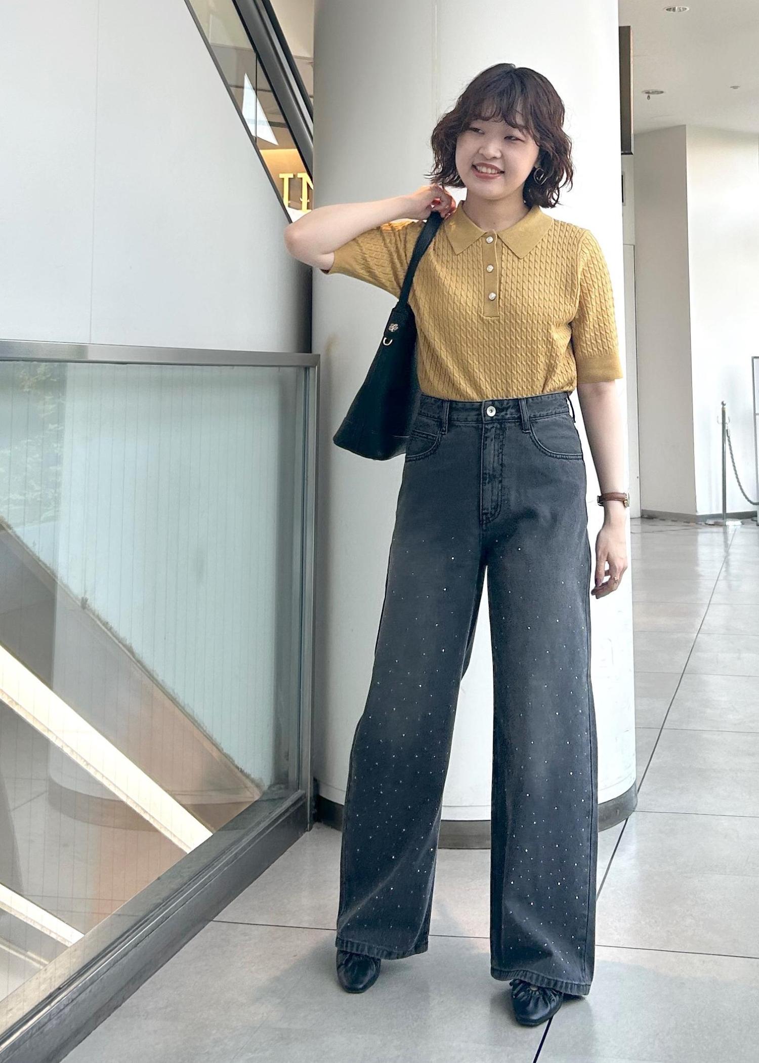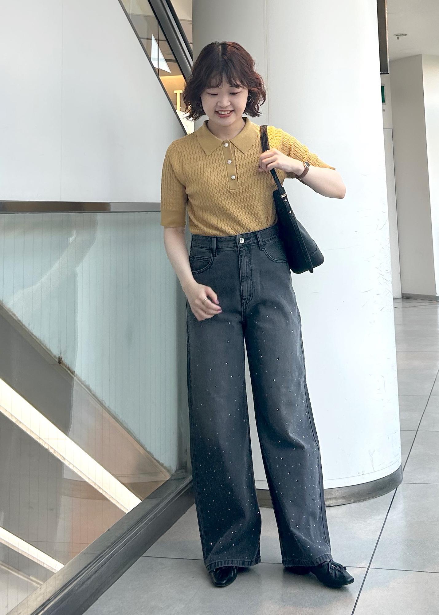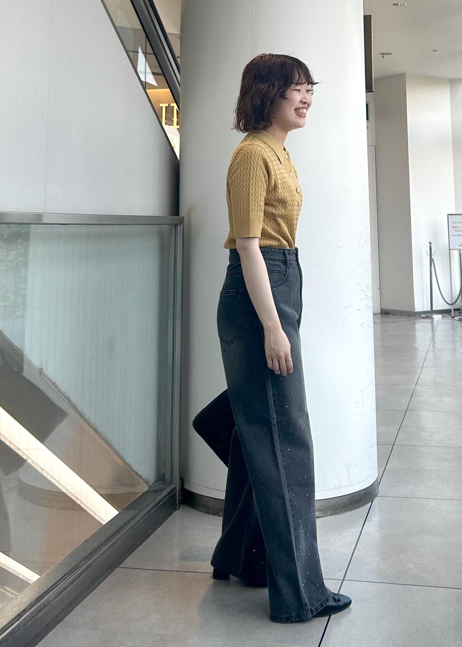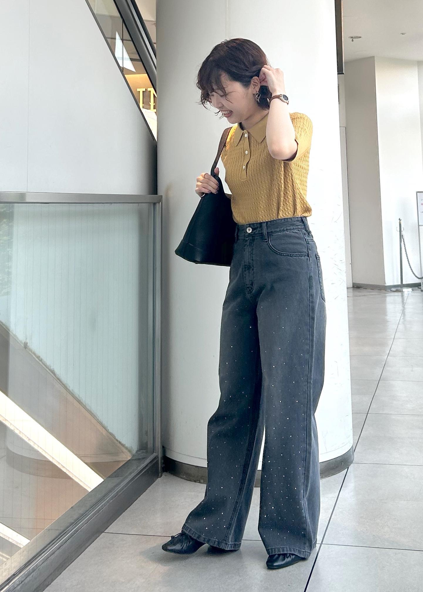 トップスをインすることで足長効果になります。