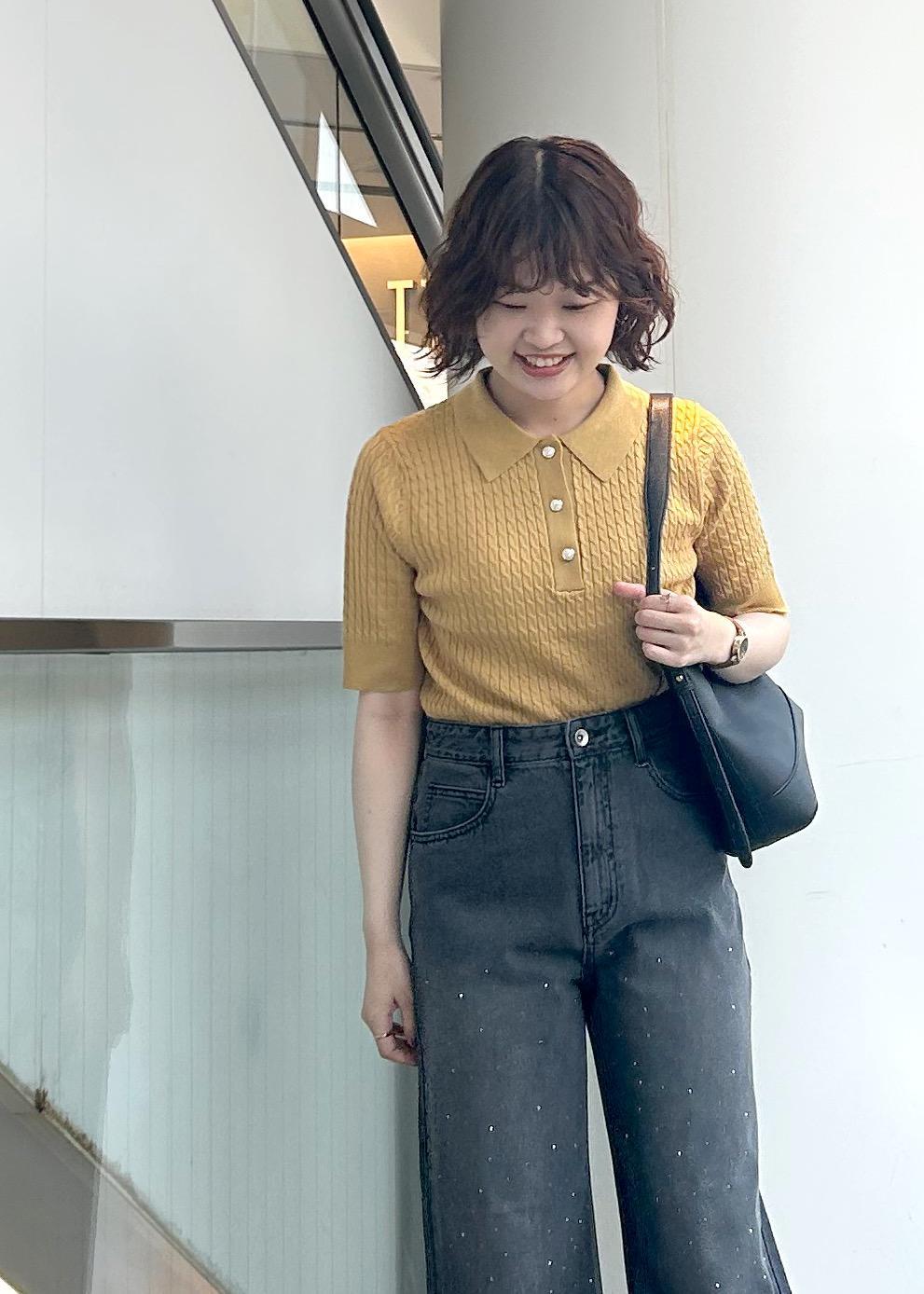 ミニケーブルハーフスリーブニットポロシャツ