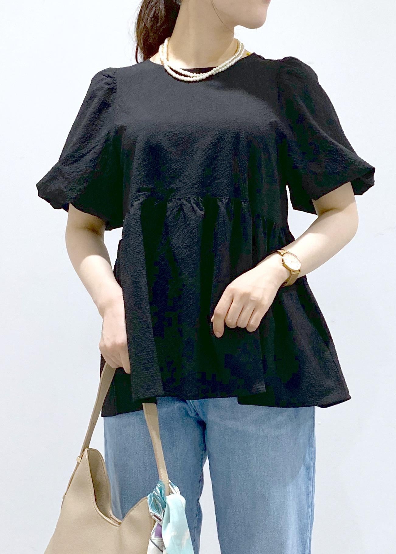 ROPÉ PICNICバルーンペプラムブラウスブラック / 38¥4,499レビューヒップが隠れる長めの丈感で、ふんわりとしたシルエットなので、体型カバーしやすいです。