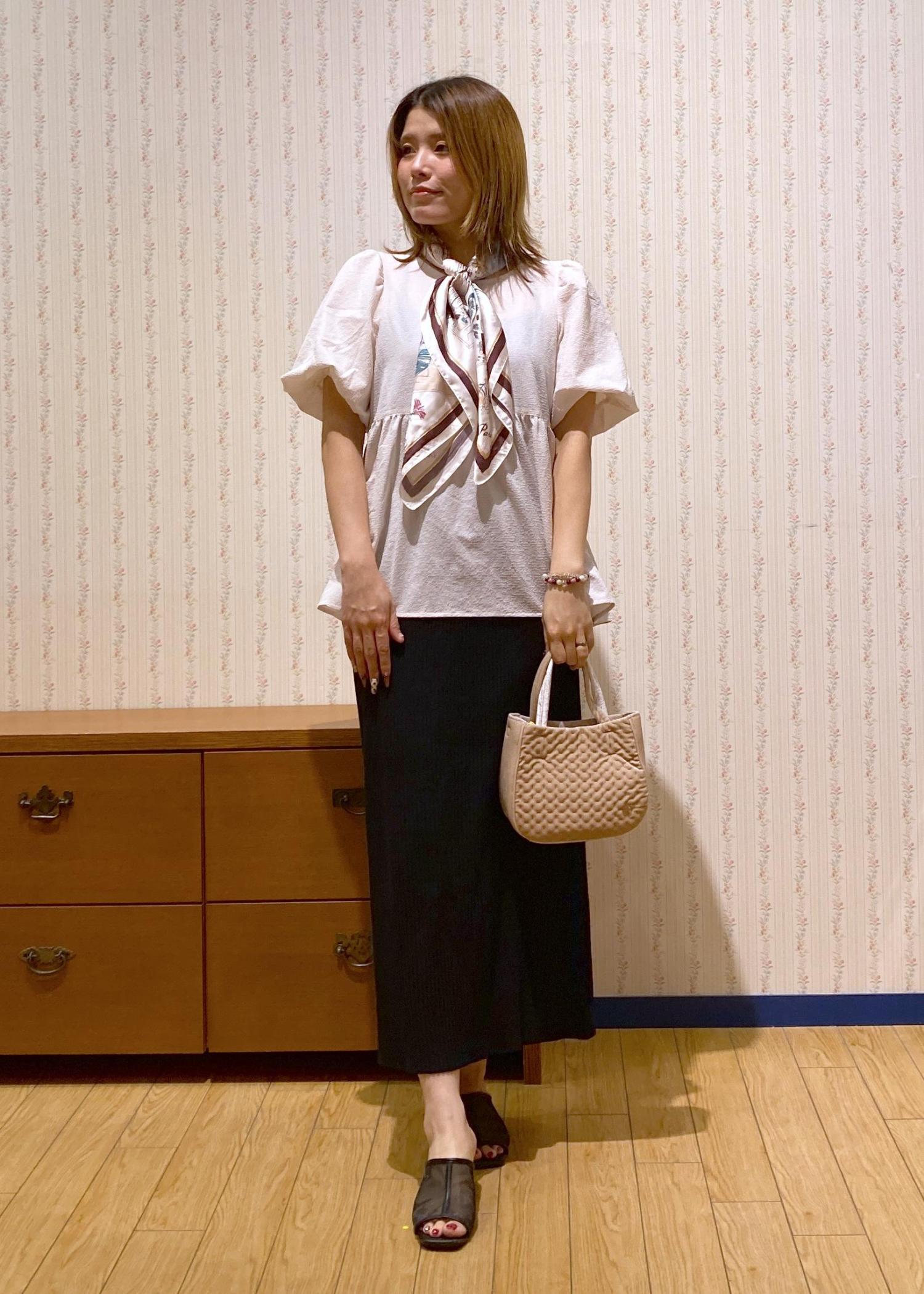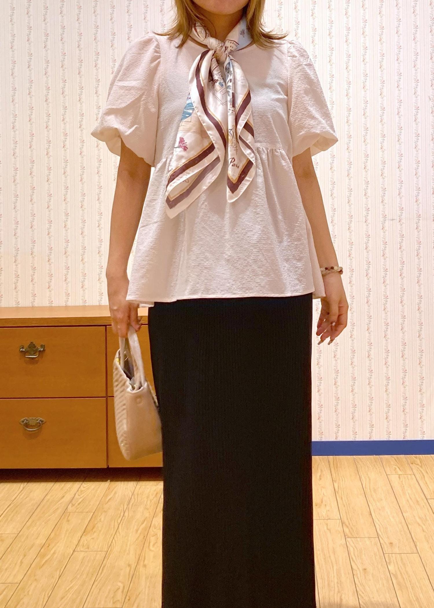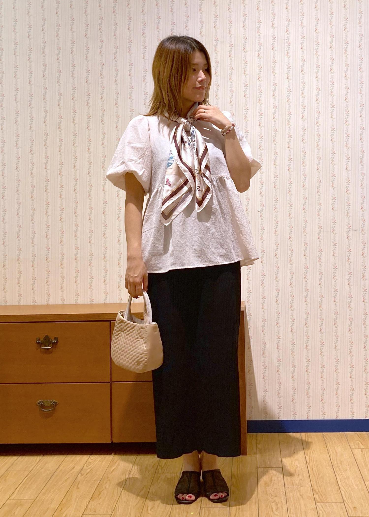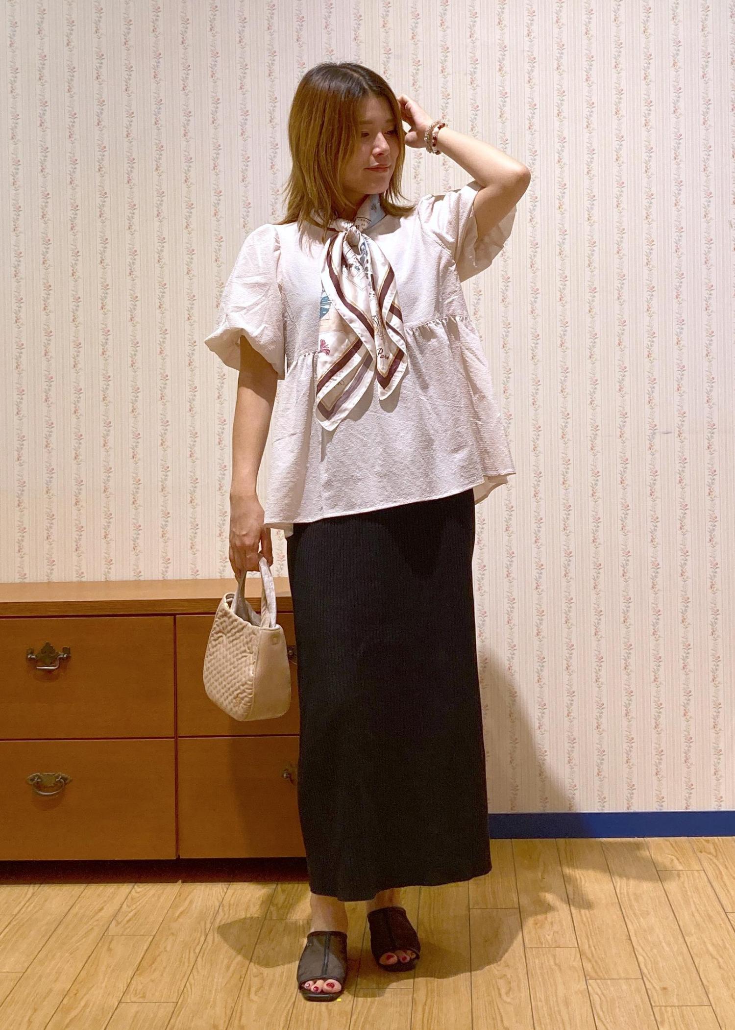 モノトーンでまとめてシンプルだったので、首元にスカーフを巻いてフレンチシックを意識したのがポイントです!