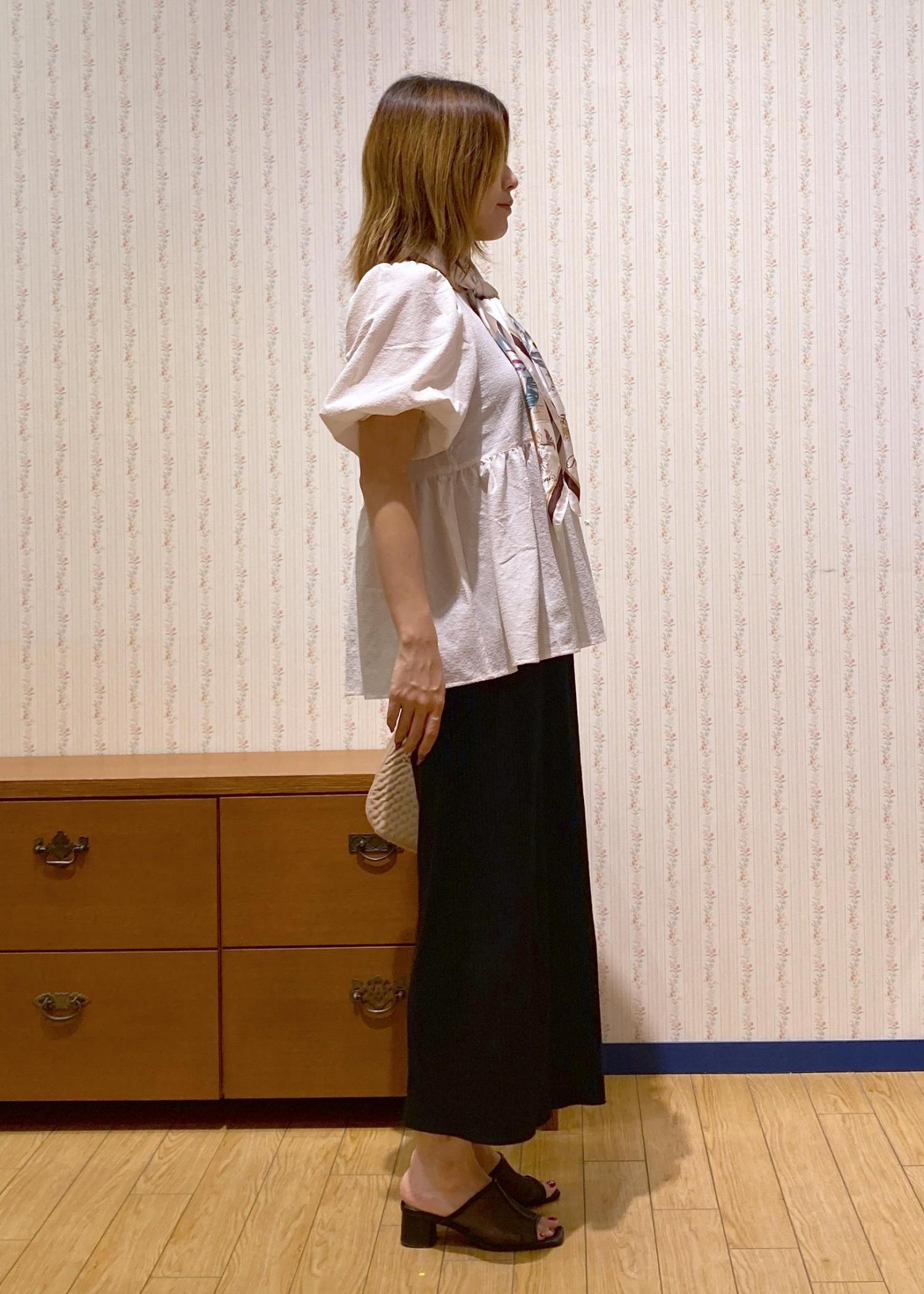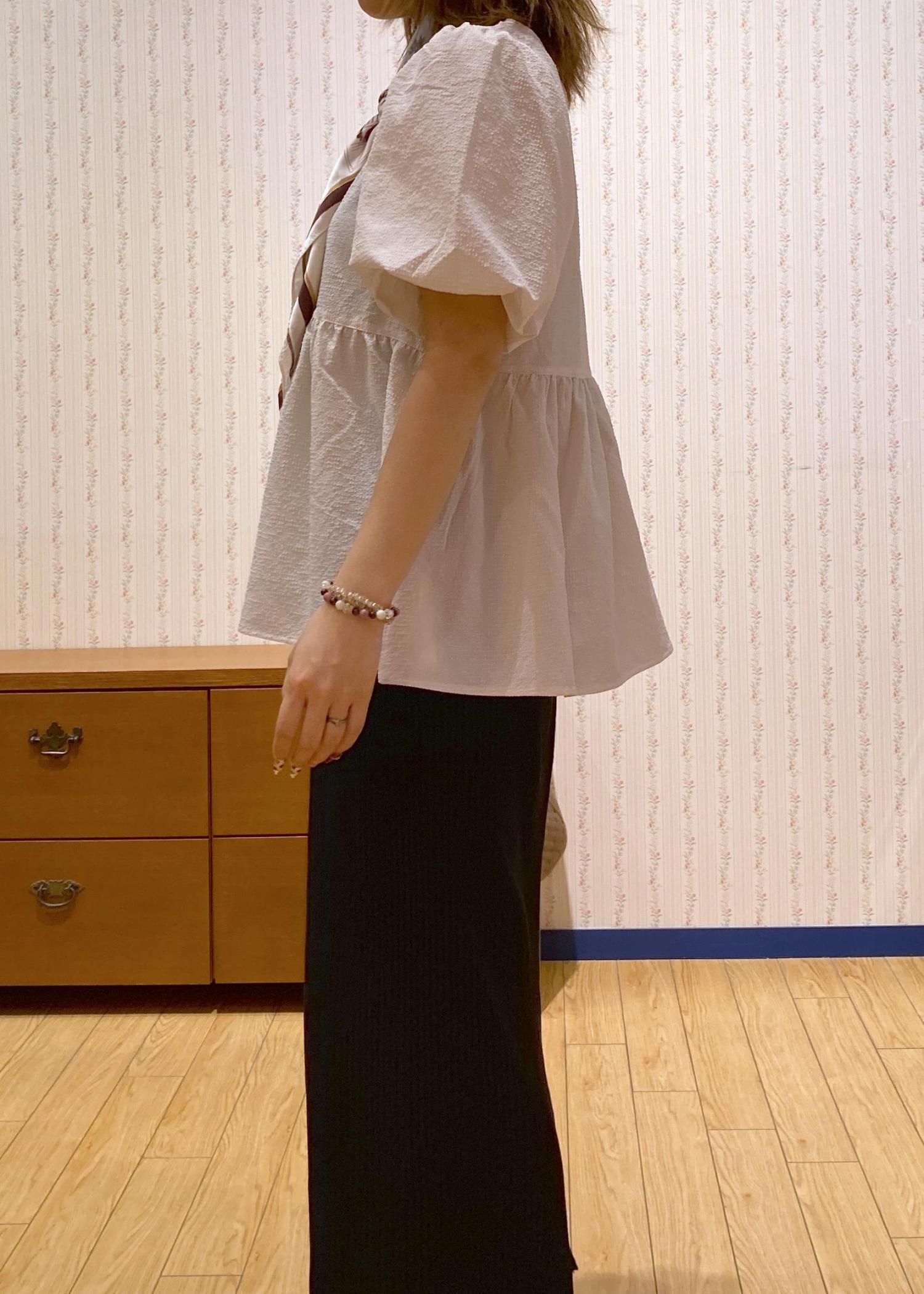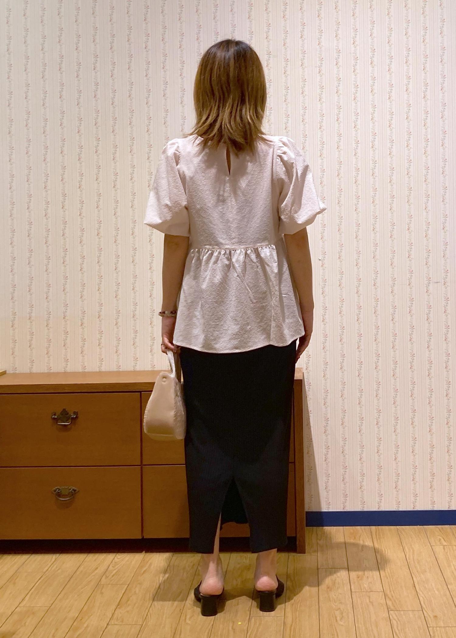 体型カバーも叶うペプラムブラウスにタイトスカートを合わせたキレイめコーディネートです。