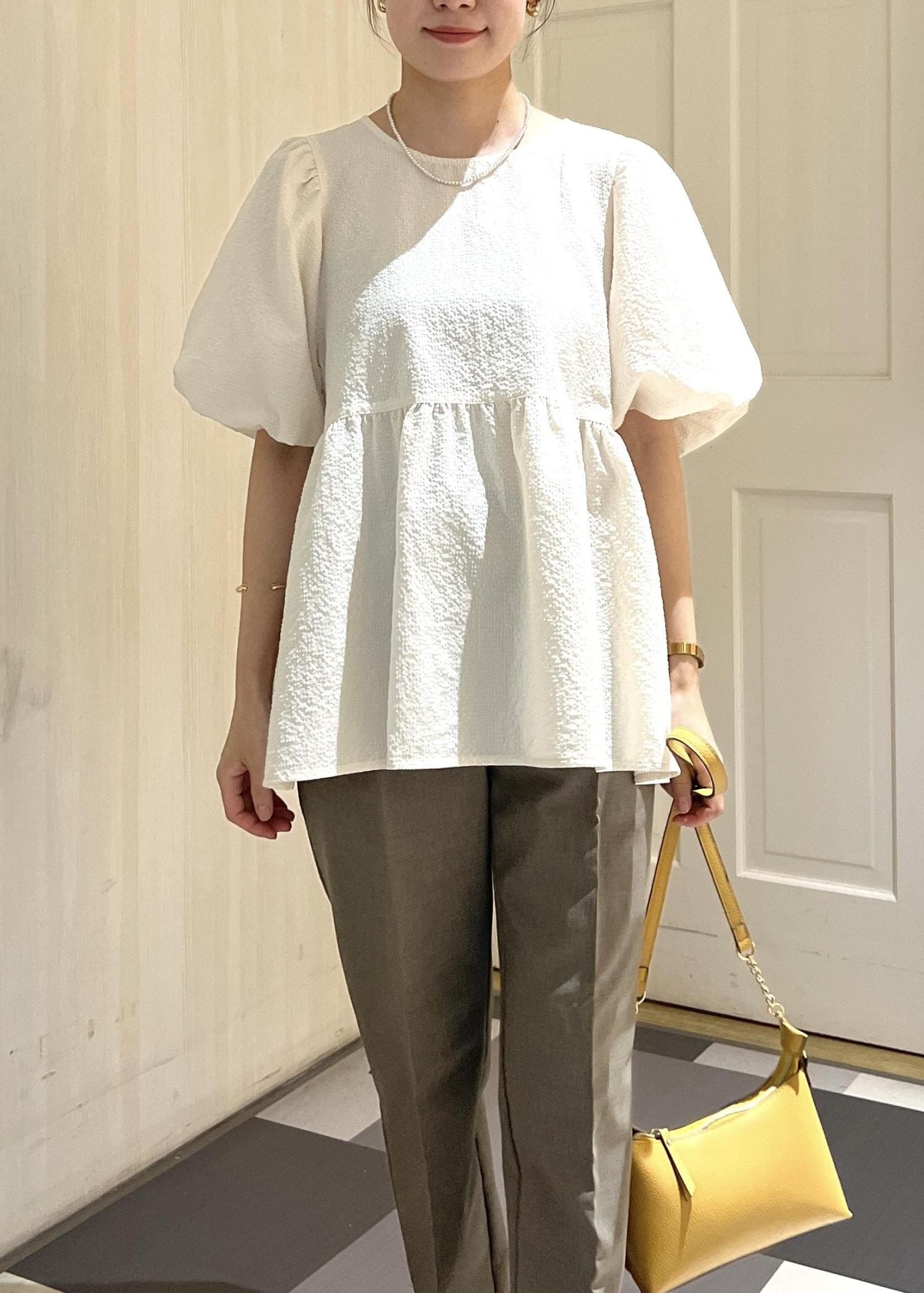 凹凸感のあるブラウス素材で、涼しく着られます。