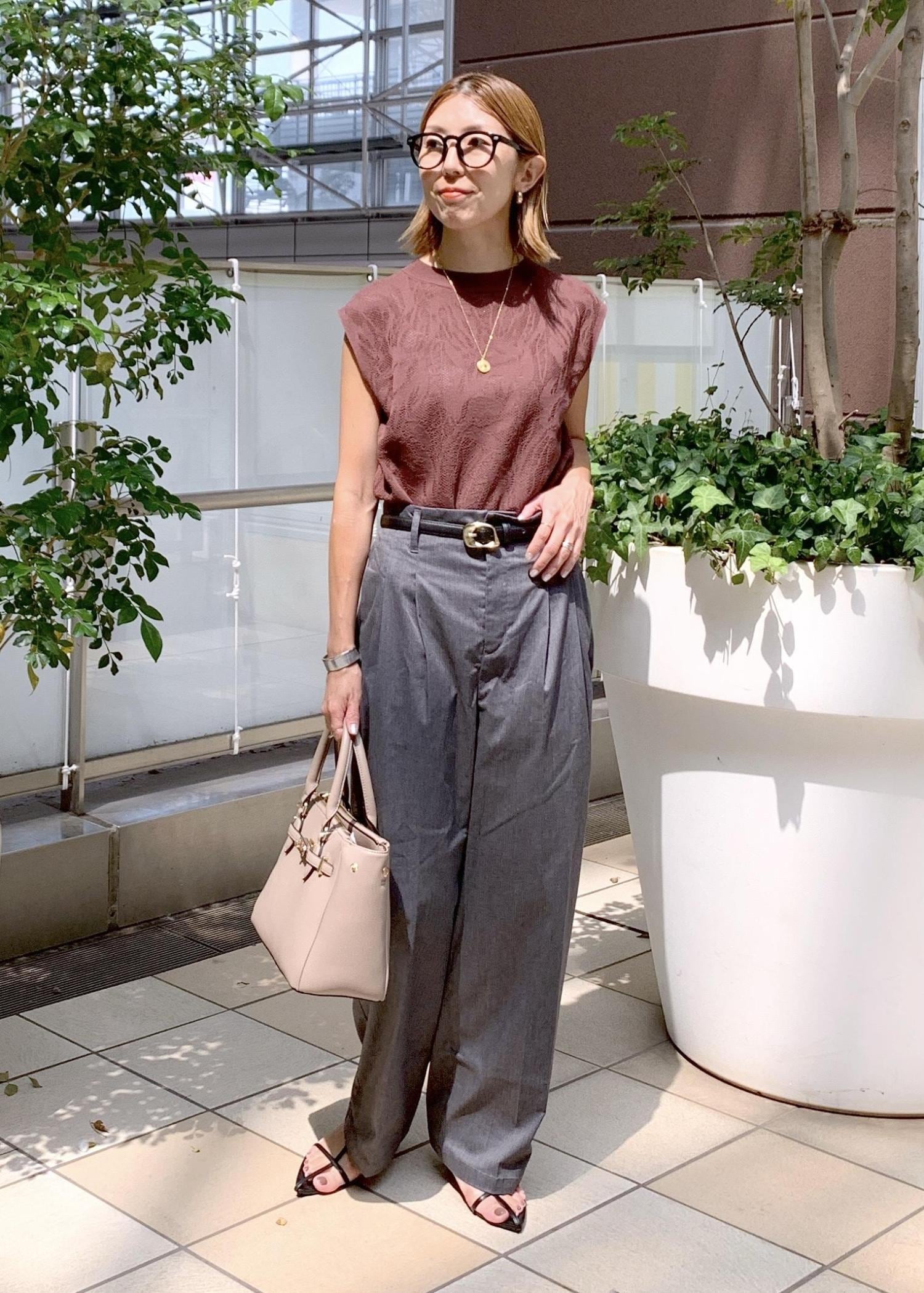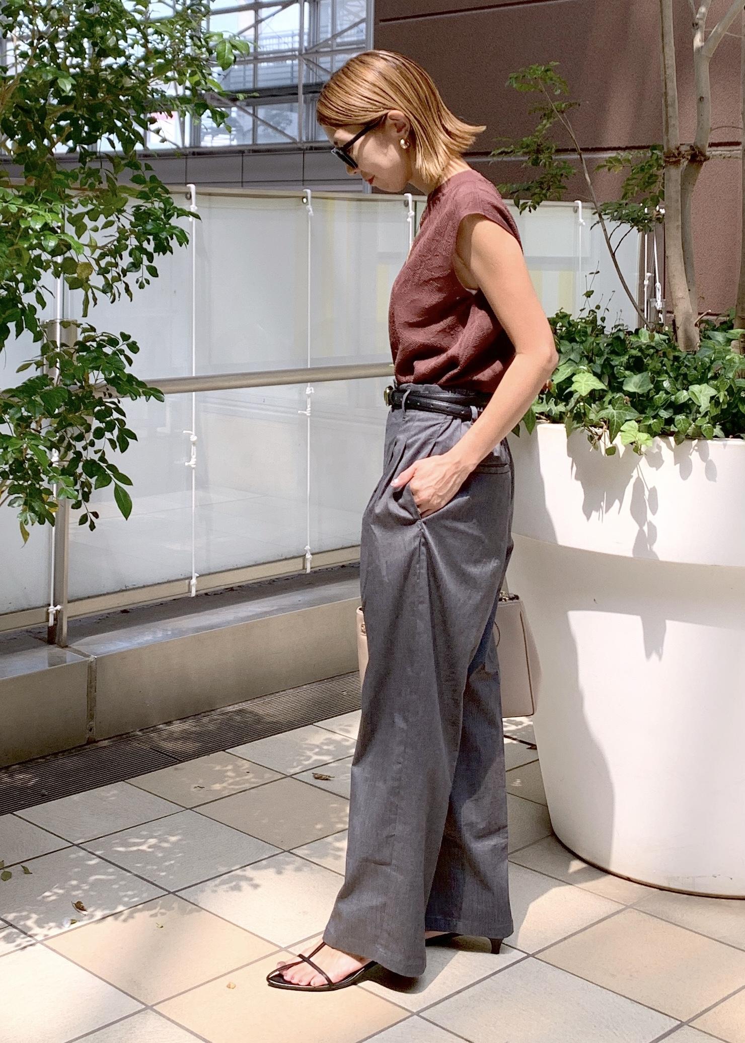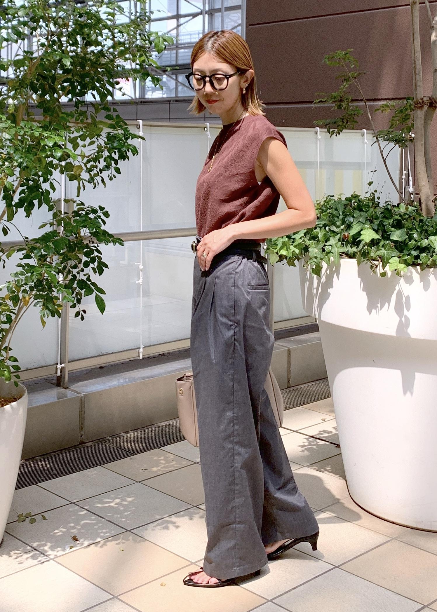 甘めなトップスなので、大人はワイドパンツなどクールなアイテムと合わせても◎ -
