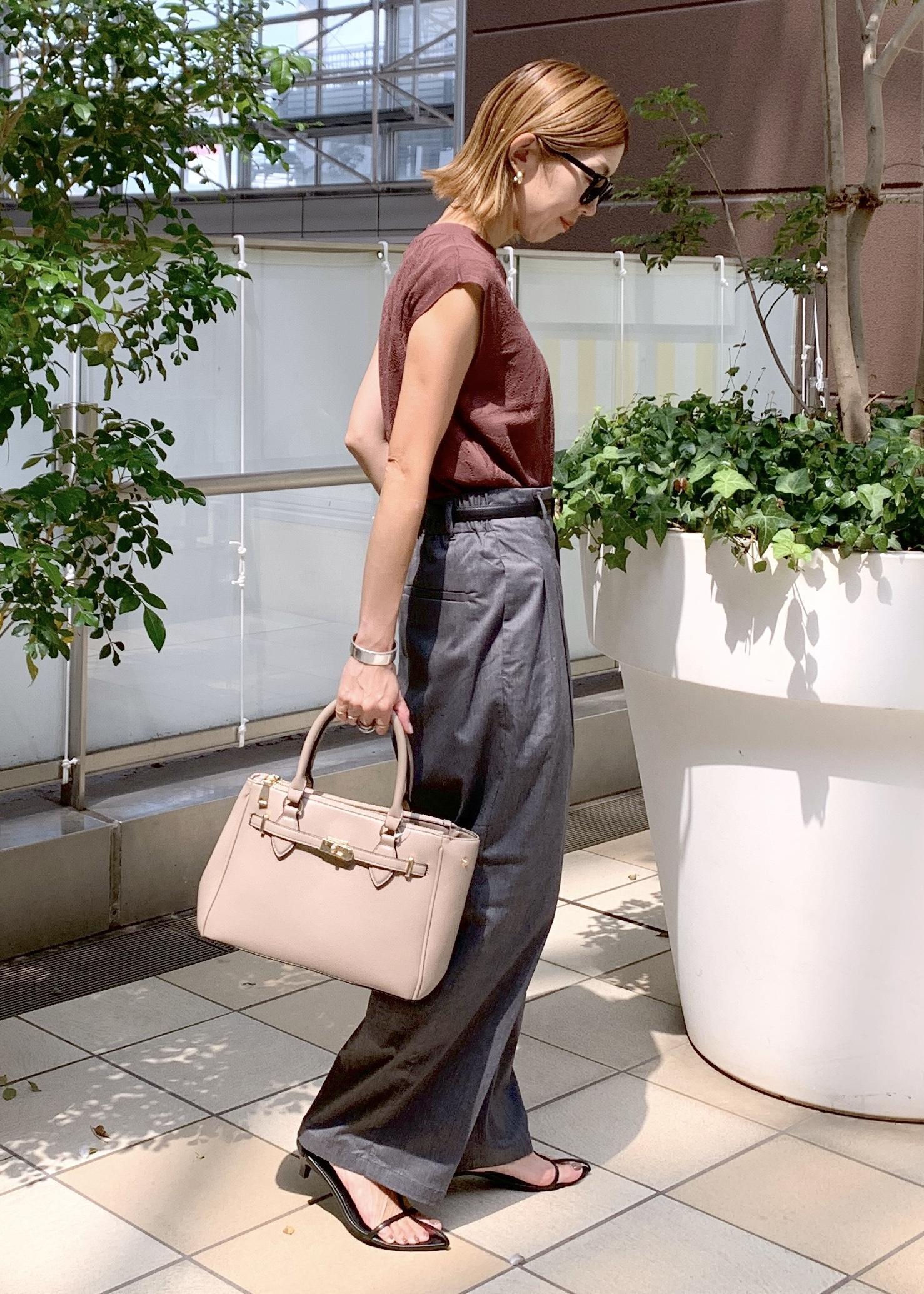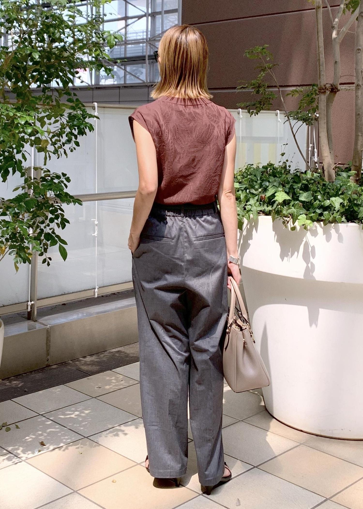 程よい光沢感のある生地で、キレイめなスタイリングにも◎